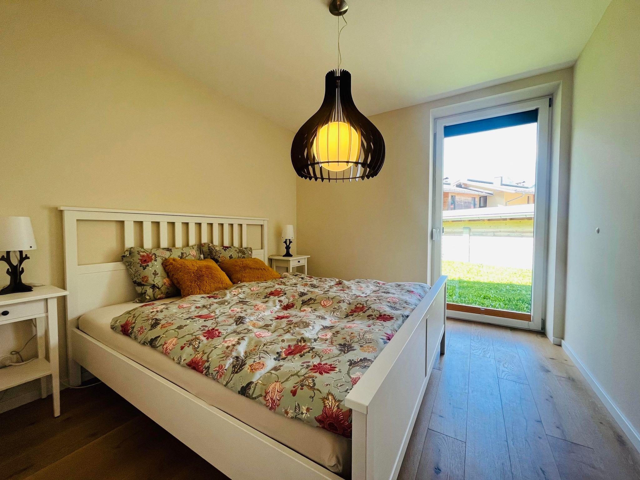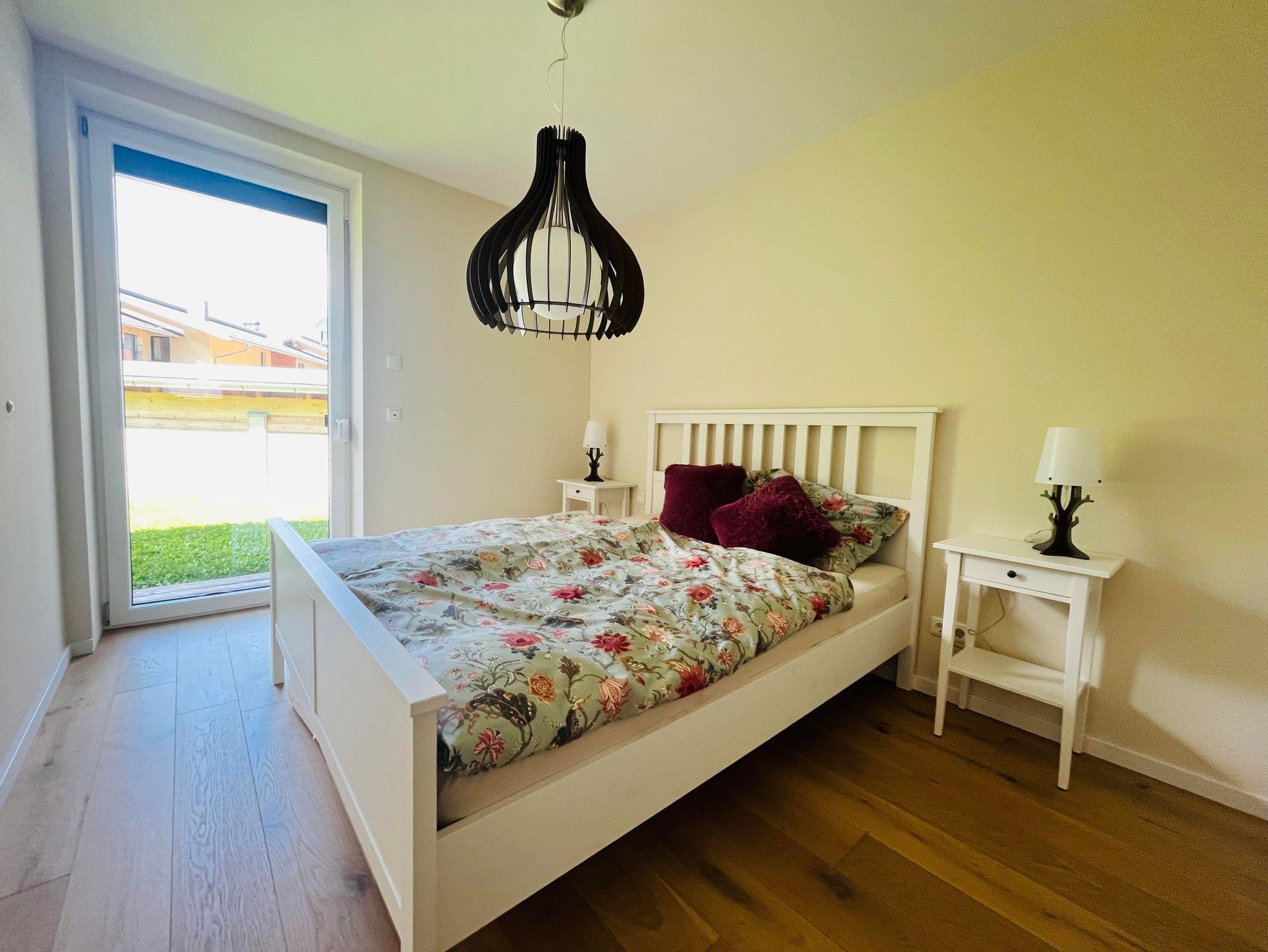 2 Schlafzimmer mit Doppelbett, Nachttischen und Schrank sowie direktem Zugang zum wunderschönen Garten.