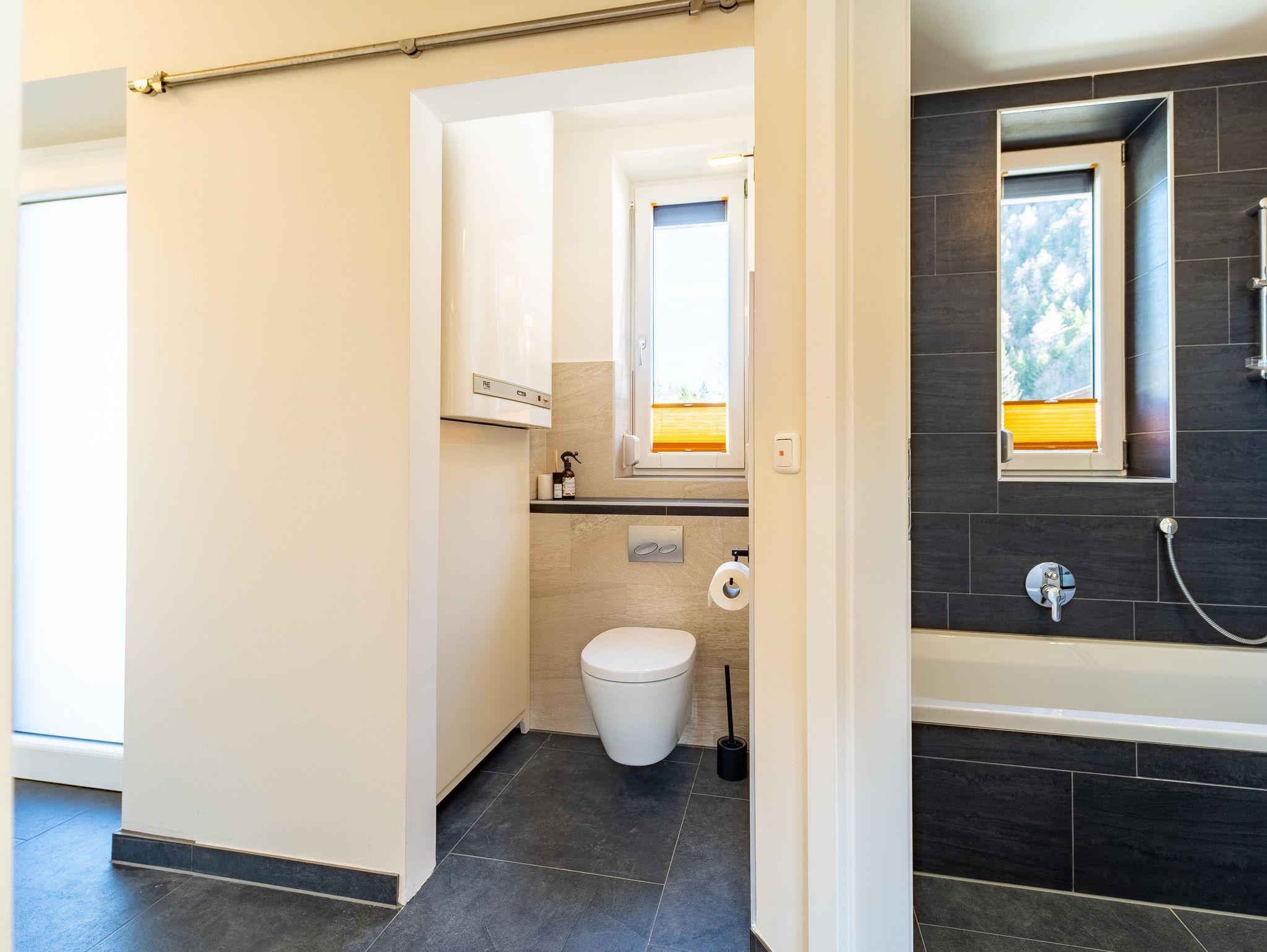 Badezimmer mit Badewanne sowie WM/T und einer separaten Toilette.