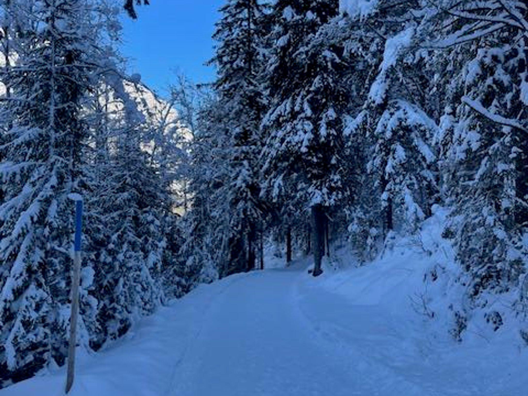 Langlauf-Loipe und Busstation sind nur wenige Meter vom Haus entfernt.