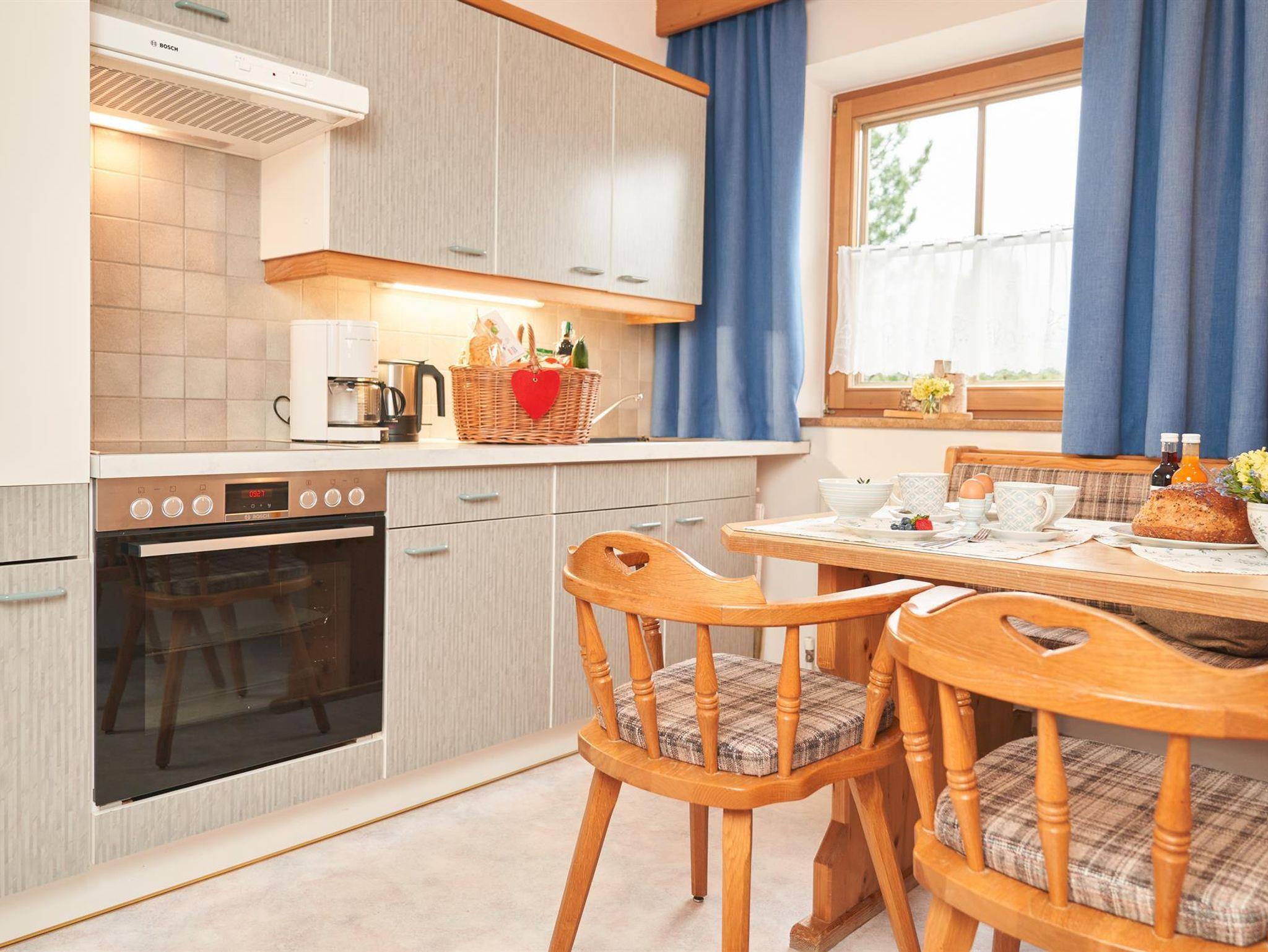 Ferienwohnung zur Ost-Südseite - die Suite des Hauses - Sonne von morgens bis abends, lichtdurchflutet. Schlafzimmer, Wohnzimmer mit Kachelofen und Ofenbank, separate Küche komplett eingerichtet mit Essplatz in der Küche, Dusche/WC, Vorraum mit Garderobe und Spiegel, Ost-Südterrasse, Südbalkon mit herrlicher Sonneneinstrahlung, Balkonmöbel, Wohnung neu eingerichtet, sehr gemütlich und komfortabel, sehr sauber, unverbaute Aussicht mit freiem Blick zur Hohen Munde und Wettersteinrundblick.