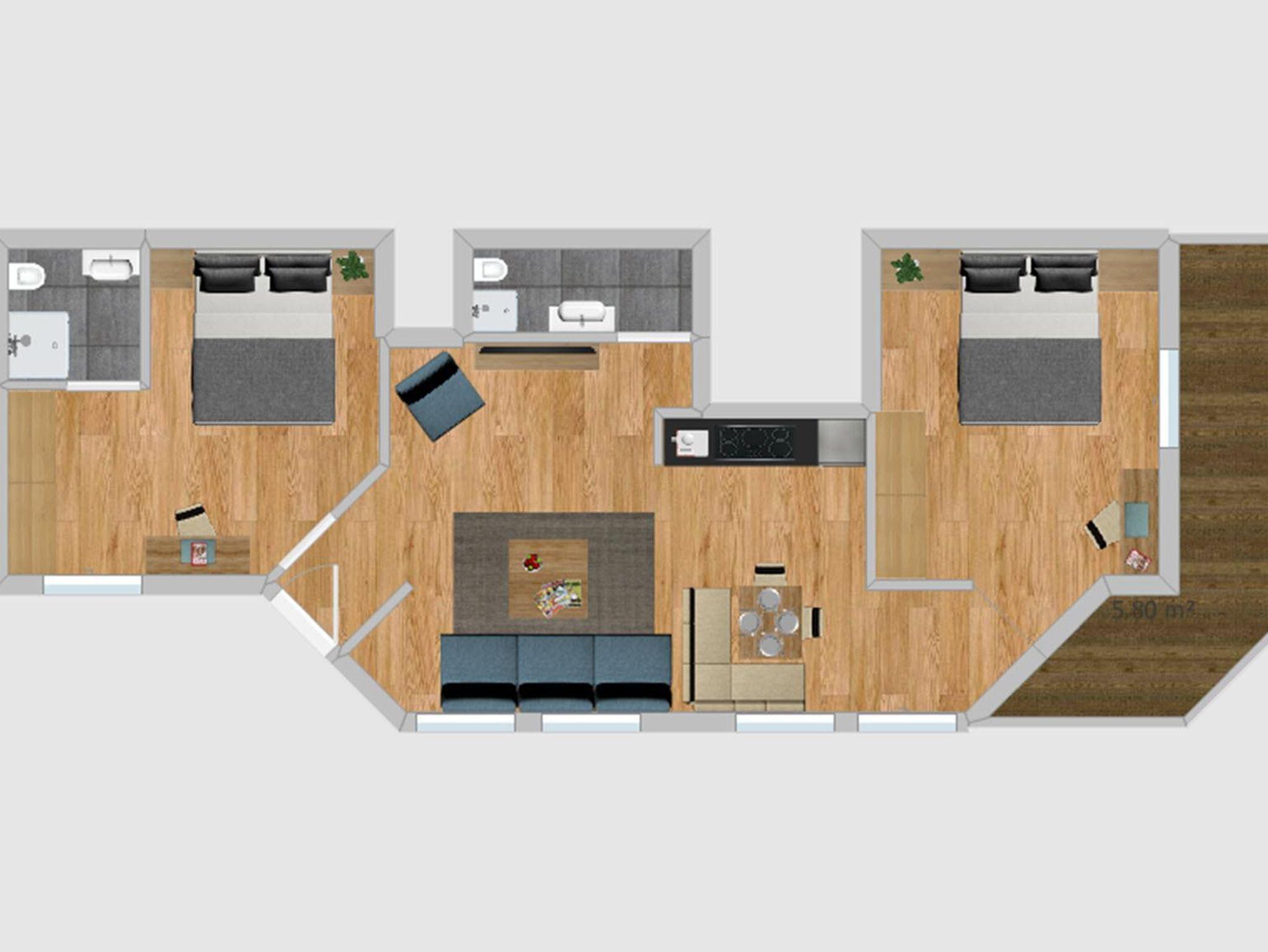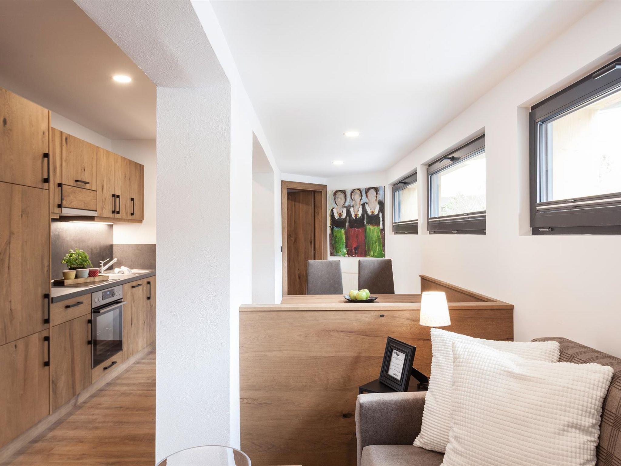 Charmant eingerichtet bietet das Appartement Daniela eine Küche mit einem Esstisch und gemütlicher Eckbank. Sie finden eine einen geschmackvoll eingerichteten Wohnraum, sowie 2 großzügige Schlafzimmer.