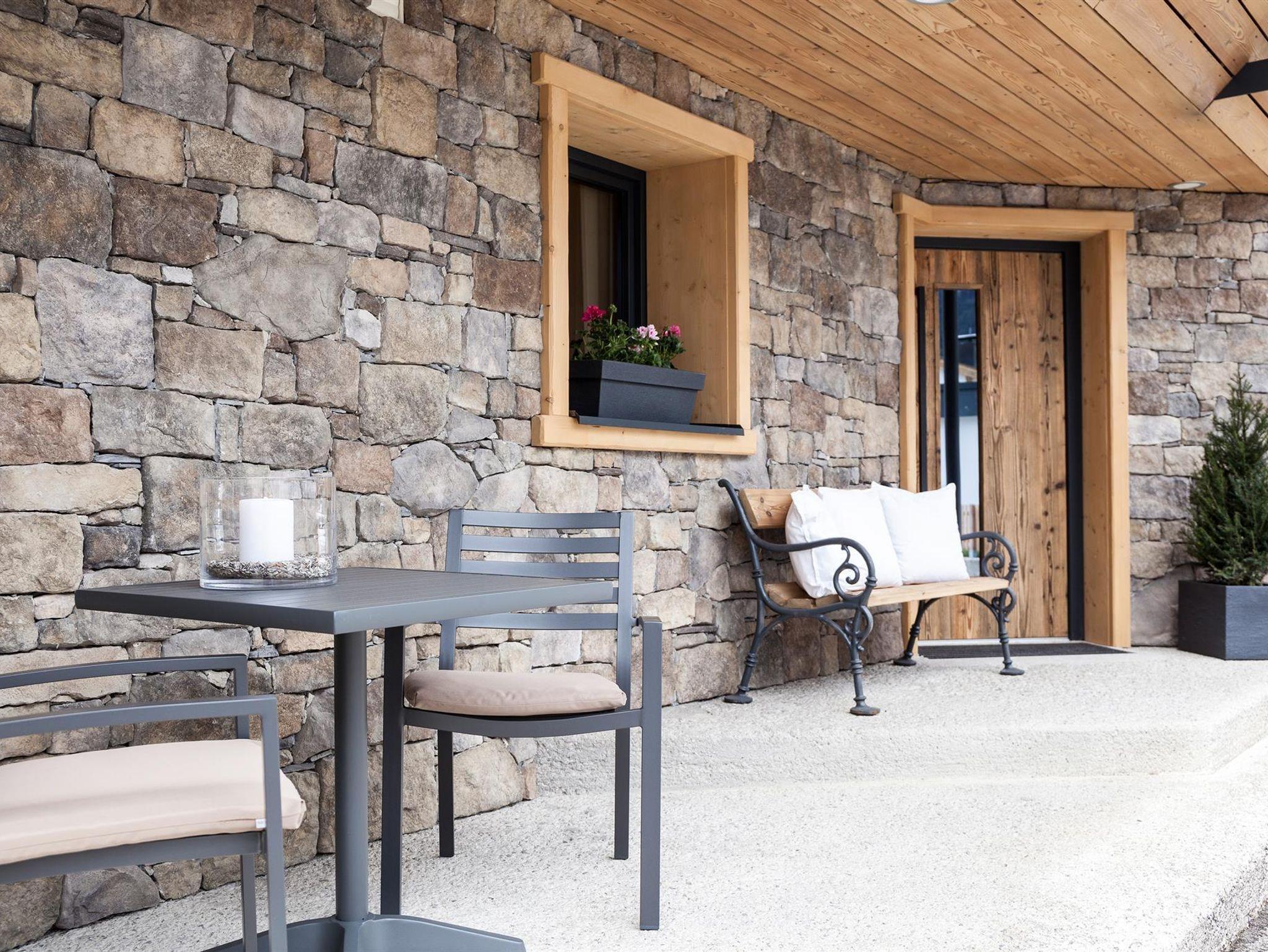 Eine kleine Terrasse Richtung Osten mit Gartenmöbeln mit einem herrlichen Ausblick auf die Leutascher Bergwelt für Ihren morgendlichen Kaffee.
