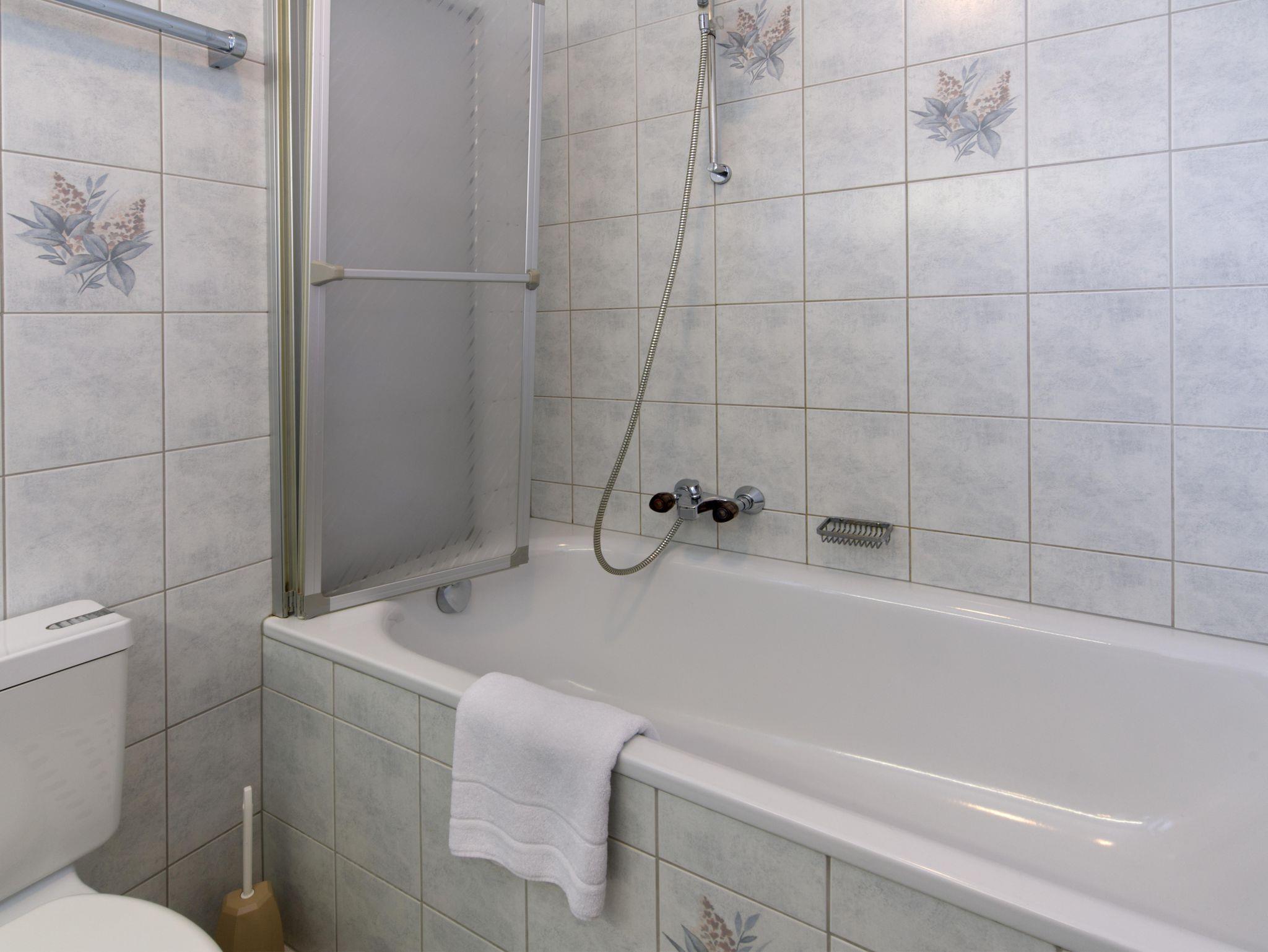 3 Raum Wohnung mit 2 Schlafräumen, Schlafraum 1 mit Doppelbett, Schlafraum 2 mit 2 Einzelbetten, Wohnbereich mit Couch, LED-Sat TV, Esstisch mit Stühlen, Dusche, separates WC, Balkon, Küche mit Geschirr, Mikrowelle, Toaster, Wasserkocher.