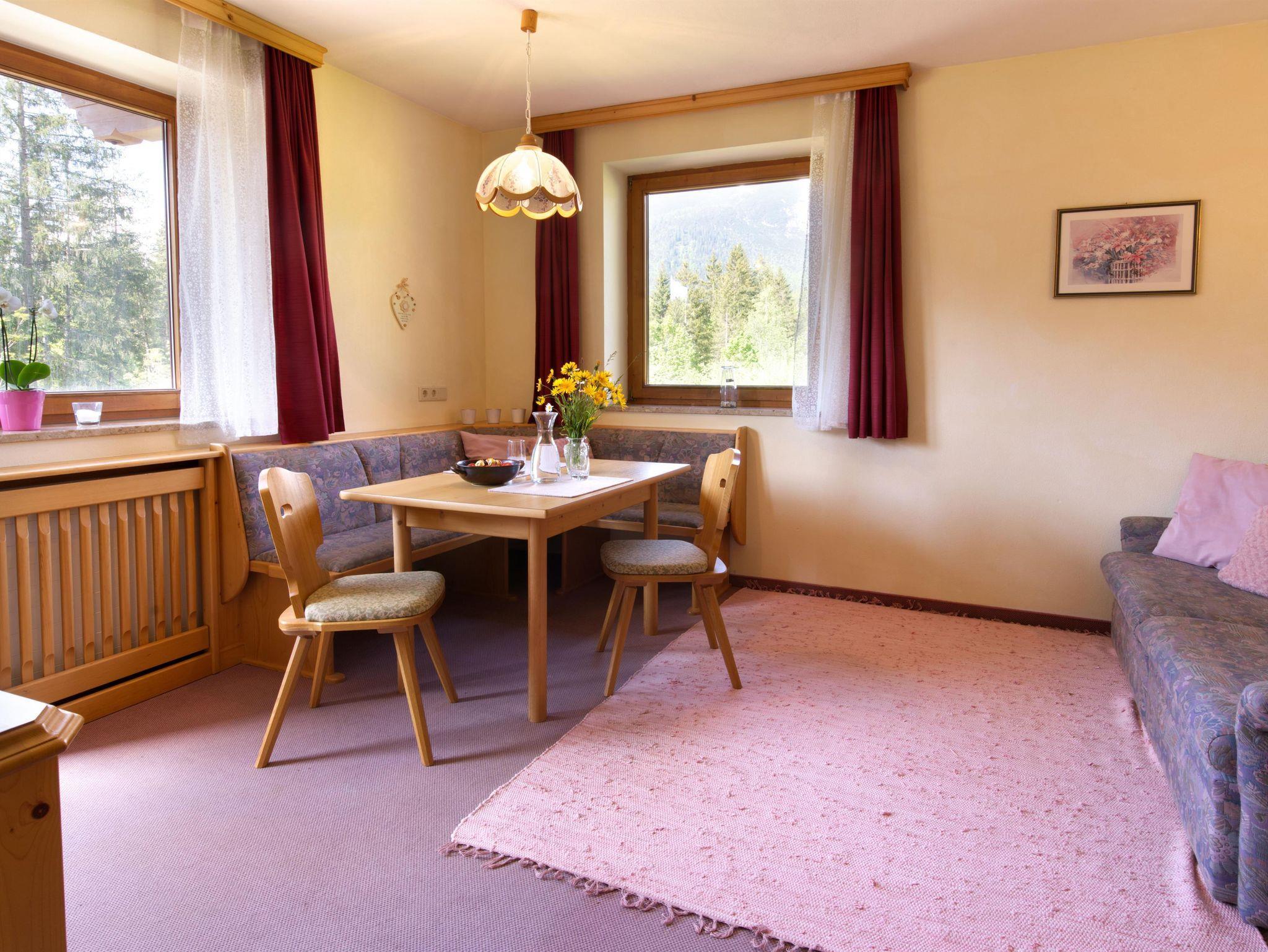 Nehmen Sie sich eine Auszeit in unserem ruhigen Apartment und genießen Sie vom Balkon aus den direkten Berglick auf die Hohe Munde. Mit einem kombinierten Wohn- und Essbereich sowie eigenem Bad mit Dusche, einer vollausgestatteten Küche und weiteren Annehmlichkeiten wie Skikeller und einem Abstellraum für Räder ist für einen schönen Aufenthalt mitten in der Natur alles gesorgt.