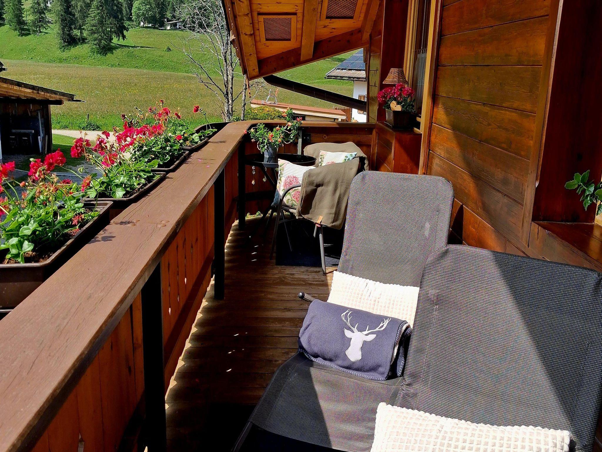 Die zweite Wohnung Silberdistel, im 1. Stock ist ca. qm 65 groß und verfügt über zwei Balkone, Aussicht auf die Berge, Hohe Munde und Gehrenspitze.
