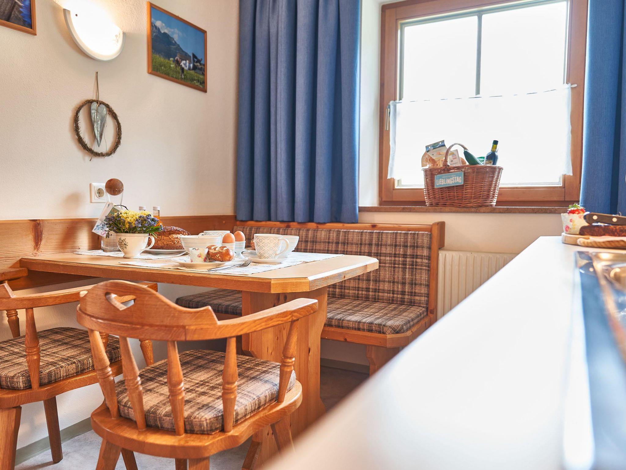 Ferienwohnung zur Südseite, 1 Schlafzimmer, Wohnzimmer mit gemütlichem Kachelofen und Ofenbank, separate Küche komplett ausgestattet mit Essplatz in der Küche, Dusche/WC, Vorraum mit Garderobe und Spiegel, großer Süd-Westbalkon mit herrlicher Sonneneinstrahlung, Balkonmöbel, Wohnung neu eingerichtet, sehr gemütlich und komfortabel, sehr sauber, lichtdurchflutet, helles Ambiente, unverbaute Aussicht mit freiem Bergblick zur Hohen Munde und Wettersteingebirge - Mein Paradies in den Bergen