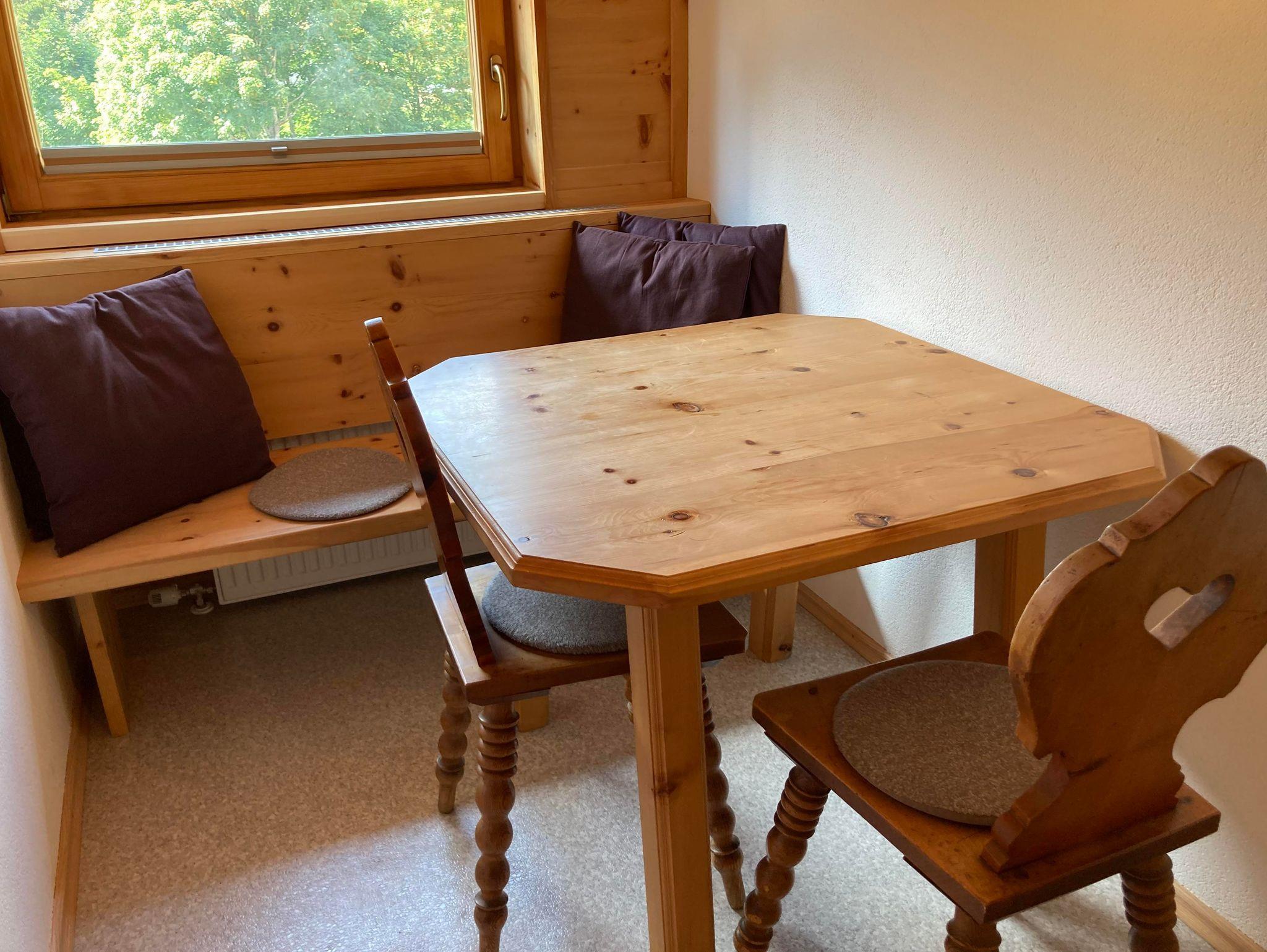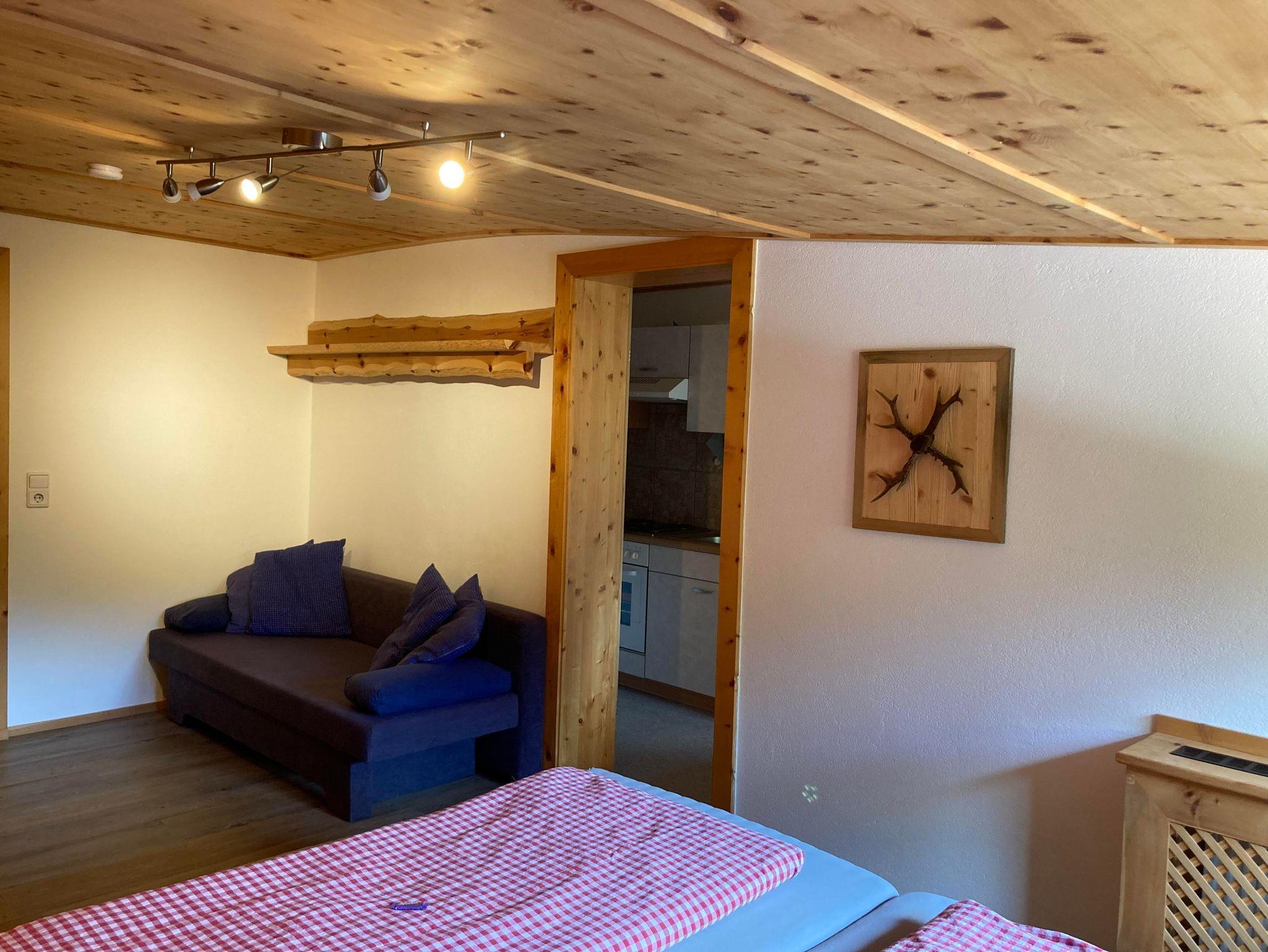 Ein gemütliches Appartement mit Flur, Schlafraum und separaten kleinen Küche. Die neu gestalteten Wohnräume sind mit viel Zirbenholz ausgekleidet und mit Zirbenmöbeln rustikal eingerichtet und liebevoll dekoriert. Der Duft des Zirbenholzes begleitet Sie durch die ganze Etage und verbreitet ein wohliges und angenehmes Gefühl. Das Badezimmer verfügt über Dusche, Waschbecken und ein separates WC. Der Zugang zum Balkon liegt direkt gegenüber dem Appartement und ist über den Flur sofort zu erreichen.