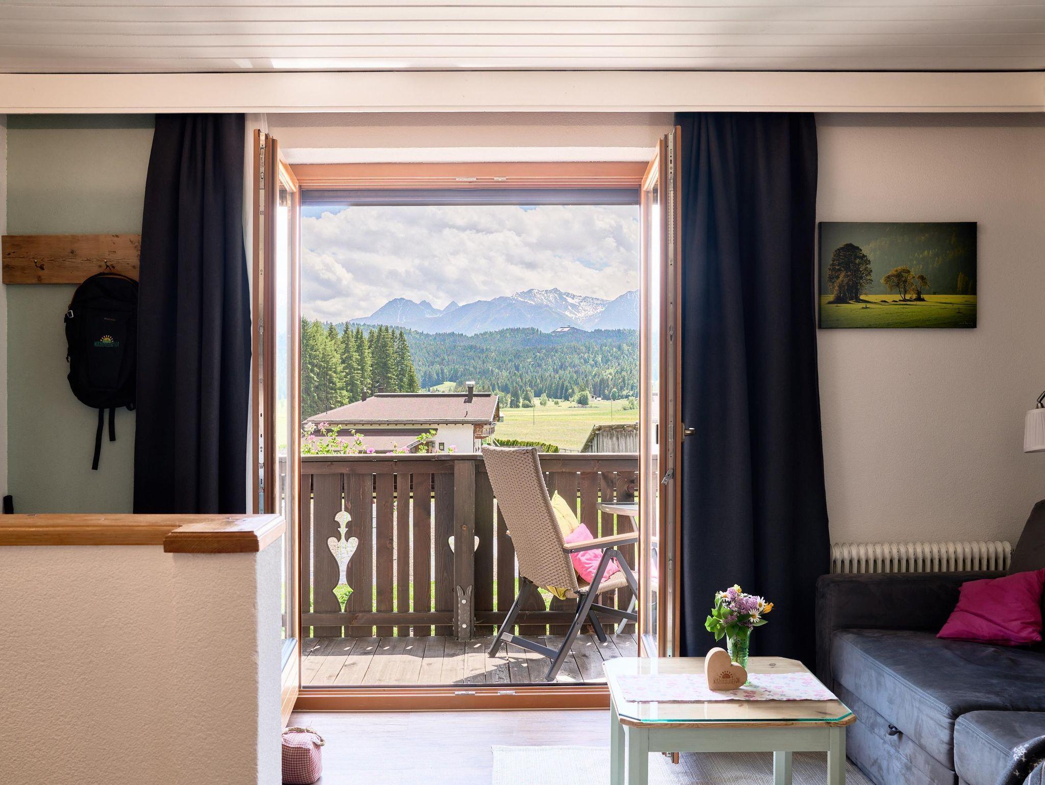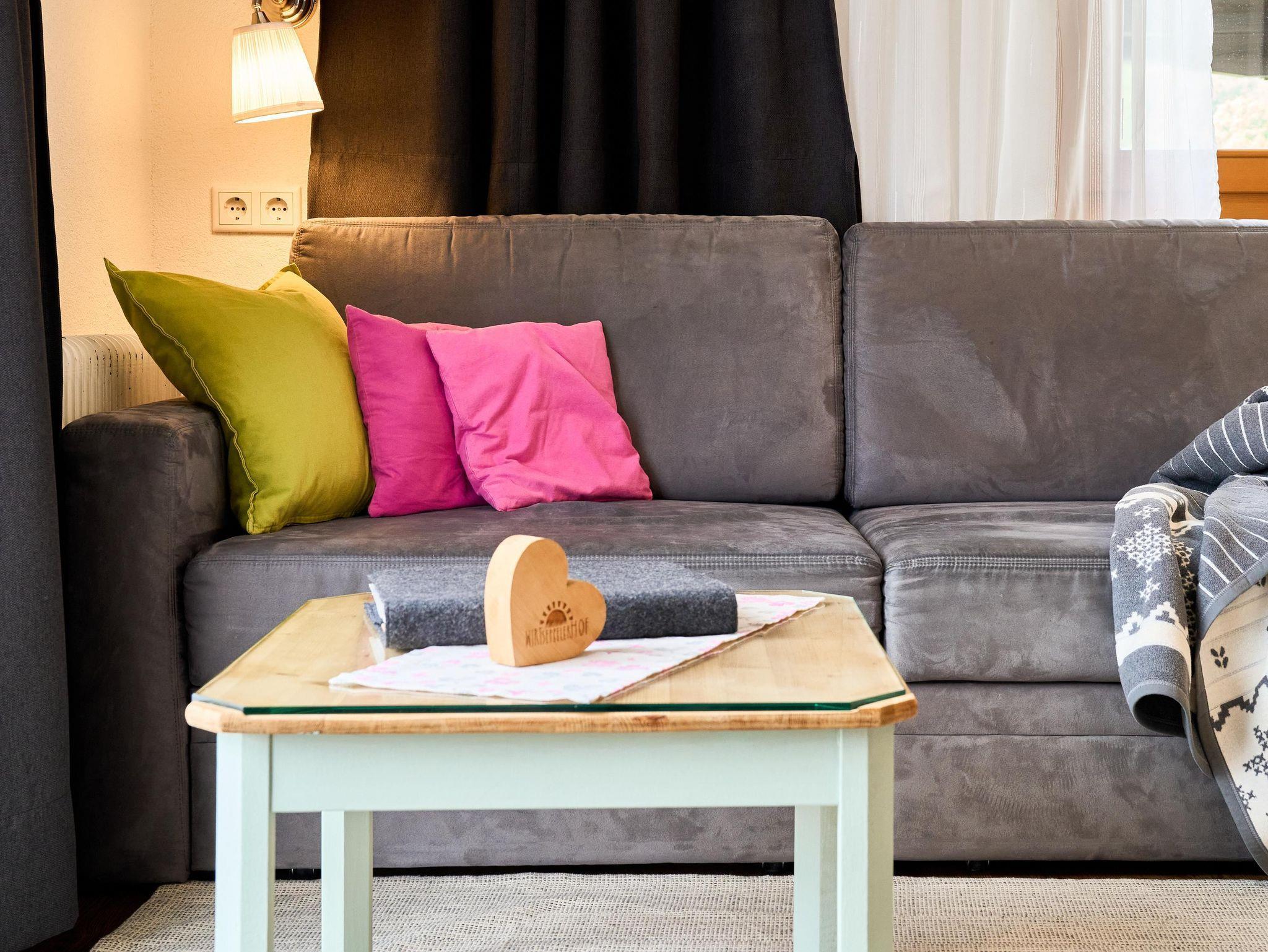 Die Ferienwohnung Hoch Moos verfügt über ein Schlafzimmer, ein gemütliches Wohnzimmer mit Schlafcouch und Kochnische sowie ein Bad mit Dusche und WC. Ein weiteres Highlight ist der wunderschöne Balkon mit Ausrichtung nach Süden und Westen – perfekt, um die Sonne und die herrliche Aussicht zu genießen. Das große Bad ist über einen separaten, ausschließlich von unseren Gästen genutzten Gang erreichbar. Mit ca. 40 m² bietet die Wohnung Platz für bis zu 4 Personen.