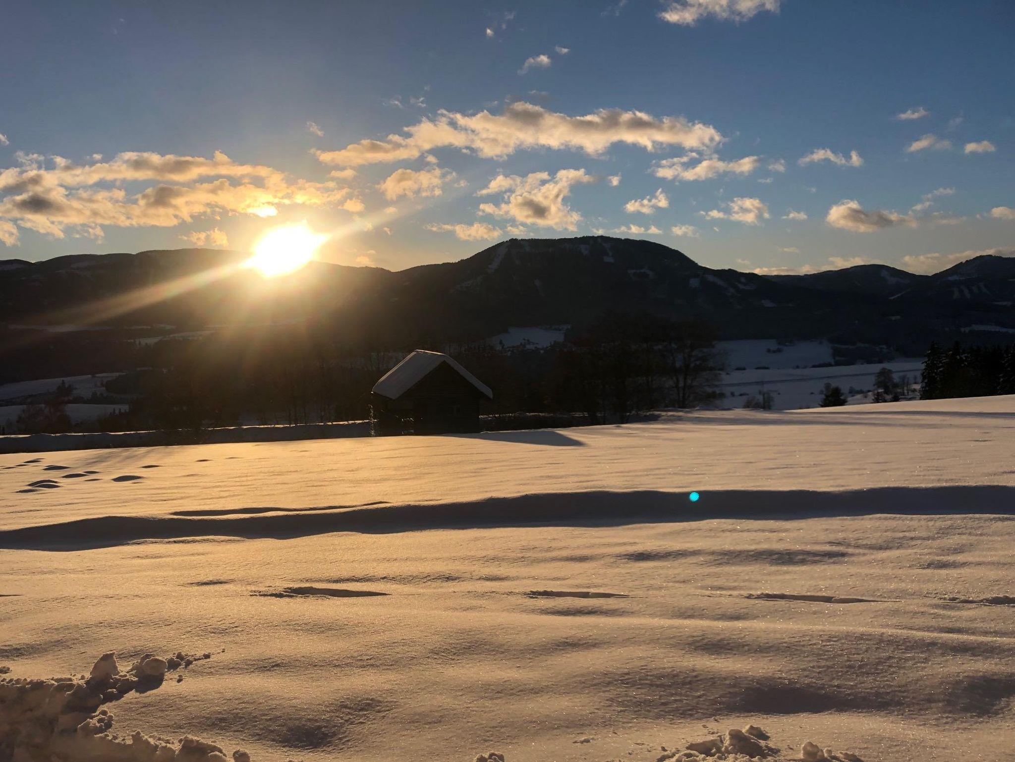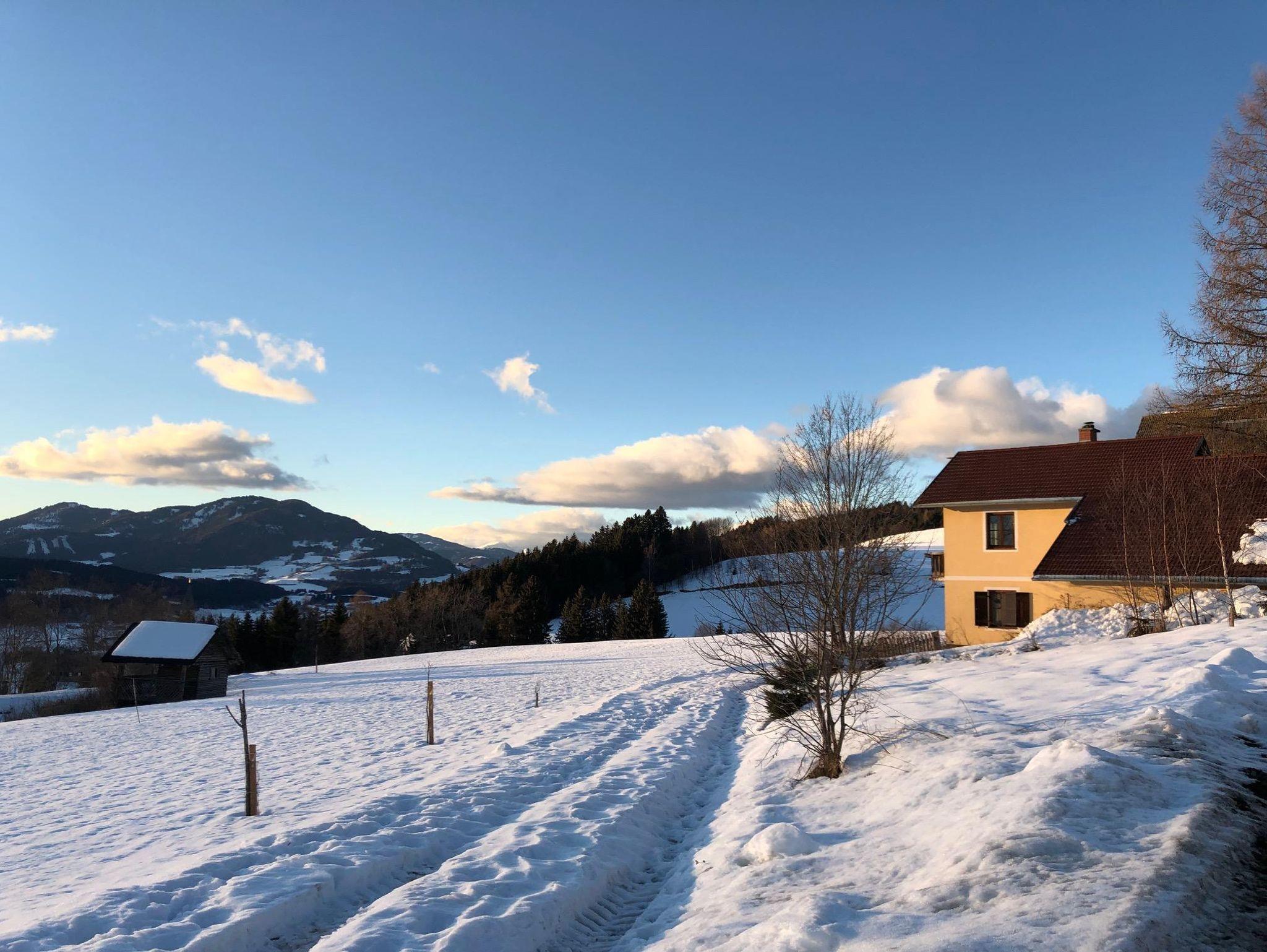 Der Winter ist besonders bezaubernd - die Winterlandschaft rund ums Ferienhaus ist wunderschön. Ein Weitblick über die breite Tallandschaft lädt zum Genießen und Entspannen ein. Das Häuschen ist hauptsächlich über einen Holzofen zu heizen (zusätzliche Heizkörper gibt es in den Sanitärbereichen). Wenn das Feuer im Ofen knistert und der Blick in die Flammen das Herz erwärmt, kann der Wintertag gemütlich ausklingen.