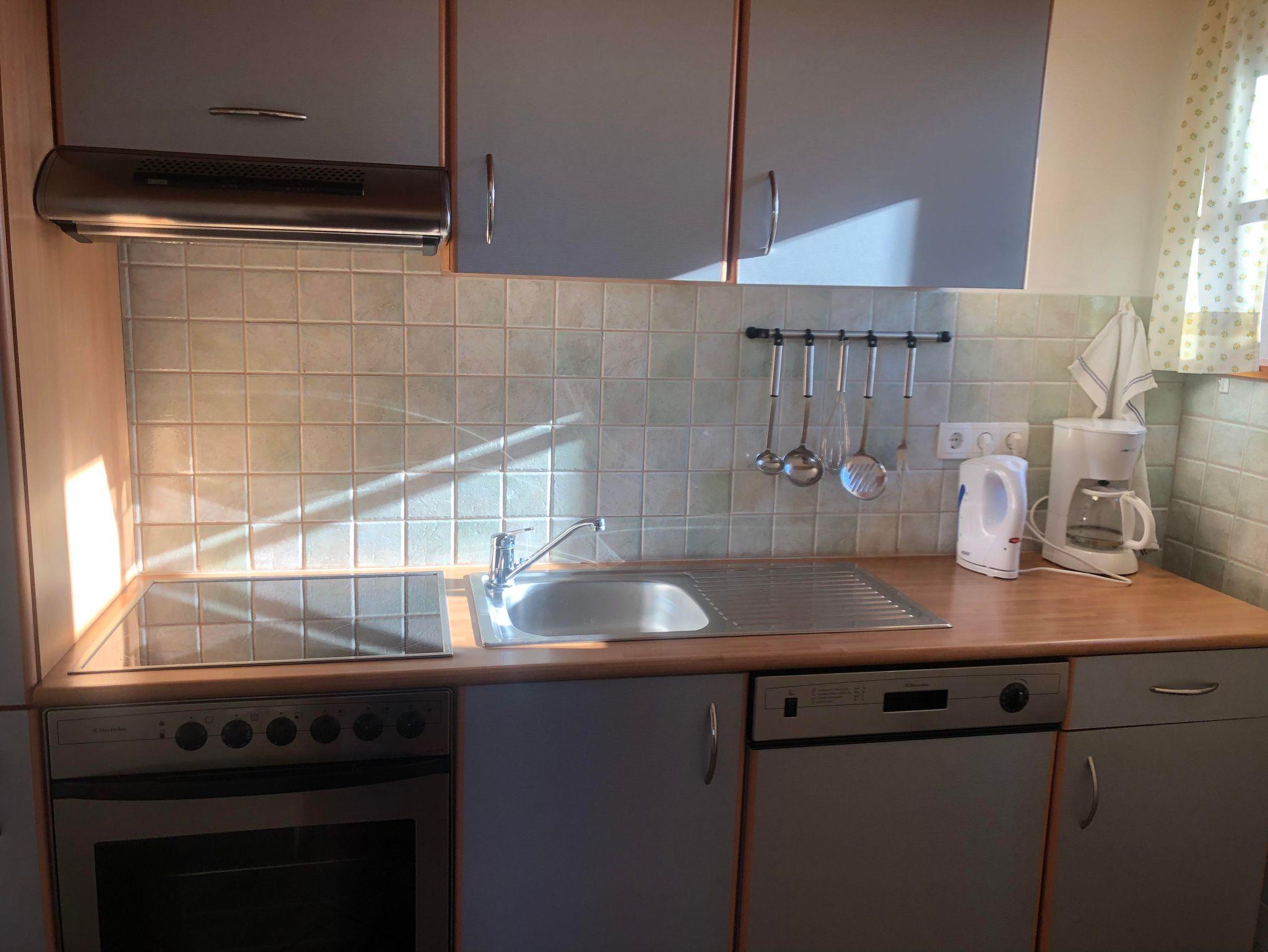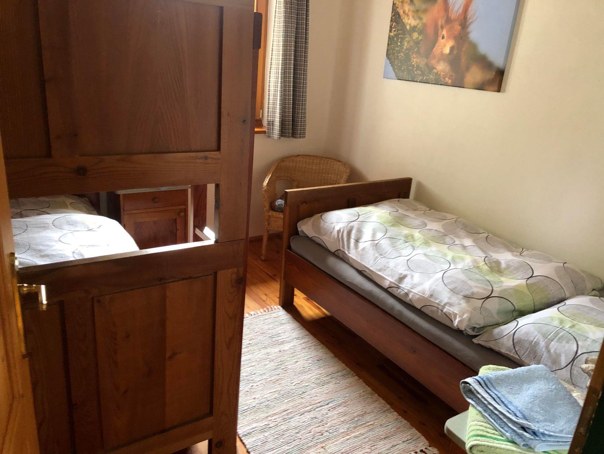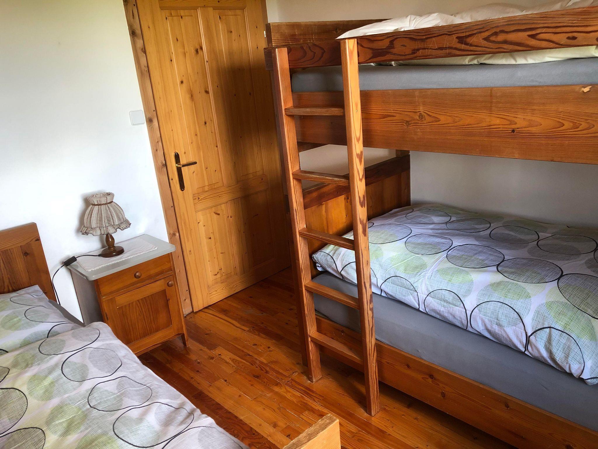 Im Haus befinden sich zwei Schlafzimmer im Obergeschoss - ein geräumiges mit einem Doppelbett und einem Einzelbett (alles Vollholzmöbel) und ein kleines Zimmer mit einem Stockbett und einem Einzelbett (1,80 m Länge). Im Erdgeschoss befindet sich eine gemütliche Stube mit romantischem Feuer im Kachelofen, Sitzecke und Couch, die Küchenzeile ist ausgestattet mit Koch und Essgeschirr, einem Kühlschrank, E-Herd und Geschirrspüler. Im Nassbereich finden Sie ein WC, Dusche und Waschbecken und auch eine Waschmaschine.