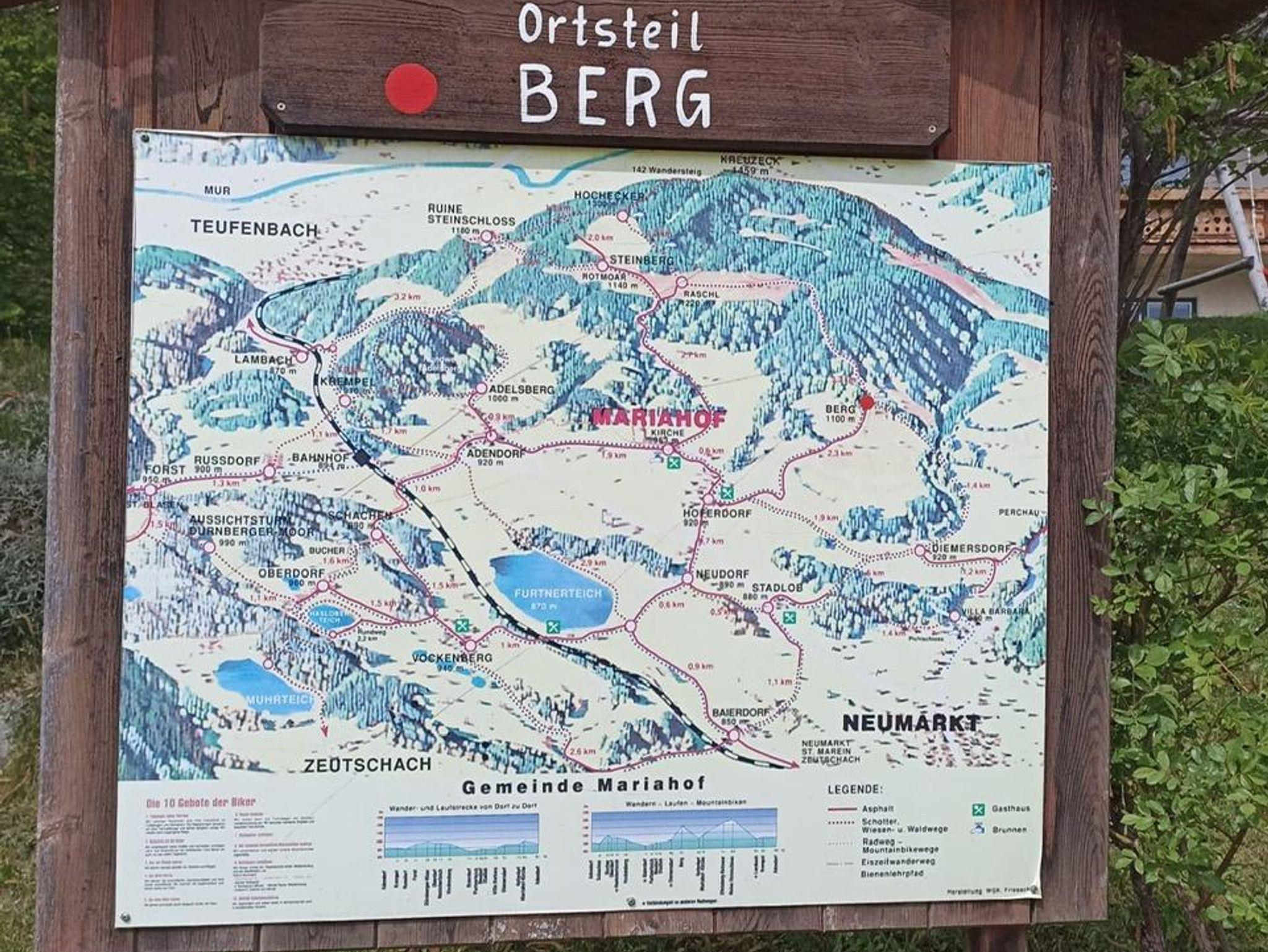 Die Moarhube liegt an einem ganz besonderen Platz - in Mariahof, inmitten des Naturparks Zirbitzkogel-Grebenzen. Hier hat die Natur das Sagen, lädt uns ein in ihren Rhythmus einzutauchen, anzukommen und zur Ruhe zu finden. Auf über 1.000 m Seehöhe hat man das Gefühl über den Dingen zu stehen, wenn man morgens das taunasse Gras unter den Füßen spürt oder abends den Sonnenuntergang schaukelnd auf der überdachten Veranda genießt. Das Ferienhaus liegt in Alleinlage, im Rücken den Wald und davor wunderschön blühende Wiesen. Ein Teil dieser Wiesen kann auch fürs Zelten genutzt werden, oder einfach, um direkt unter den Sternenhimmel zu schlafen (Zelt- und Feldbett-Verleih). Wanderwege direkt vom Haus weg, führen zu idyllischen Badeseen, auf bewirtschaftete Almen, zur höchstgelegenen Burgruine der Steiermark, dem Steinschloss oder zum Wasserfall in der Graggerschlucht.