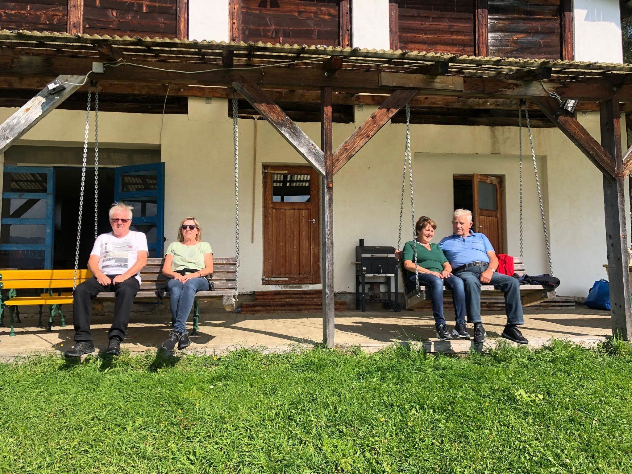 Nebenan kann die Veranda mit weiteren Sitzplätzen und Schaukeln sowie Griller mitgenutzt werden. Hier können auch zwischenzeitlich Zeltplatzgäste sein.