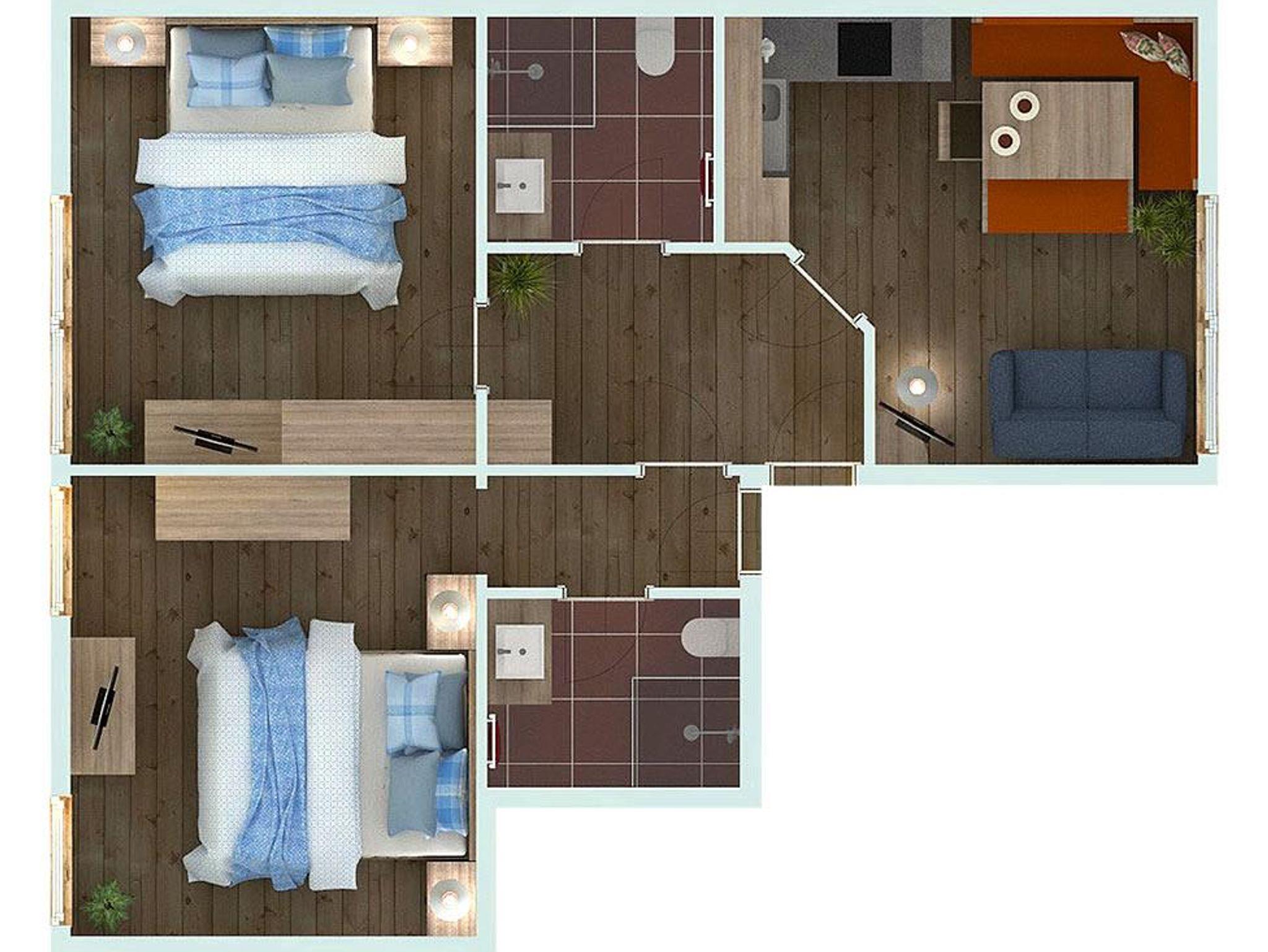 Das Appartement ist mit Wohnküche, 2 Schlafräume, 2 Bäder ausgestattet. In der Wohnküche finden Sie: Backofen, Elektroherd, Geschirr vorhanden, Geschirrspülmaschine, Kabelfernsehen, Kaffeemaschine, Kühlschrank mit Gefrierfach, Mikrowelle, moderne Möbelierung, Tisch- und Küchenwäsche, Toaster, Wasserkocher, W-LAN Schlafraum: Bettwäsche vorhanden, Doppelbett ( 1 Bett/ 2 Matratzen), Kabelfernsehen, neuwertiges Zimmer, ohne Teppich, Zentralheizung Badezimmer: Handtücher vorhanden, Haarföhn Wohn-/Schlafräume getrennt, Verbindungstür
