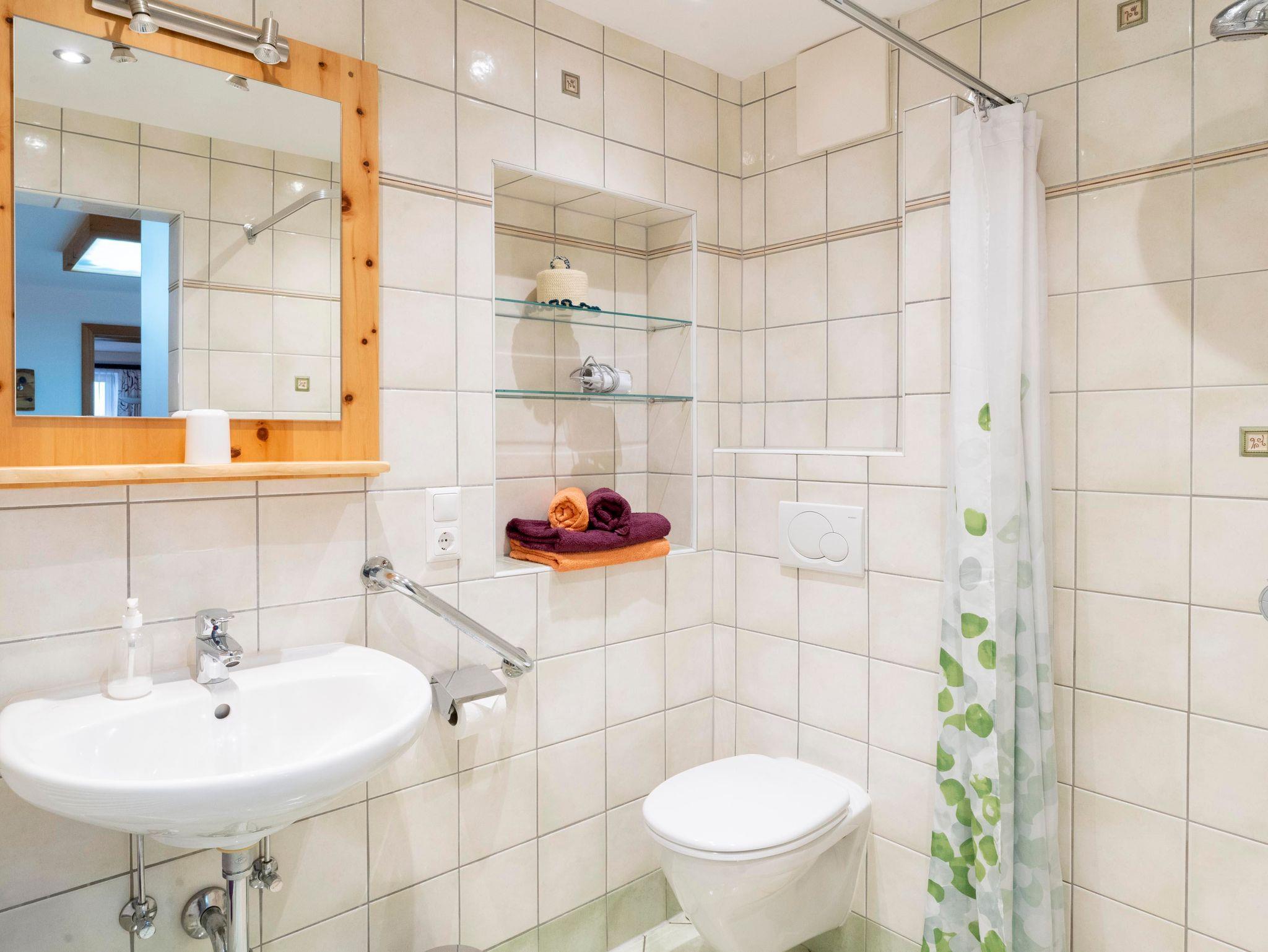 ein Schlafzimmer, Bad mit Dusche und WC