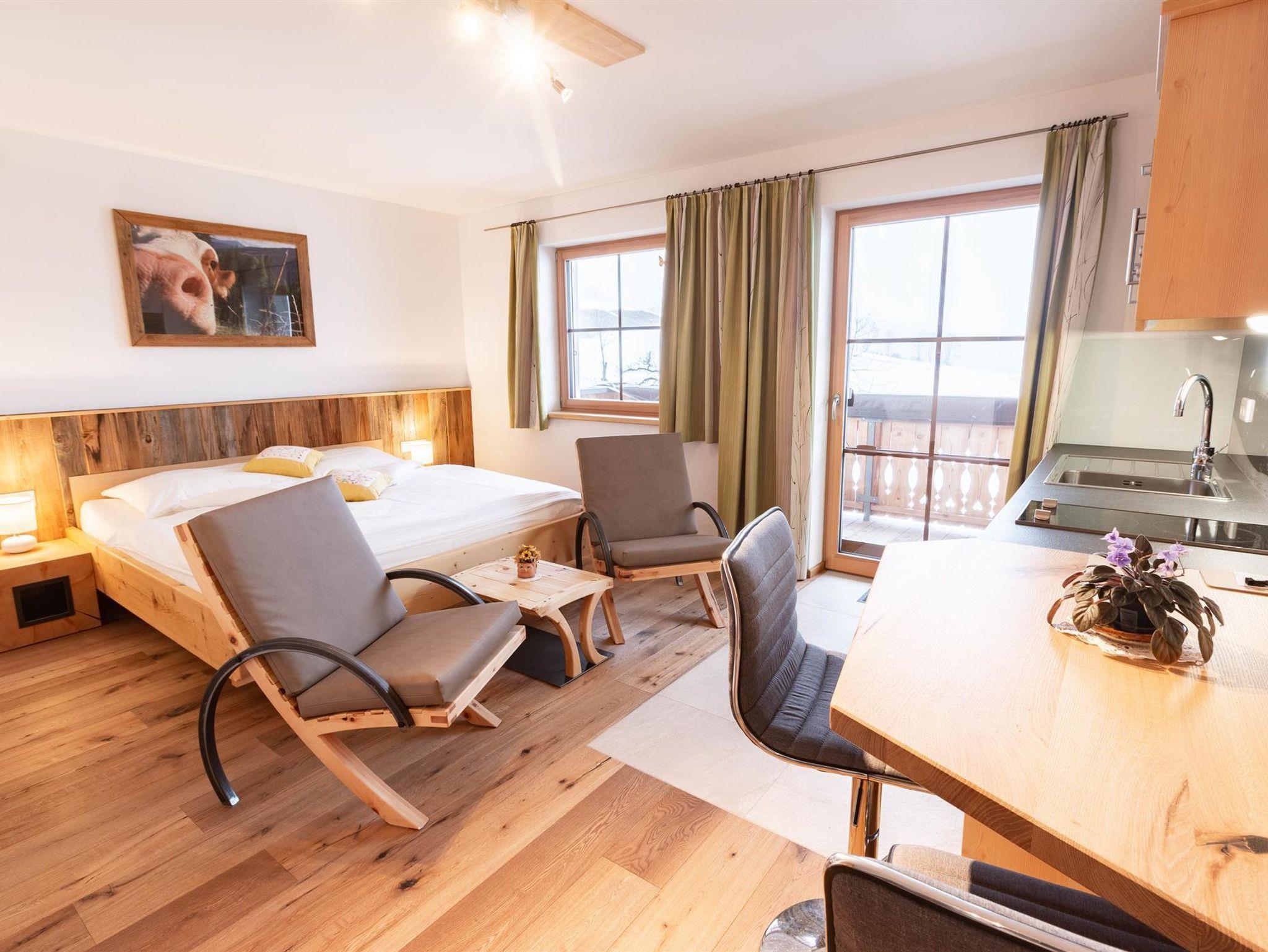 Die neu renovierten und vom hofeigenen Tischler eingerichteten Ferienwohnungen bieten Erholung, Ruhe, Freiraum und Spielvergnügen für Kinder, moderne Ausstattung, hofeigene Bioprodukte und vieles mehr!
