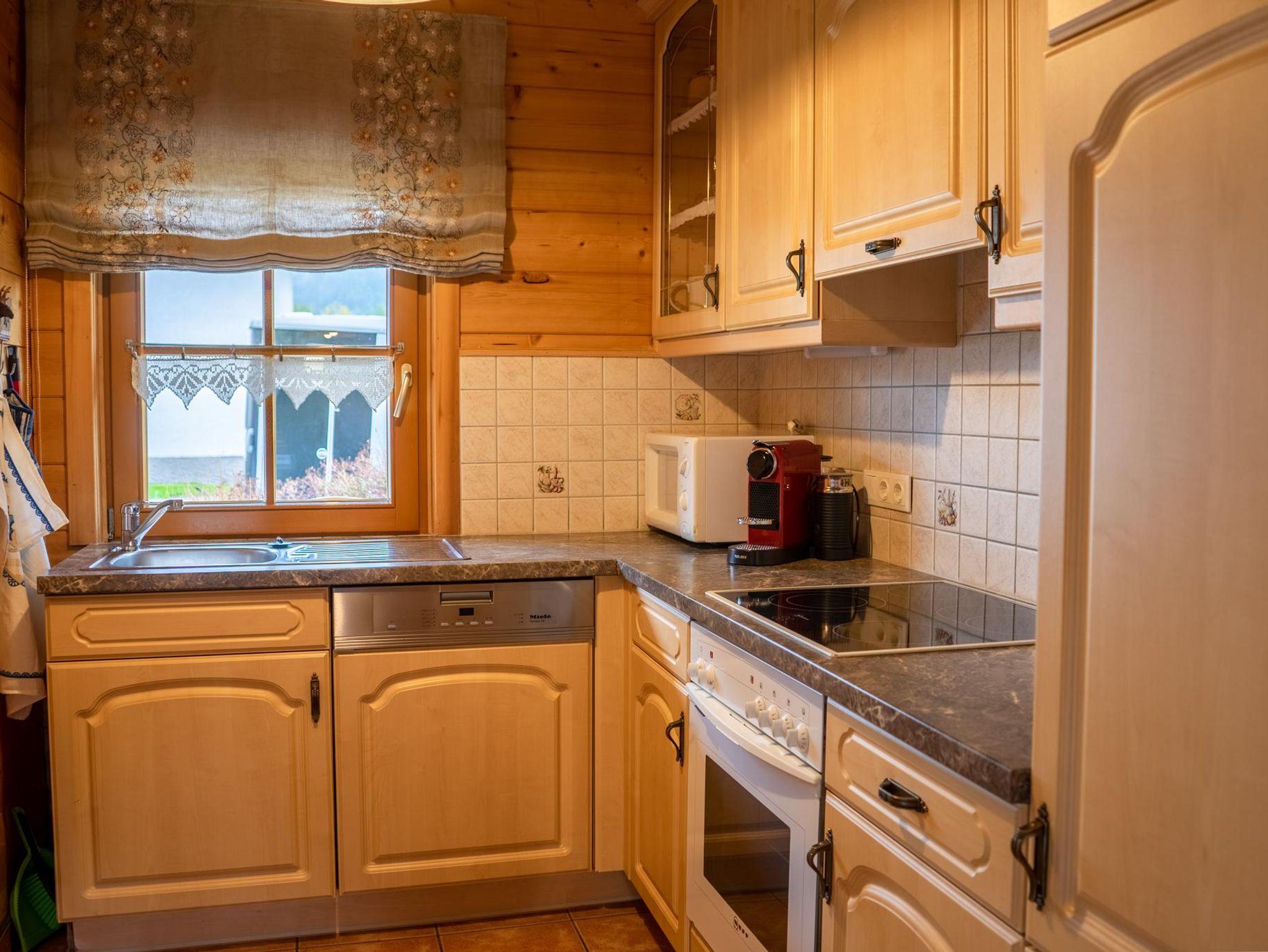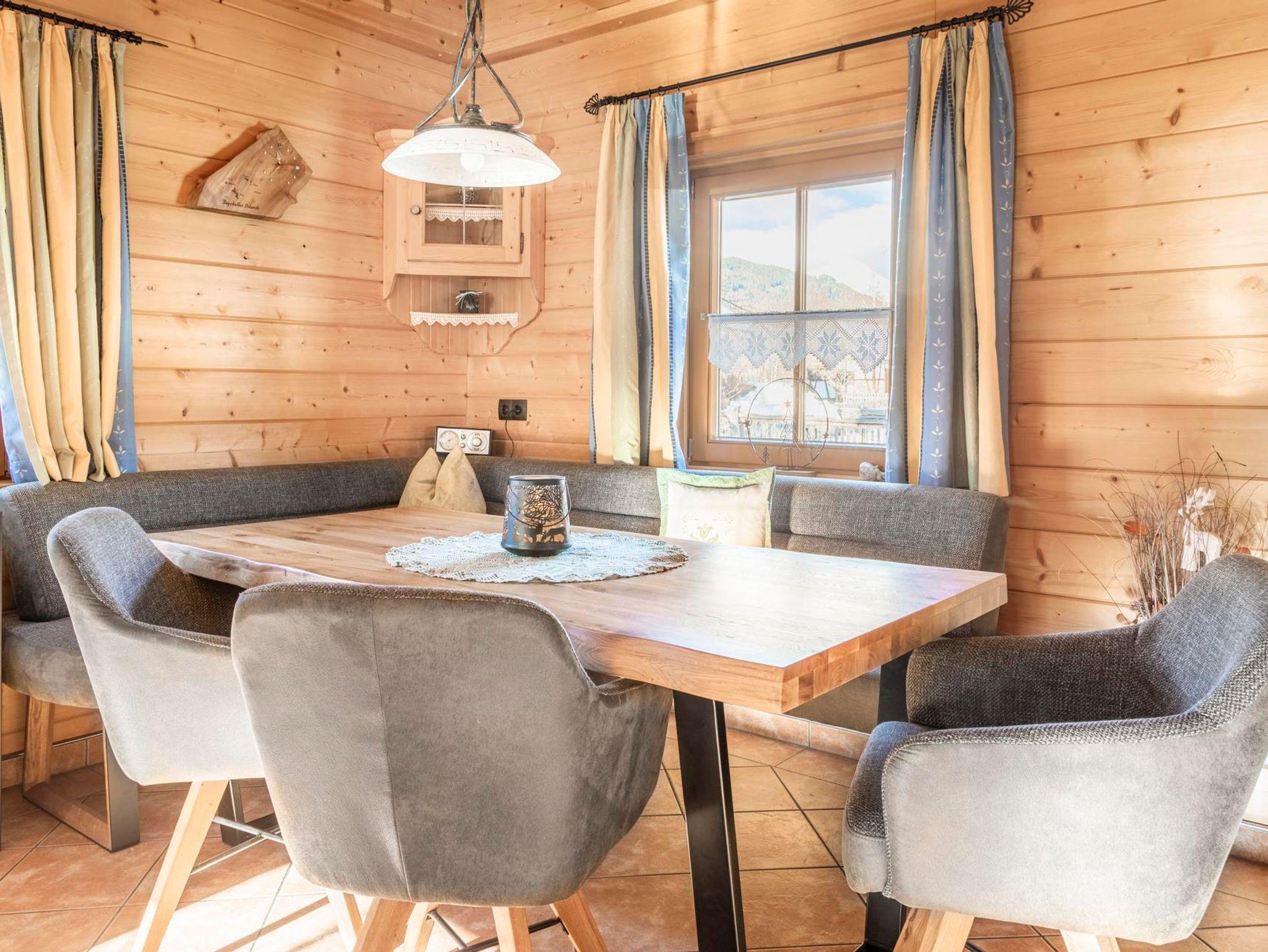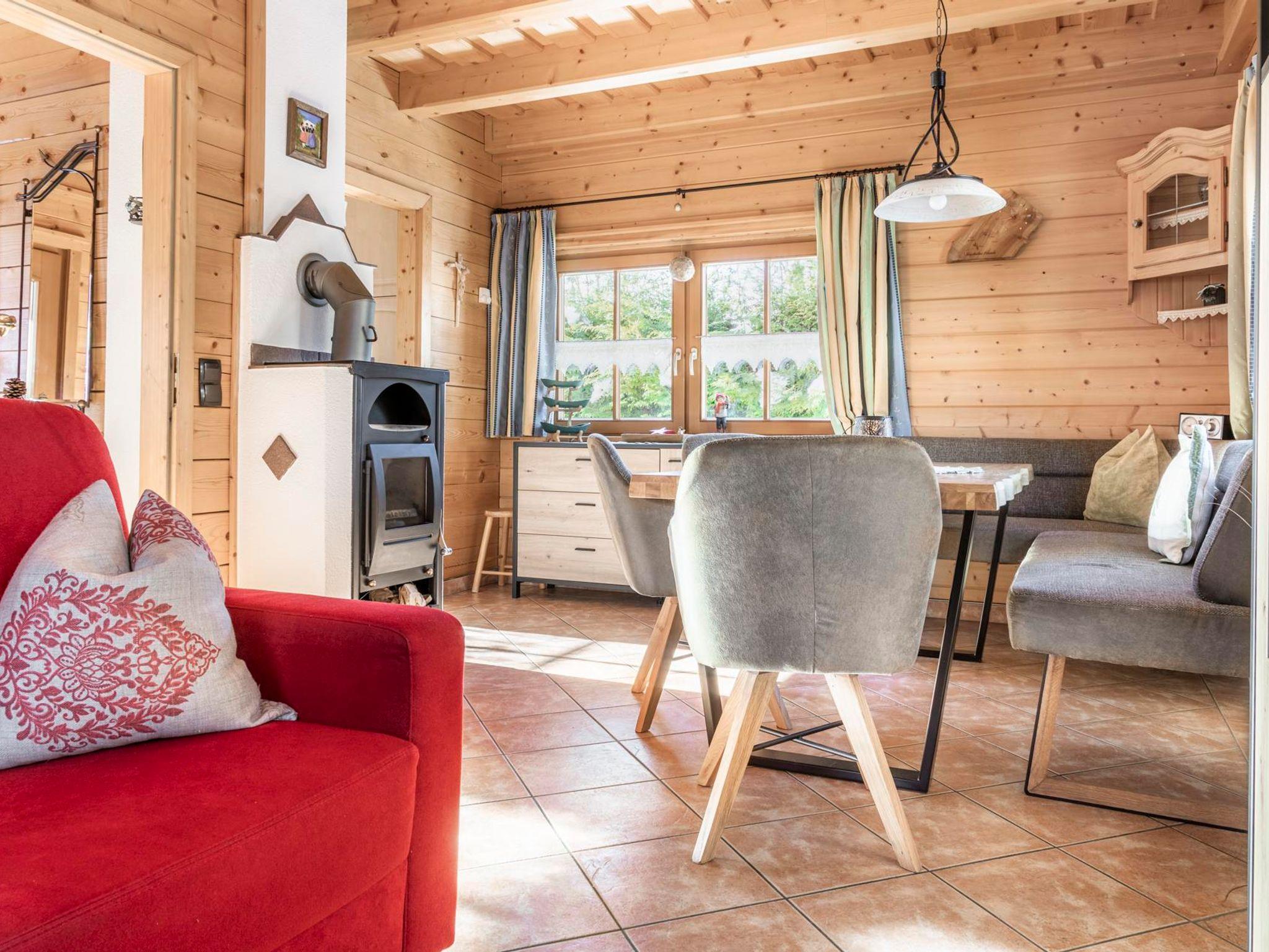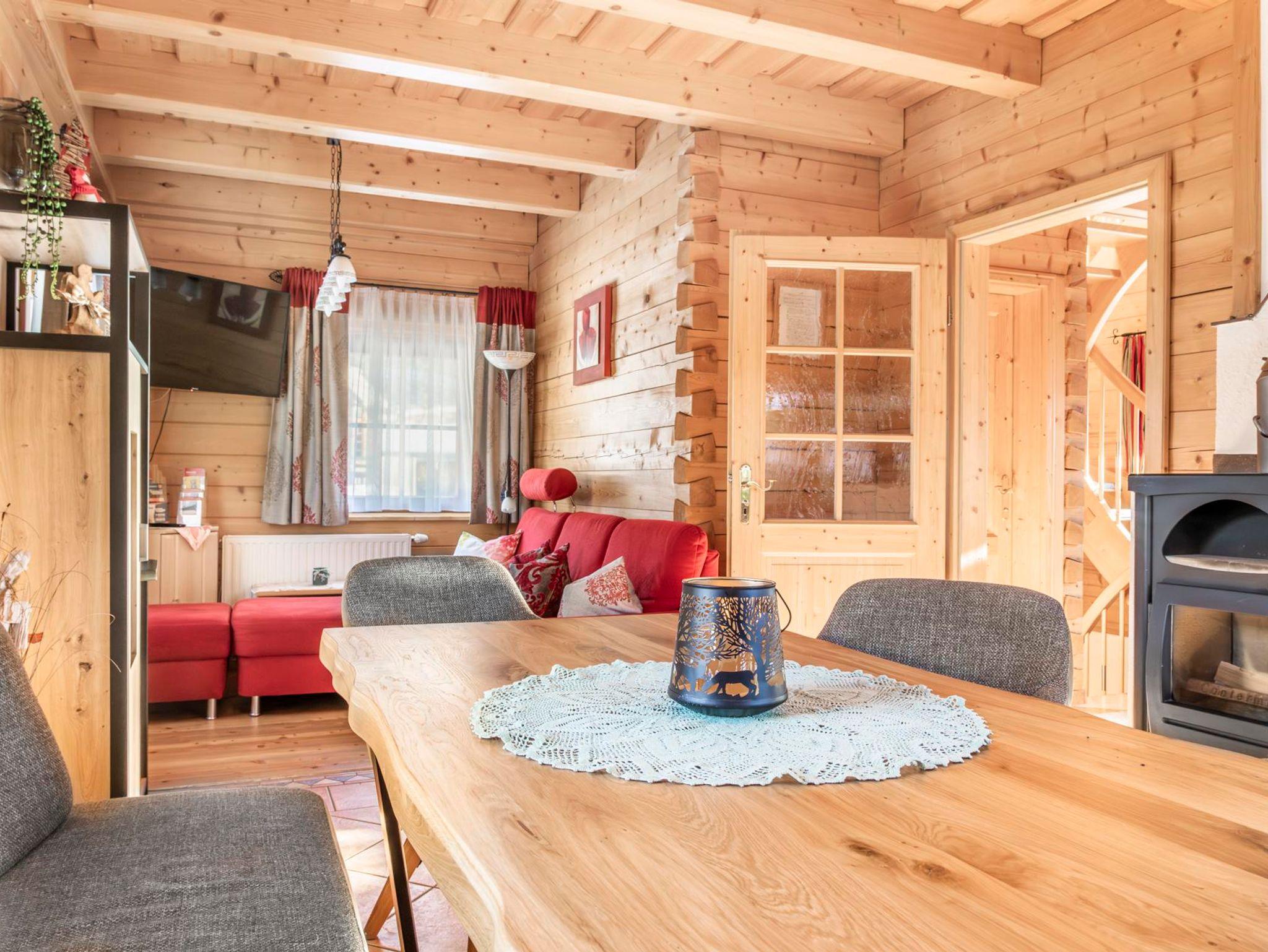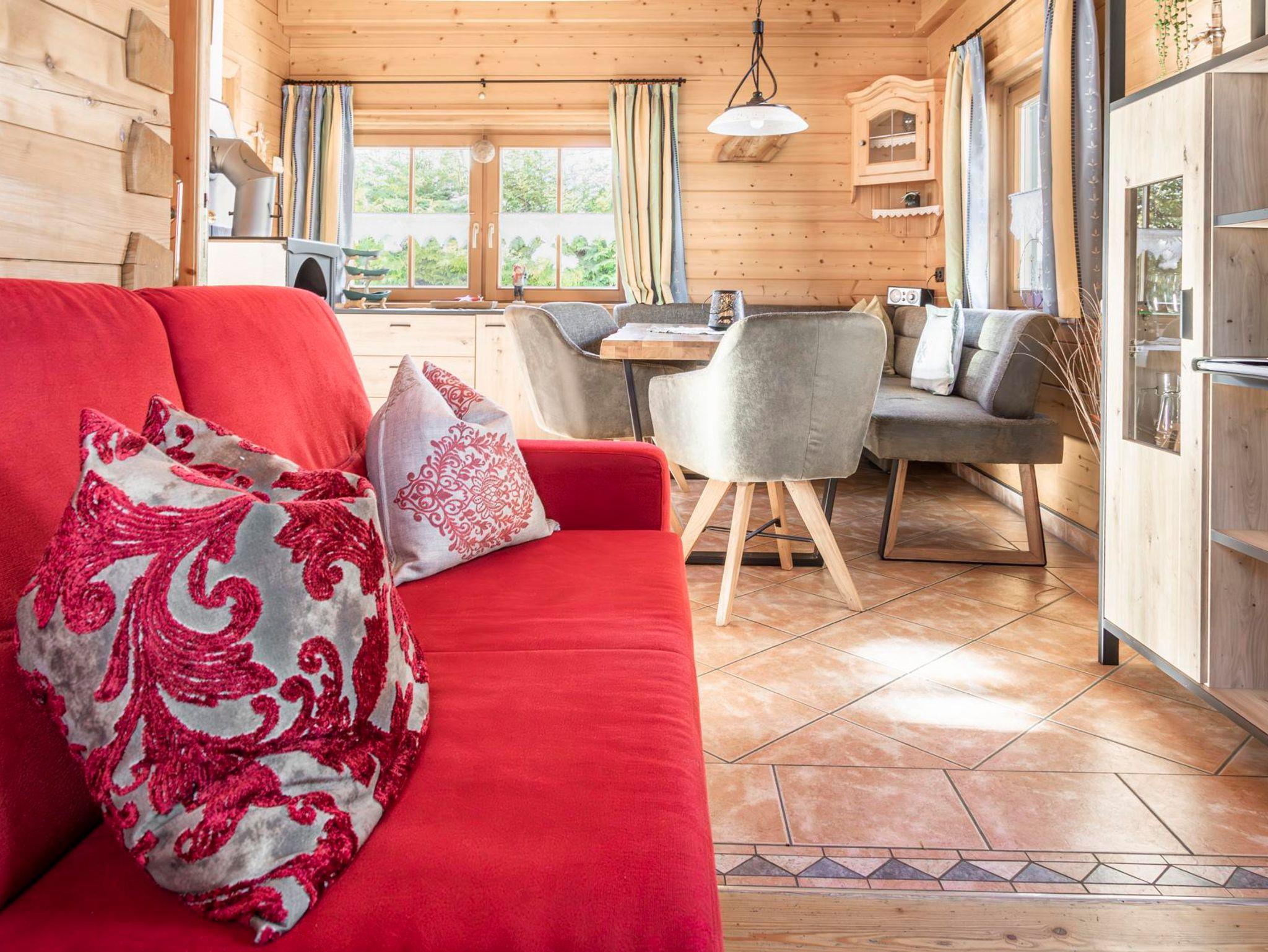 Das neue, sehr gut ausgestattete Holzhaus mit einer Wohnfläche von 120 m² bietet Platz für 7 Personen. Im Erdgeschoß befindet sich ein Vorraum mit Garderobe, sehr geräumiges Ess- und Wohnzimmer mit Kabel-TV und DVD, mit einer Größe von 25 m², ausgestattet mit bestem Komfort aus Vollholzmöbel und Kaminofen. Extra Küche, komplett eingerichtet mit E-Herd, Backrohr, Kühlschrank, Geschirrspühler, Microwelle, Kaffee- und Aufschmittmaschine, Mixer und Toaster, Griller etc. Im Obergeschoß sind 3 getrennte, mit Vollholzmöbel ausgestattete Schlafzimmer. DU/WC finden Sie im Erdgeschoß, sowie im Obergeschoß vor. Ein großer Balkon lädt zum Sonnen ein. Mitten unter den Obstbäumen vor dem Haus ist eine große überdachte Terrasse und eine Liegewiese mit Griller, sowie ein Spielplatz. In unserer Infrarotkabine können Sie schwitzen und sich entspannen.