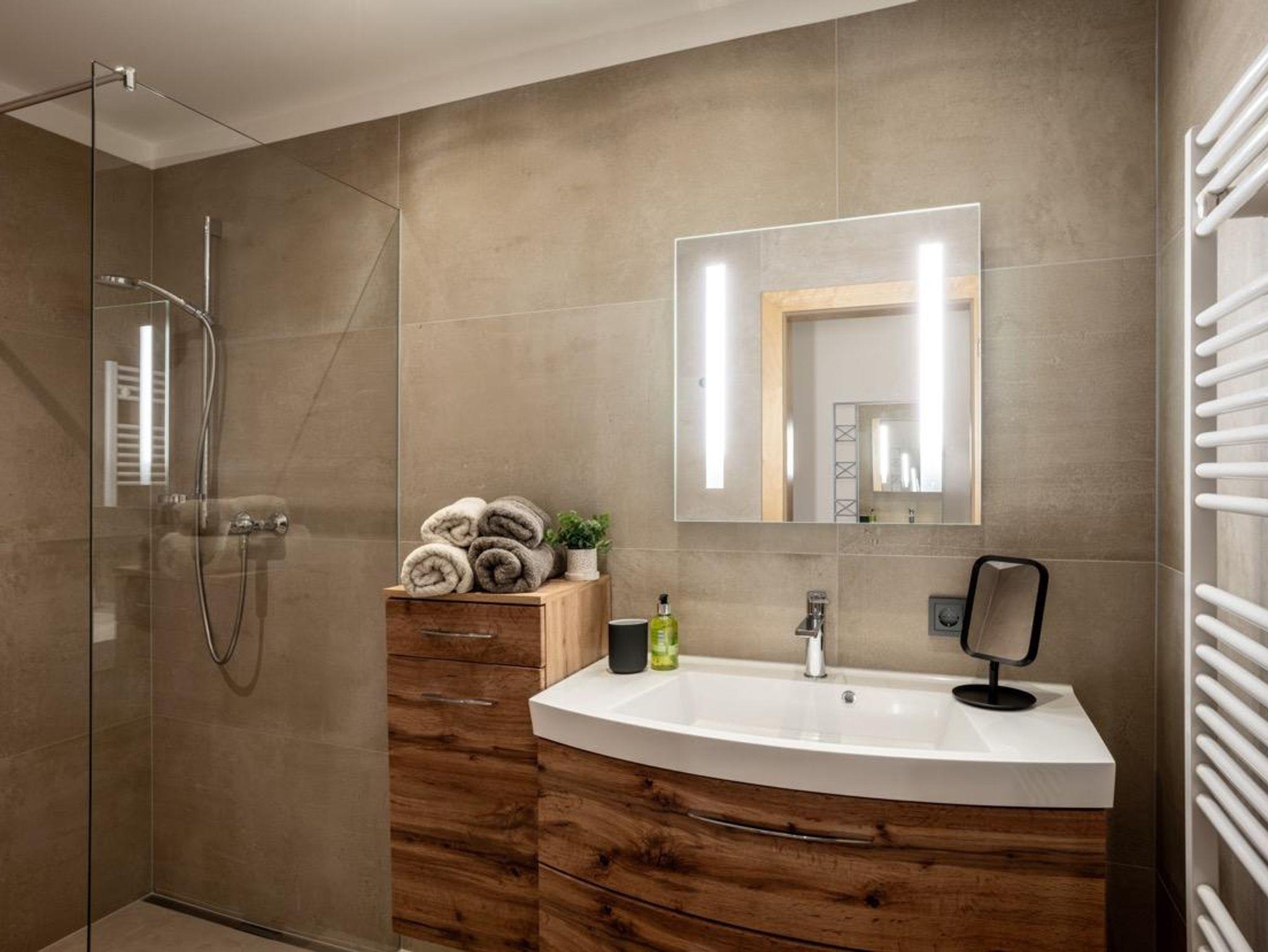 • Badezimmer: Das Badezimmer ist mit einer barrierefreien Dusche ausgestattet, die Ihnen höchsten Komfort bietet. Das WC ist separat untergebracht, um Ihnen maximale Privatsphäre zu gewährleisten.