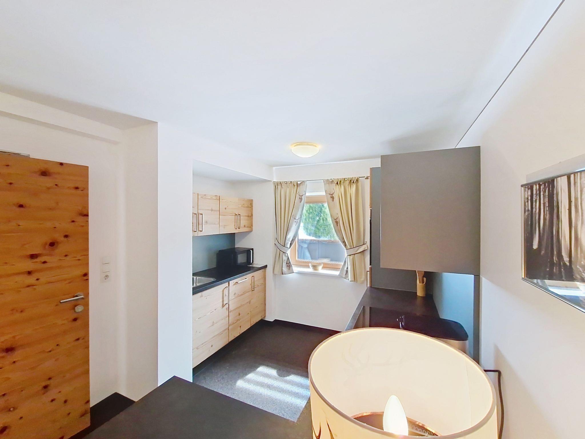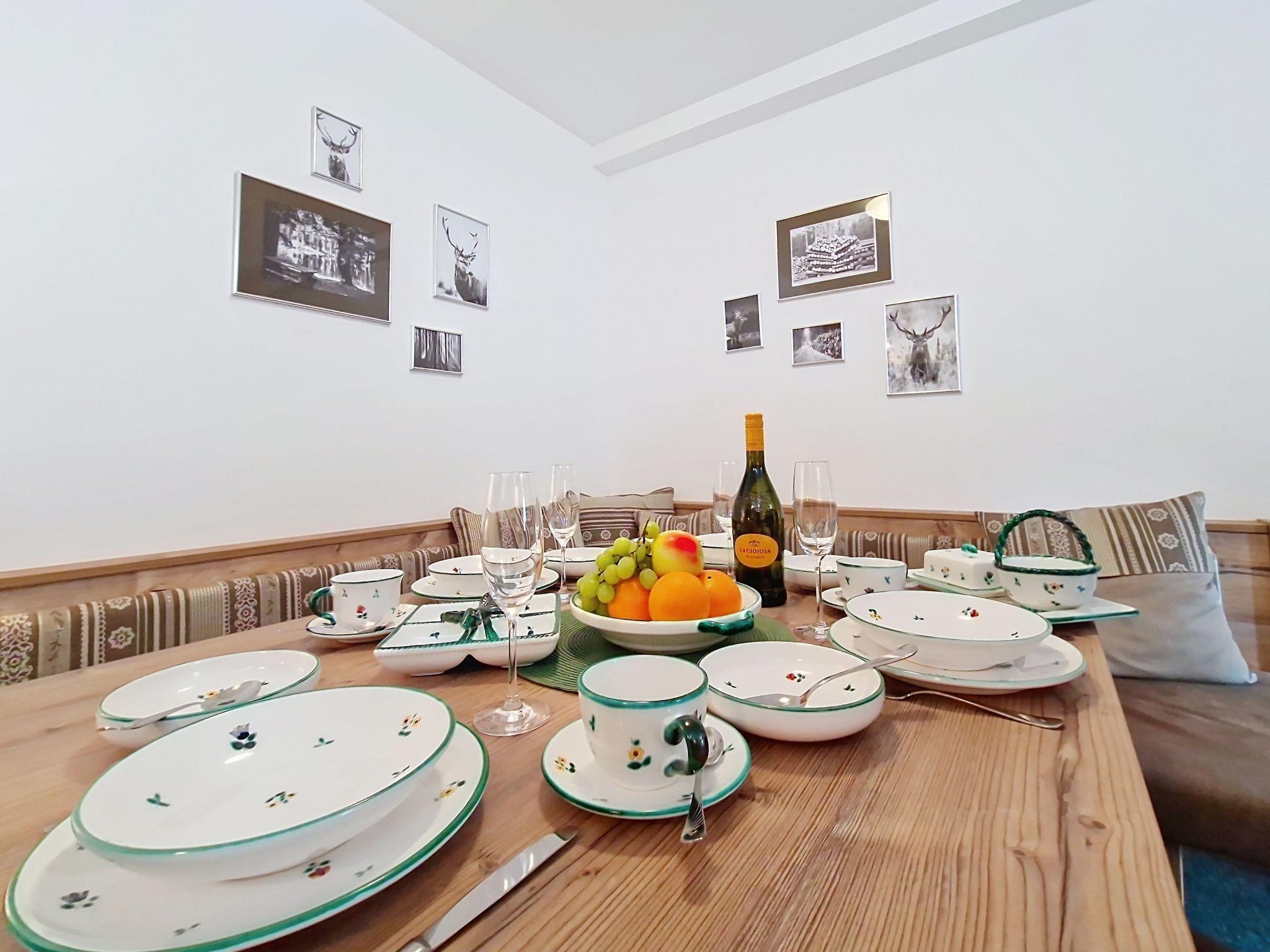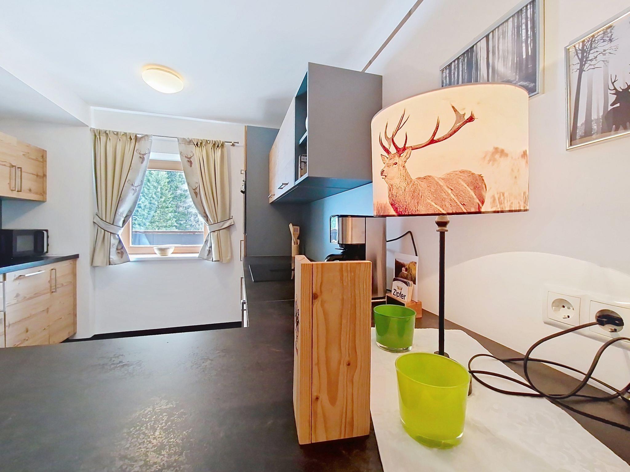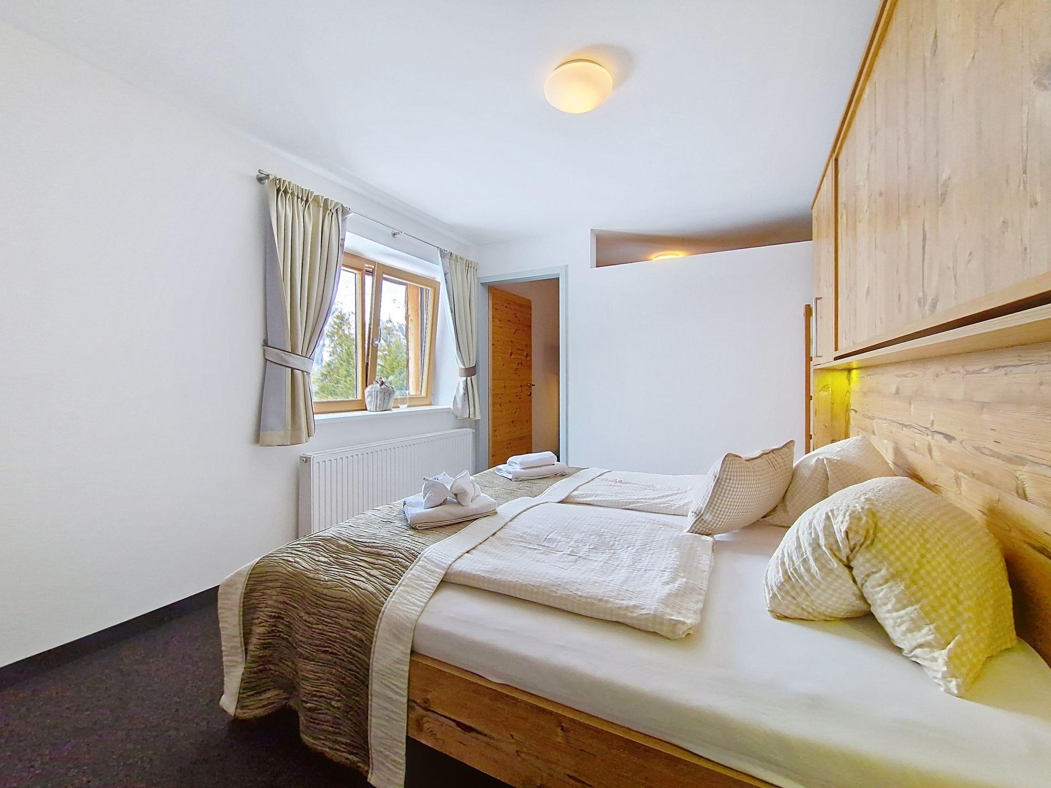 "Kreuzjoch", 2-Zimmer-Wohnung 50 m2 im 1. Stock. Geschmackvoll und gemütlich eingerichtet: 1 Doppelzimmer. Grosse Wohnküche (Geschirrspüler, 4 Glaskeramikplatten, Wasserkocher, Mikrowelle, elektrische Kaffeemaschine) mit Bar, 1 x 2 Etagenbetten (90 cm, Länge 200 cm), Essecke und TV (Flachbildschirm). Dusche/WC (privat). Holzheizung. Teppichboden. Sehr schöne Panoramasicht auf die Berge und das Tal. Zur Verfügung: Internet (WLAN, gratis). Bitte beachten: Kühlschrank ohne Gefrierfach, Nichtraucher-Unterkunft. Rauchmelder, Feuerlöscher. Dusche/WC sind ausserhalb der Wohnung-privat! Das Zusatzbett ist im Doppelzimmer über dem Doppelbett.