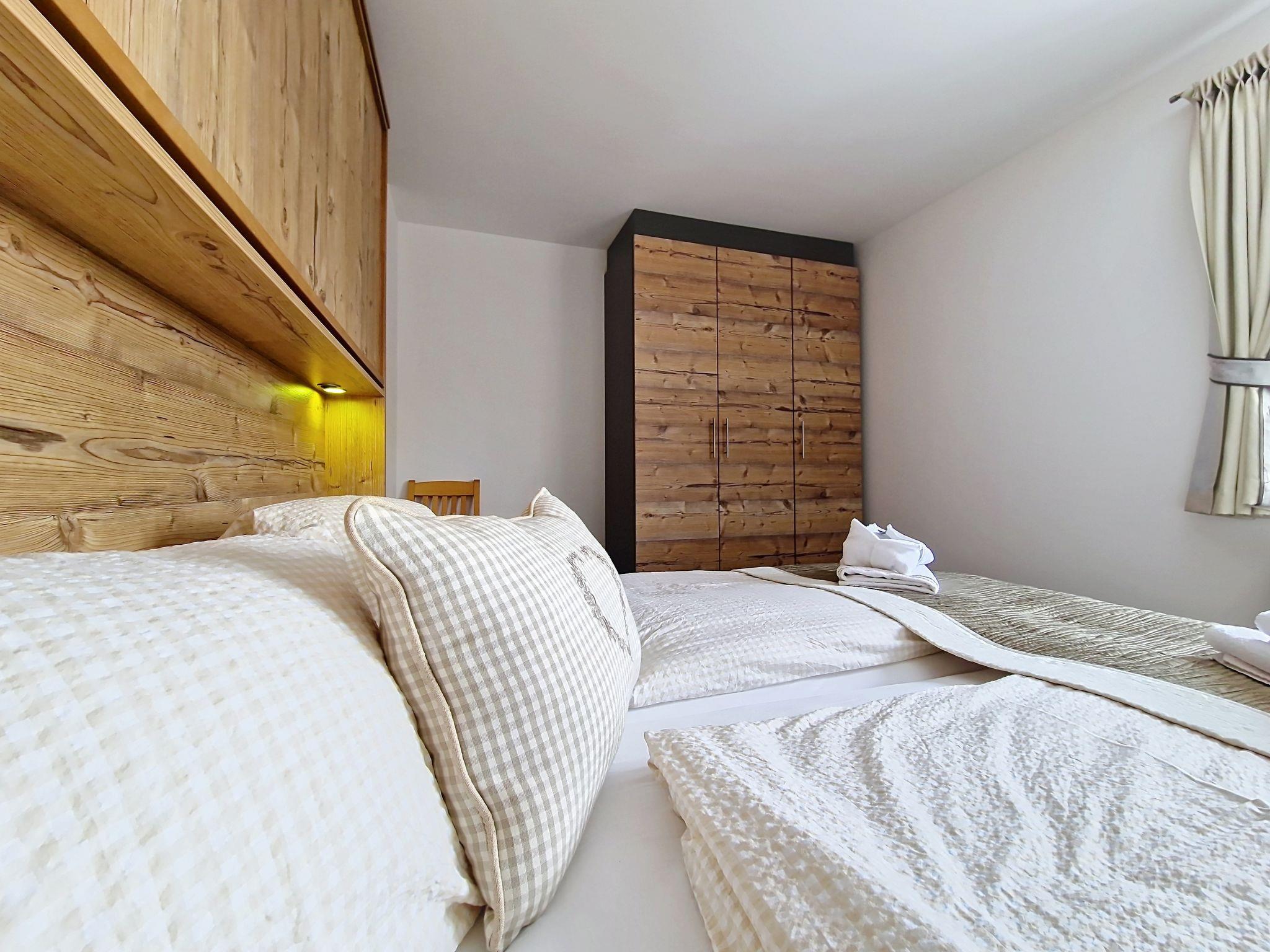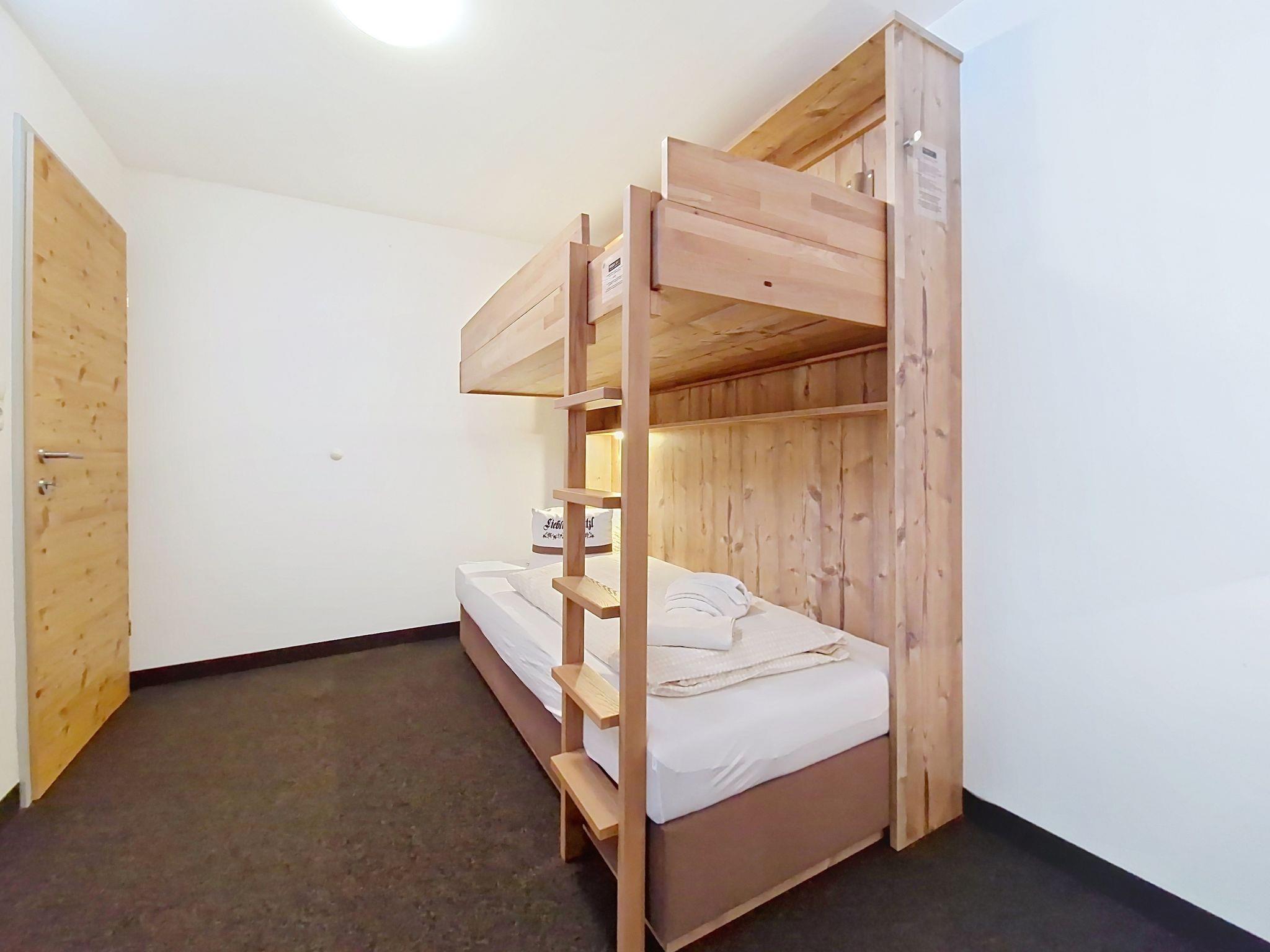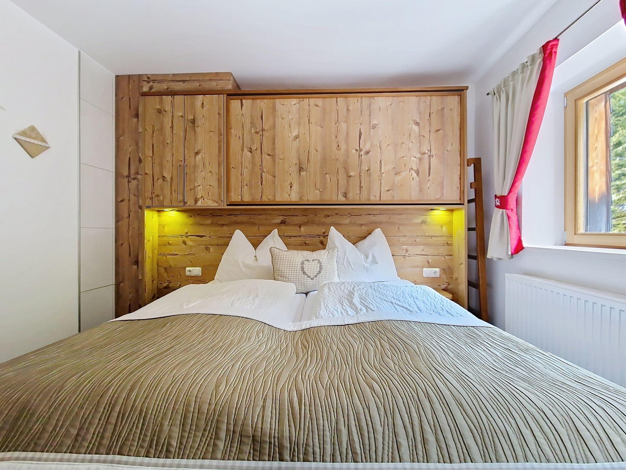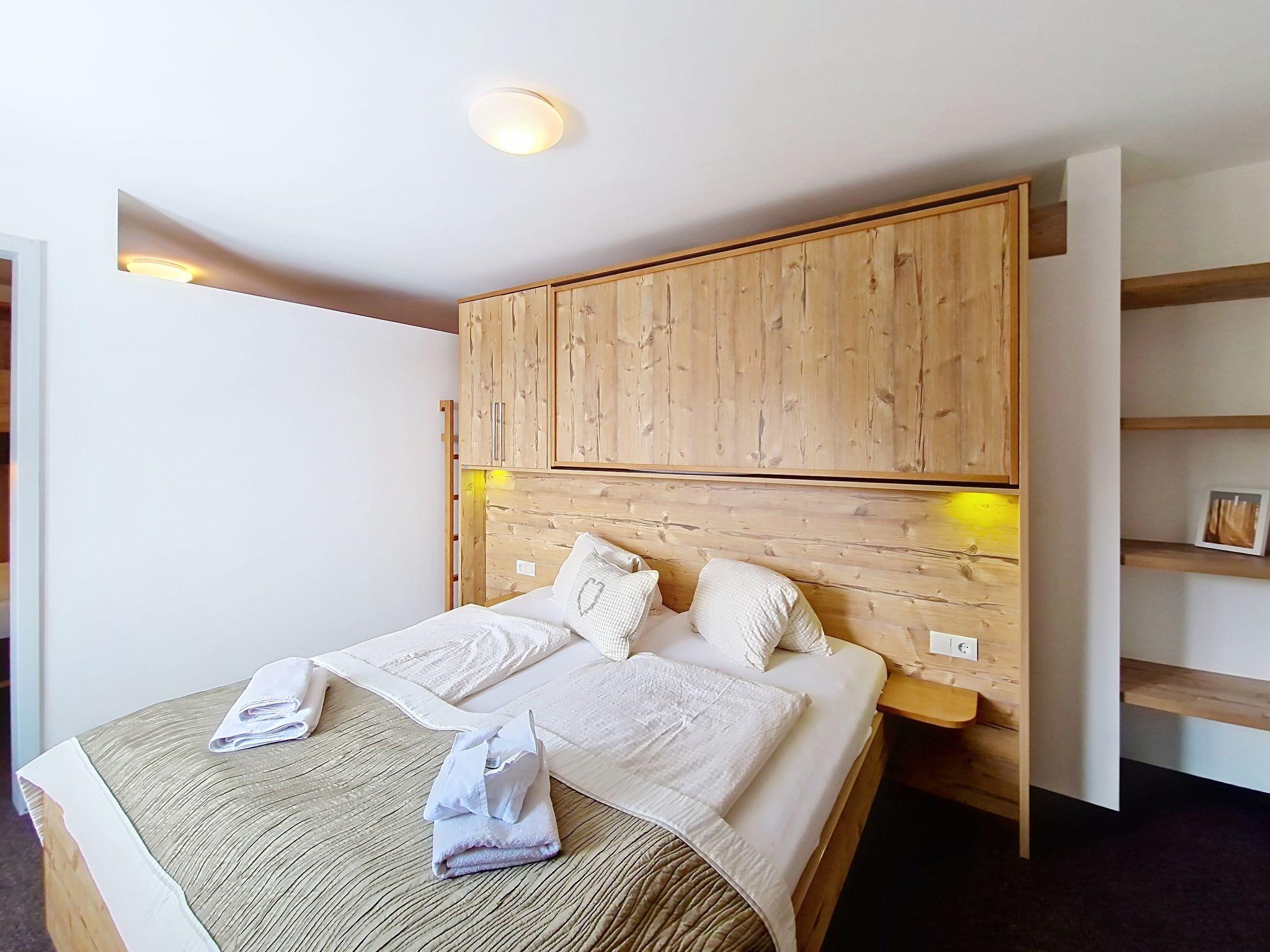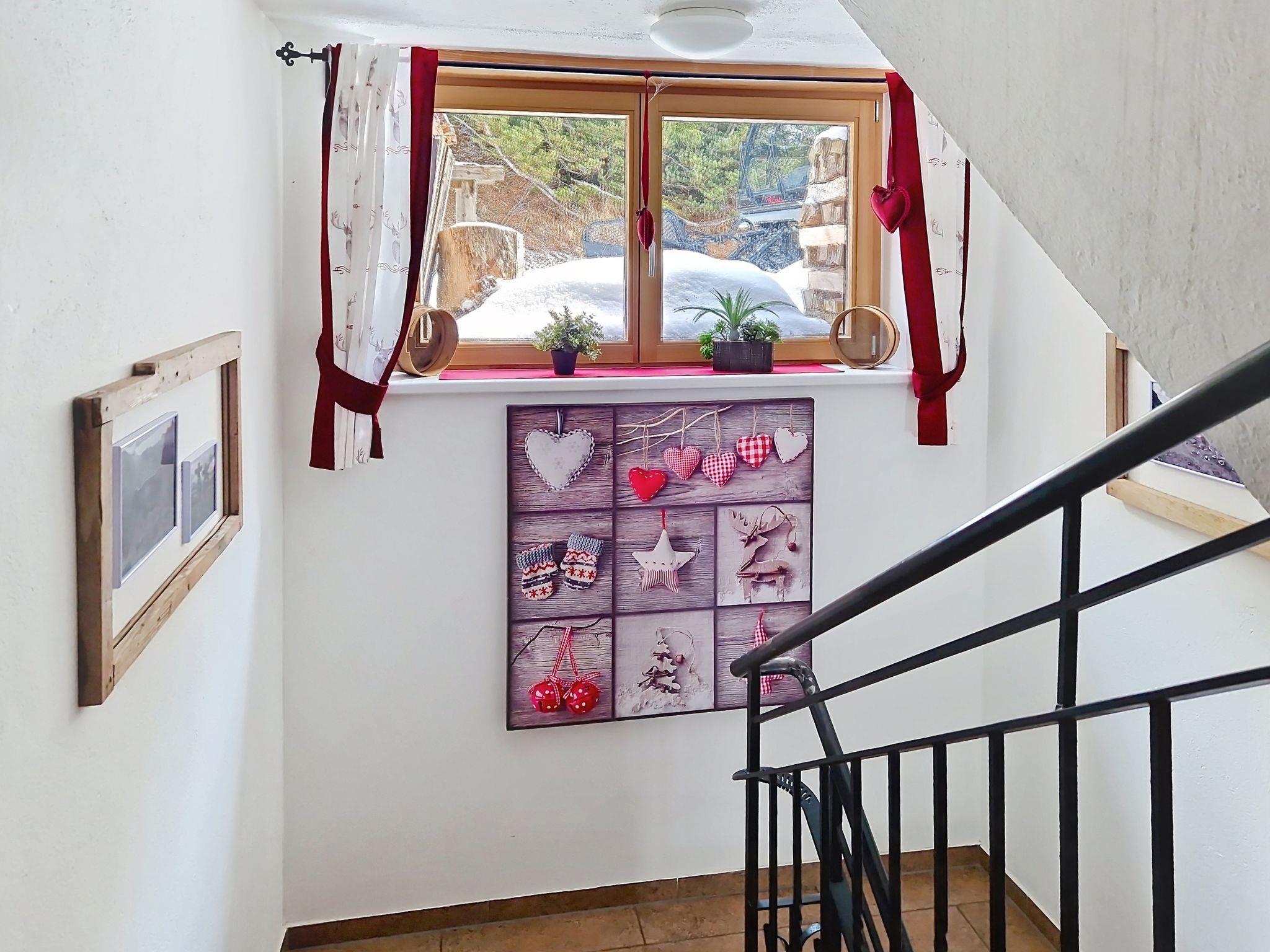 "Kreuzjoch", 2-Zimmer-Wohnung 50 m2 im 1. Stock. Geschmackvoll und gemütlich eingerichtet: 1 Doppelzimmer. Grosse Wohnküche (Geschirrspüler, 4 Glaskeramikplatten, Wasserkocher, Mikrowelle, elektrische Kaffeemaschine) mit Bar, 1 x 2 Etagenbetten (90 cm, Länge 200 cm), Essecke und TV (Flachbildschirm). Dusche/WC (privat). Holzheizung. Teppichboden. Sehr schöne Panoramasicht auf die Berge und das Tal. Zur Verfügung: Internet (WLAN, gratis). Bitte beachten: Kühlschrank ohne Gefrierfach, Nichtraucher-Unterkunft. Rauchmelder, Feuerlöscher. Dusche/WC sind ausserhalb der Wohnung-privat! Das Zusatzbett ist im Doppelzimmer über dem Doppelbett.