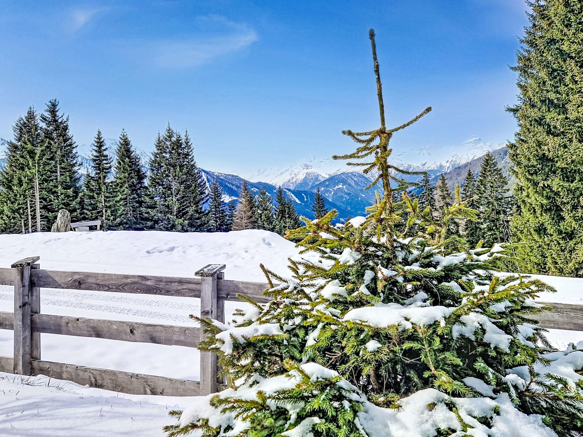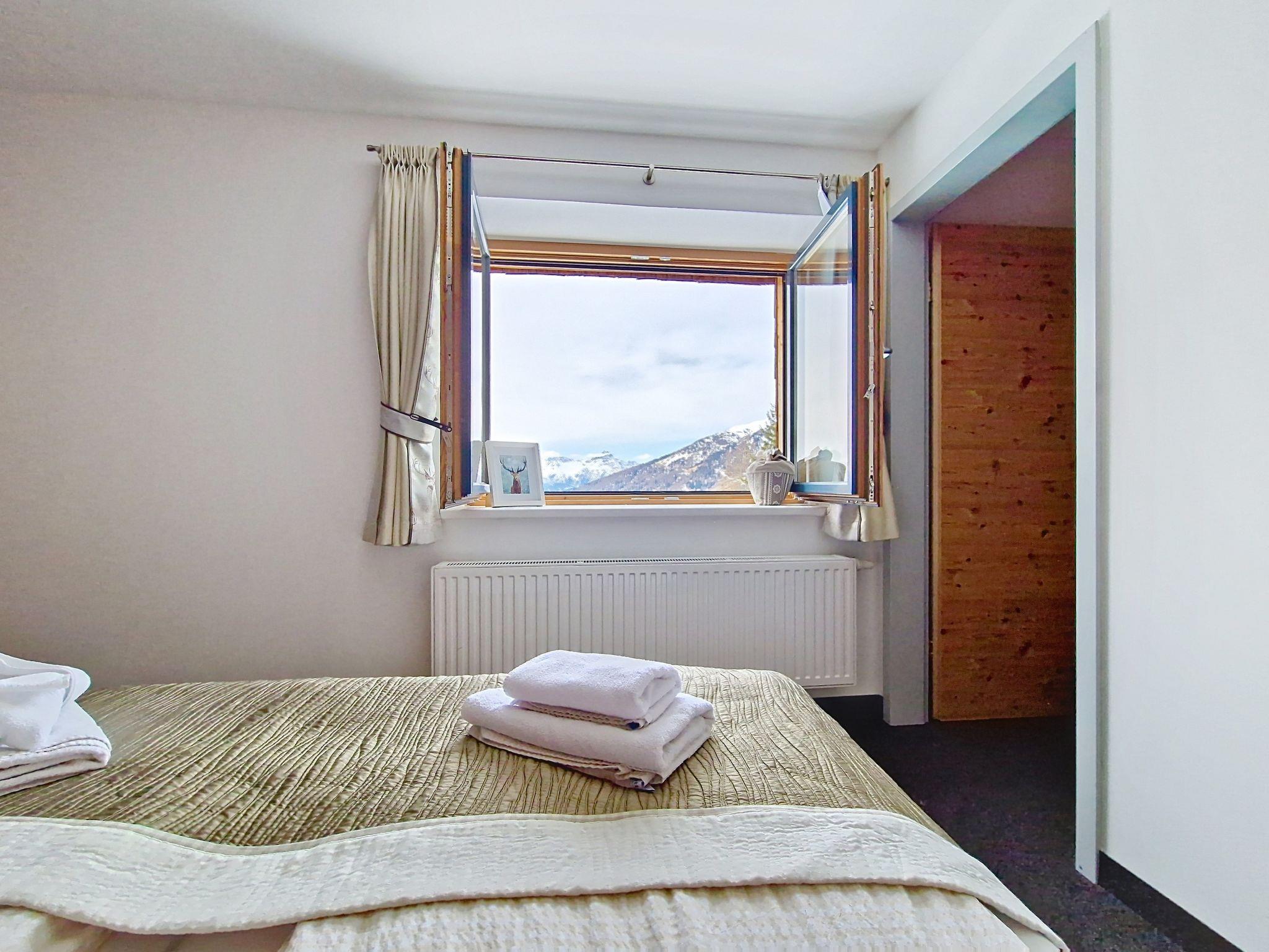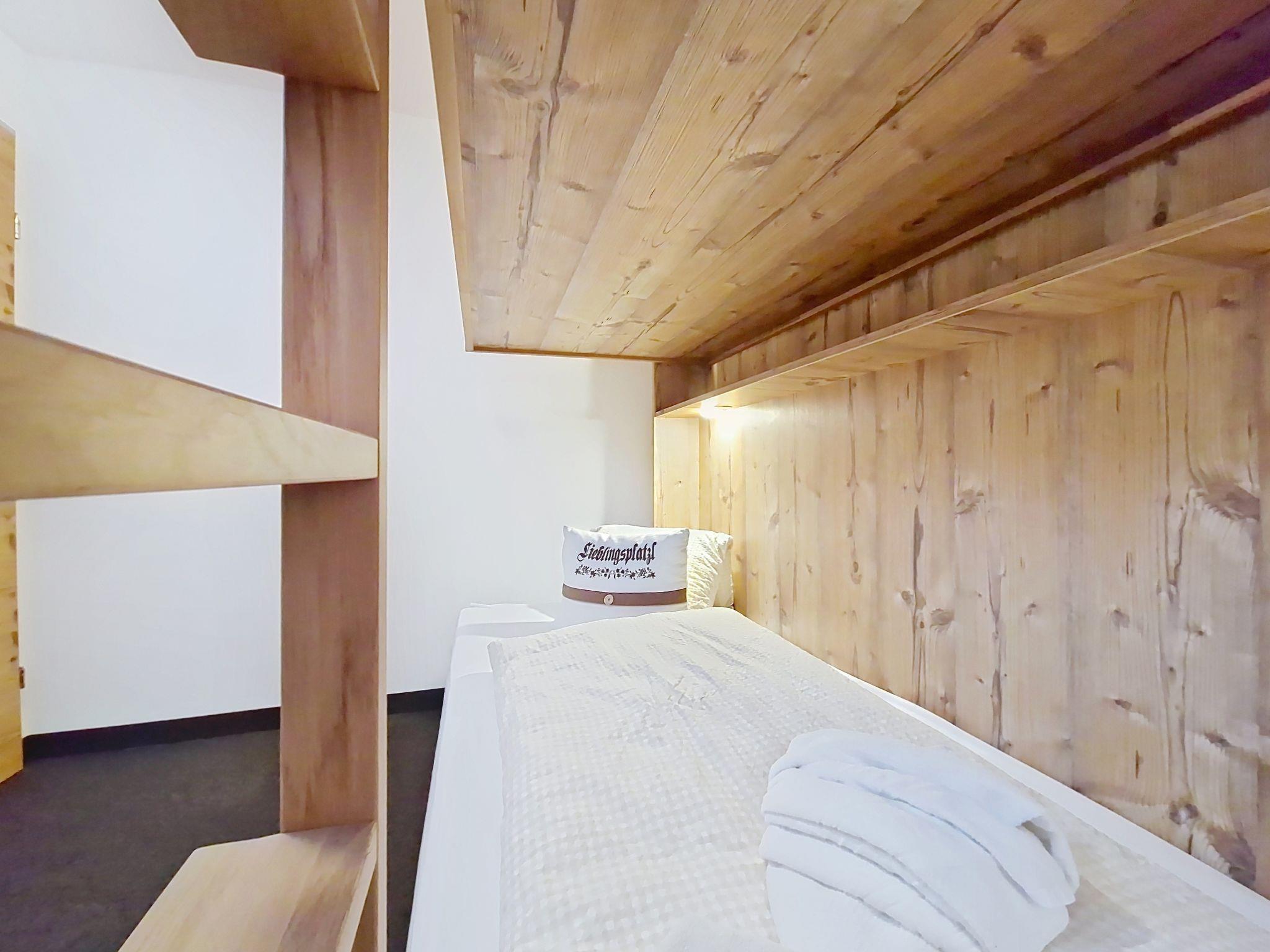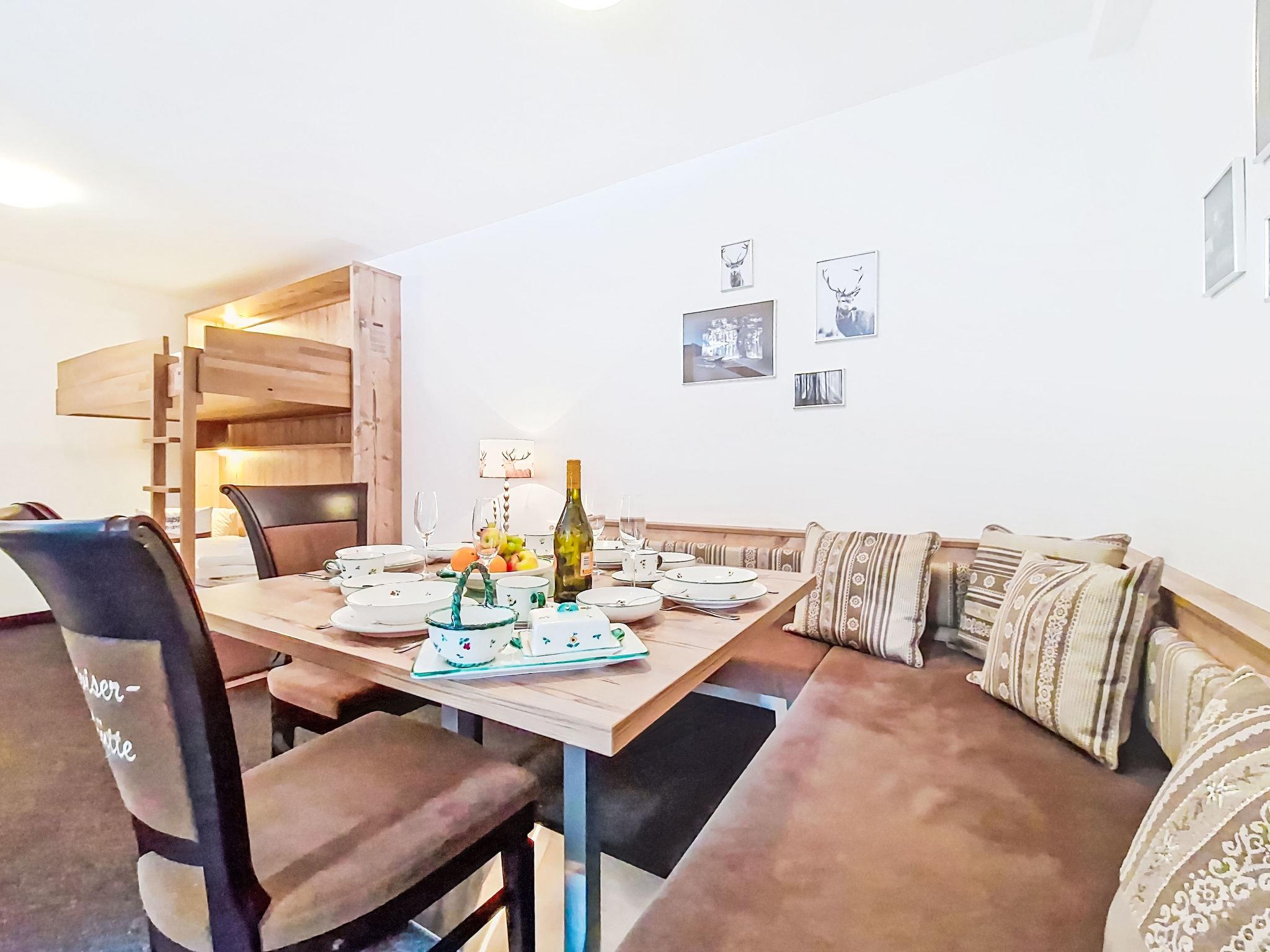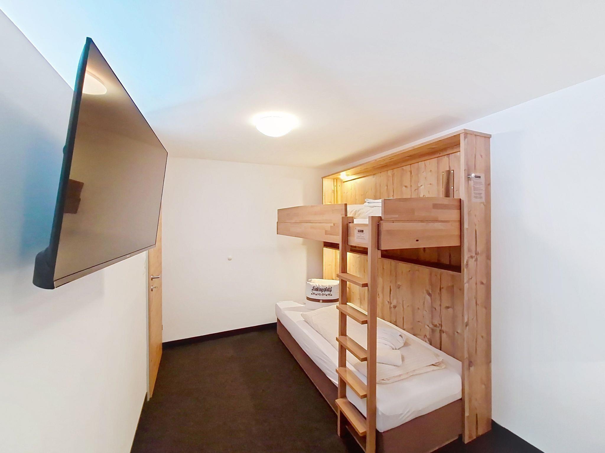 "Kreuzjoch", 2-Zimmer-Wohnung 50 m2 im 1. Stock. Geschmackvoll und gemütlich eingerichtet: 1 Doppelzimmer. Grosse Wohnküche (Geschirrspüler, 4 Glaskeramikplatten, Wasserkocher, Mikrowelle, elektrische Kaffeemaschine) mit Bar, 1 x 2 Etagenbetten (90 cm, Länge 200 cm), Essecke und TV (Flachbildschirm). Dusche/WC (privat). Holzheizung. Teppichboden. Sehr schöne Panoramasicht auf die Berge und das Tal. Zur Verfügung: Internet (WLAN, gratis). Bitte beachten: Kühlschrank ohne Gefrierfach, Nichtraucher-Unterkunft. Rauchmelder, Feuerlöscher. Dusche/WC sind ausserhalb der Wohnung-privat! Das Zusatzbett ist im Doppelzimmer über dem Doppelbett.