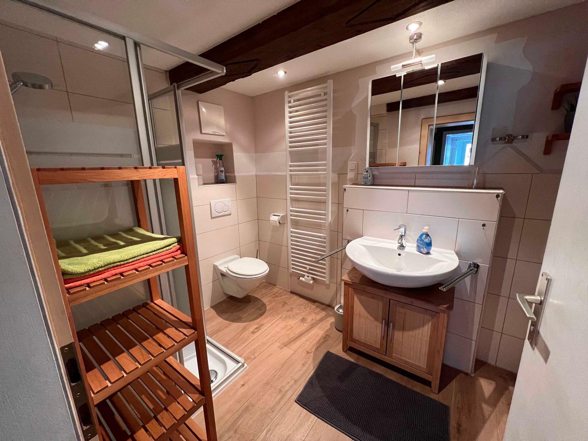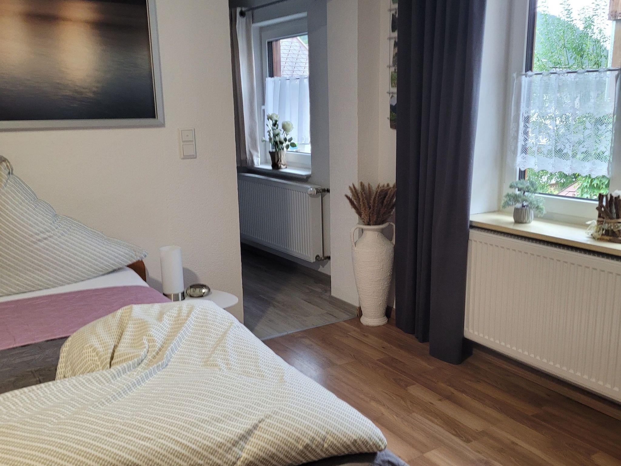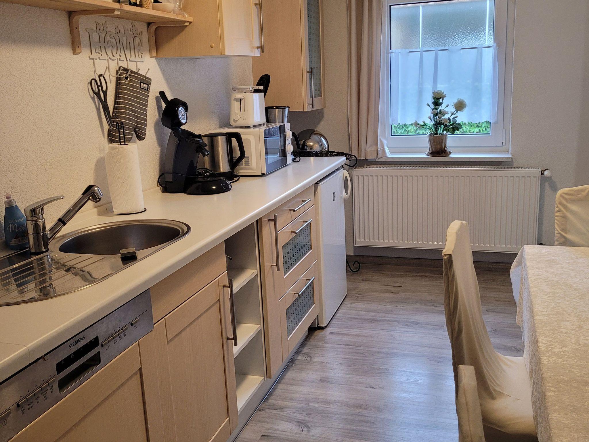 Diese ca. 110m² große Fewo im EG verfügt über einen eigenen Eingang, 2x Doppelzimmer und 1 Dreibettzimmer zzgl. Kinderbett, 1 x Bad mit WC/DU und Badewanne. Desweiteren verfügt diese Wohnung über eine große & gemütliche Küche sowie einem kleinen Wohn- und Fernsehzimmer.