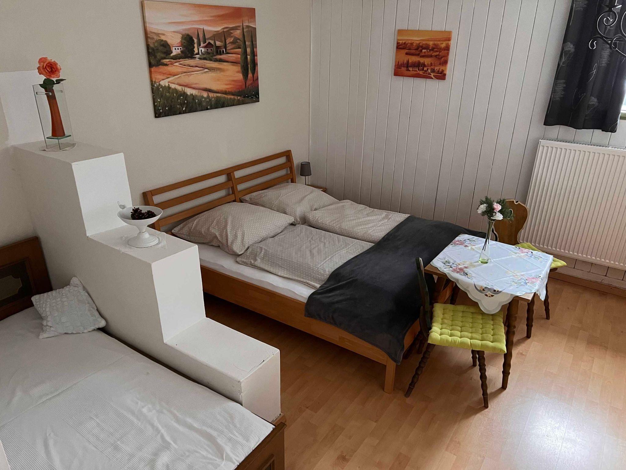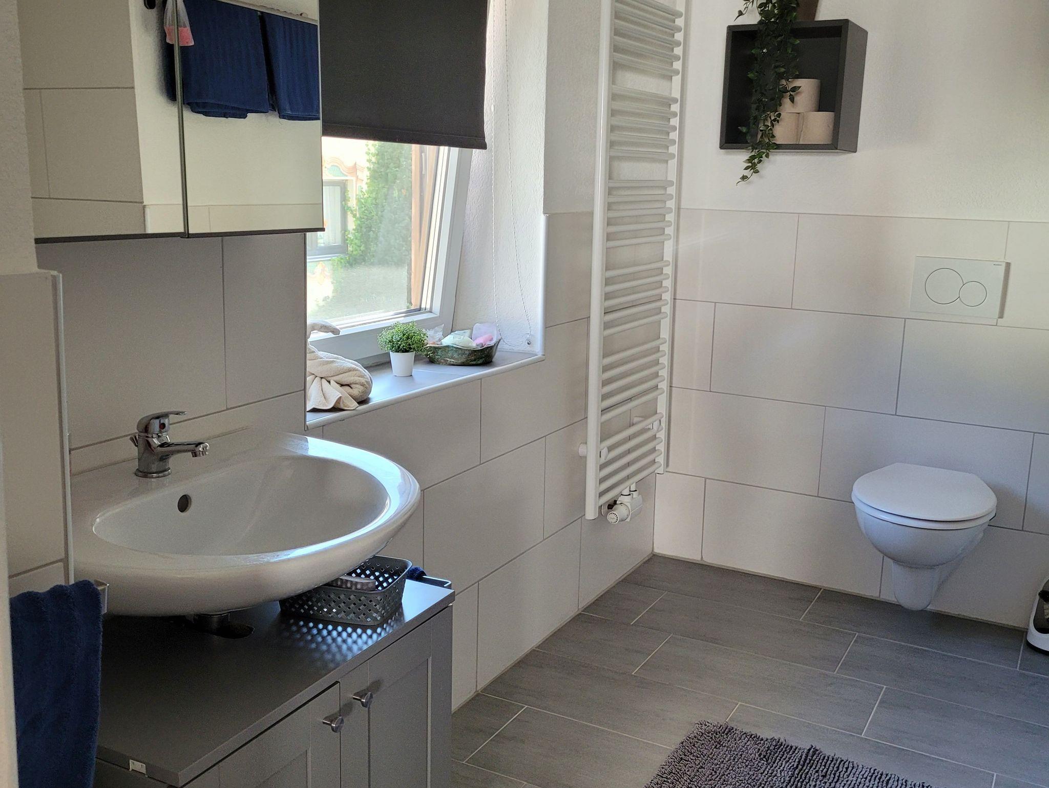 Diese ca. 110m² große Fewo im EG verfügt über einen eigenen Eingang, 2x Doppelzimmer und 1 Dreibettzimmer zzgl. Kinderbett, 1 x Bad mit WC/DU und Badewanne. Desweiteren verfügt diese Wohnung über eine große & gemütliche Küche sowie einem kleinen Wohn- und Fernsehzimmer.