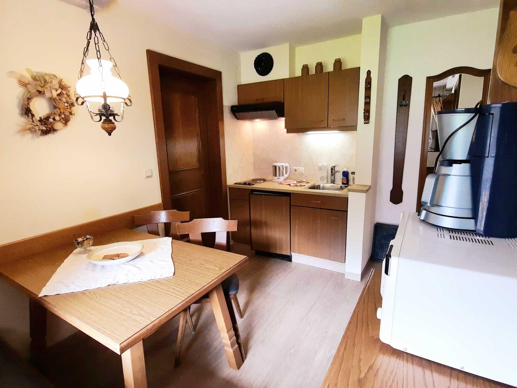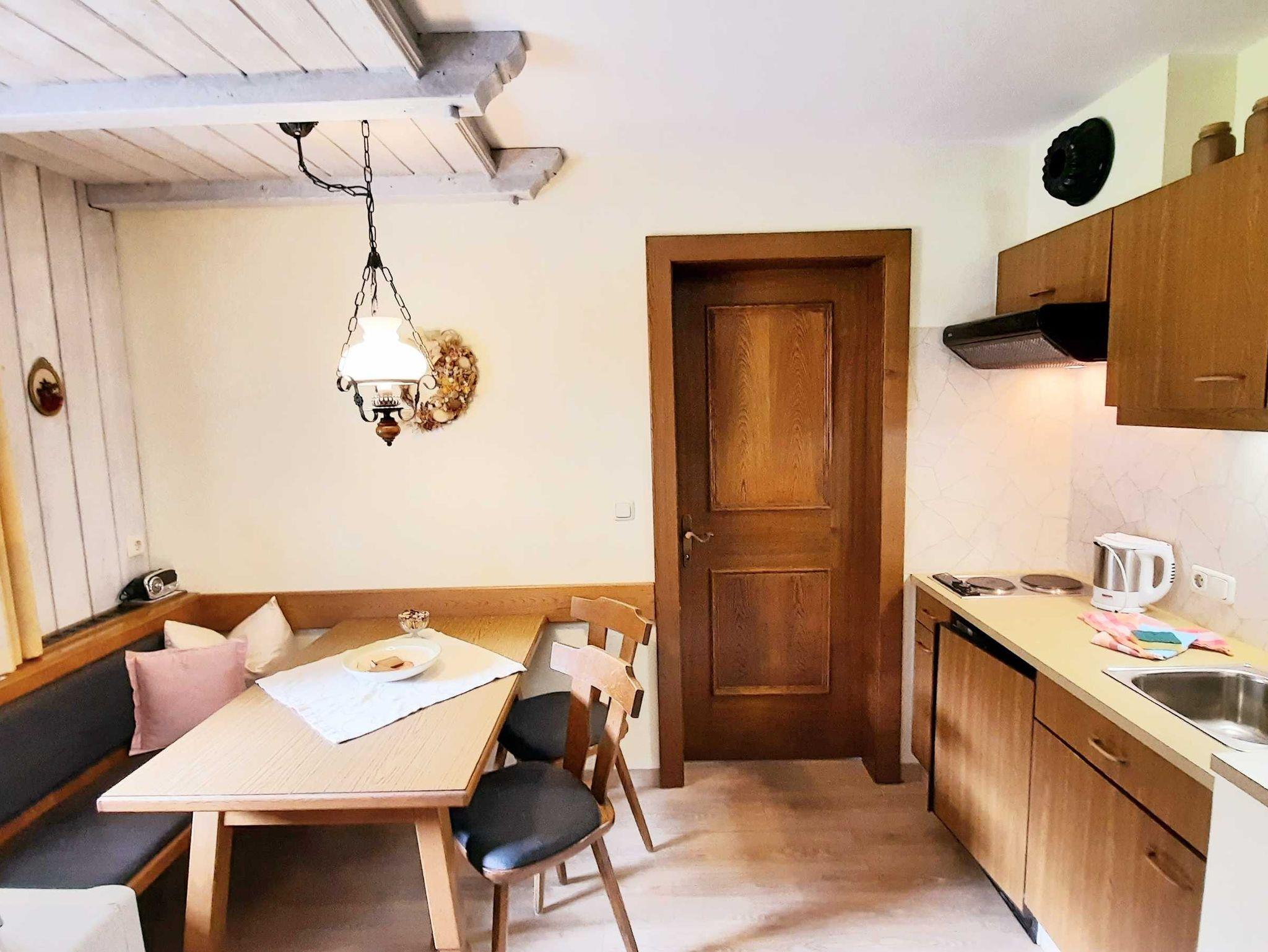 Ferienwohnung im ländlichen, tiroler Stil: bestehend aus einem Doppelbettzimmer, einem Schlafraum mit Stockbetten, Essecke mit integriertem Küchenblock, Kabel-TV 120 Programmen, Dusche/WC, Gangbereich mit Garderobe, Südbalkon, Zimmersafe , Telefon,W-LAN, Parkfläche am Haus ..