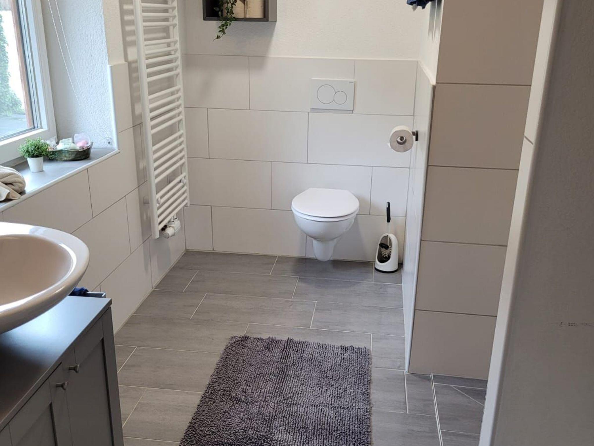 Diese ca. 110m² große Fewo im EG verfügt über einen eigenen Eingang, 2x Doppelzimmer und 1 Dreibettzimmer zzgl. Kinderbett, 1 x Bad mit WC/DU und Badewanne. Desweiteren verfügt diese Wohnung über eine große & gemütliche Küche sowie einem kleinen Wohn- und Fernsehzimmer.
