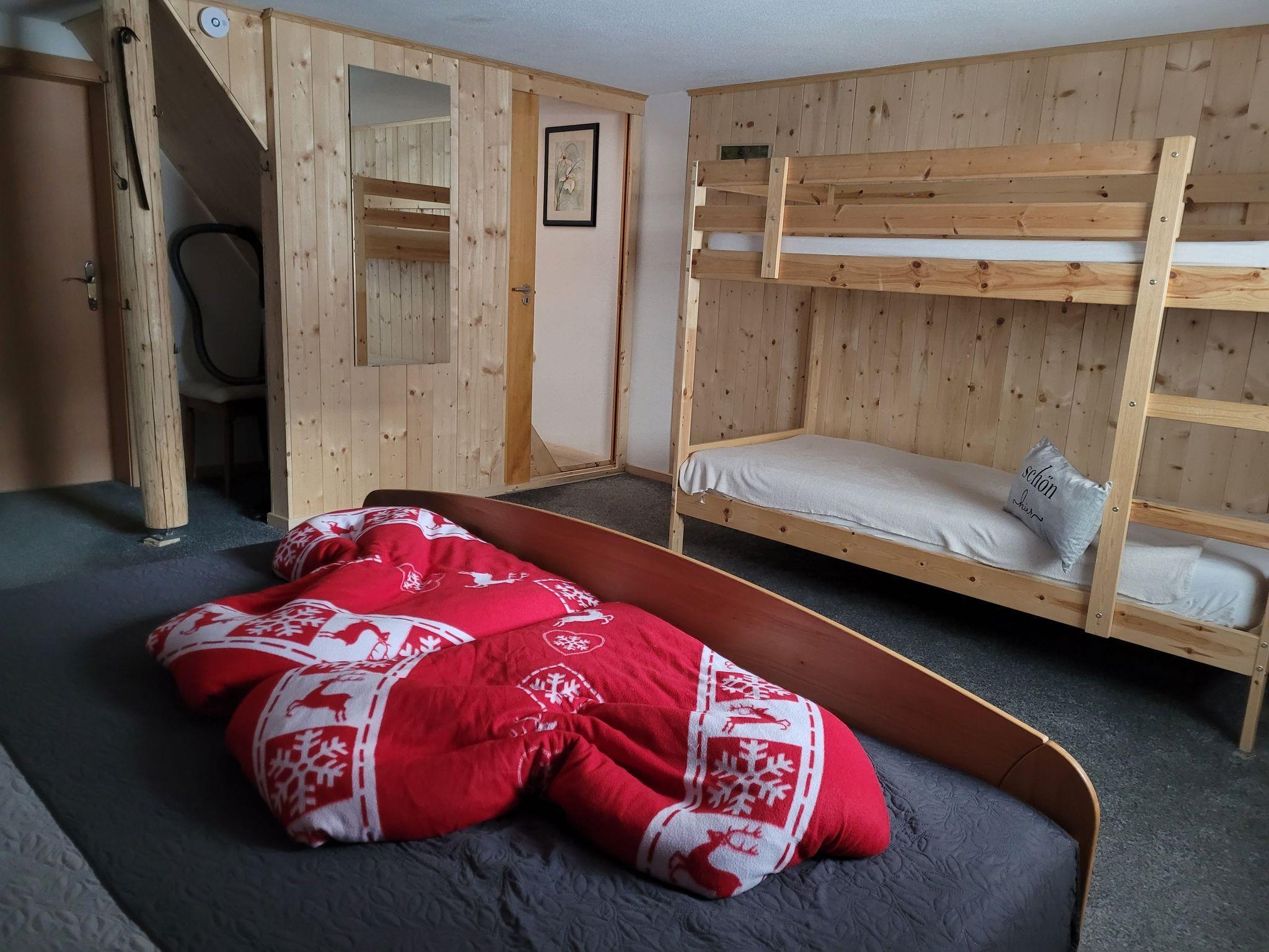 Dieses Appartement erstreckt sich über zwei Etagen und bietet Platz für 2 bis 5 Personen. Es verfügt über ein Schlafzimmer mit Doppelbett und Stockbett, welches über eine steile Treppe erreichbar ist. Zudem befinden sich ein Badezimmer, Wohnzimmer mit Schlafcouch und eine Küche in der Ferienwohnung. Besonders geschätzt wird der Balkon mit herrlichem Bergblick.