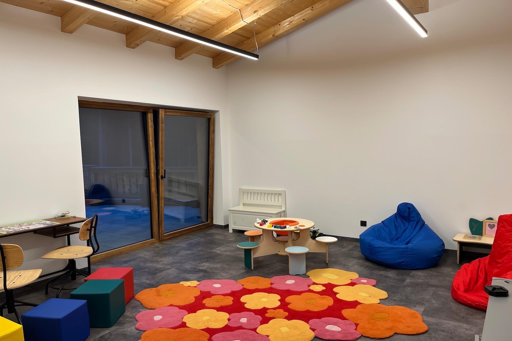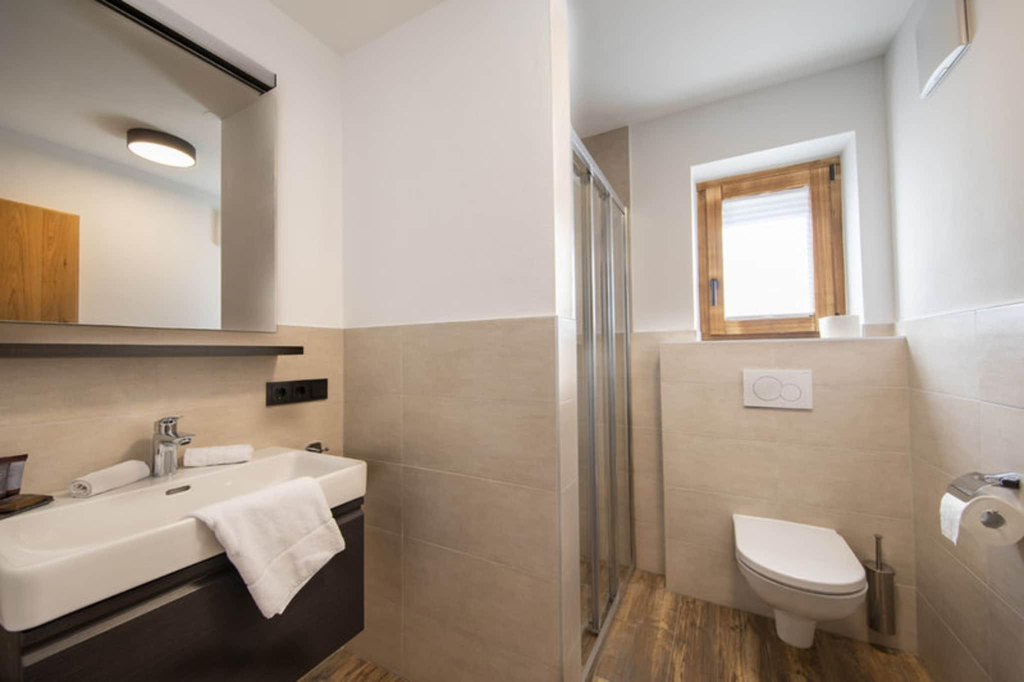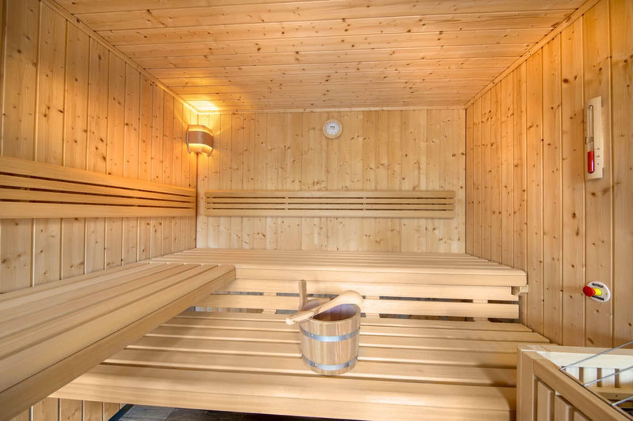 Parterre: (offene Küche(Wasserkocher, Kochherd, Kaffeemaschine(Filter), Backofen), Wohn/Esszimmer(Doppelschlafcouch, TV, Esstisch, Kaminofen), Schlafzimmer(Doppelbett, TV(Flatscreen)), Schlafzimmer(Doppelbett, TV(Flatscreen)), Schlafzimmer mit Badezimmer(Doppelbett, Dusche, Waschbecken, Toilette), Schlafzimmer mit Badezimmer(Doppelbett, Dusche, Waschbecken, Toilette), Badezimmer(Toilette), Badezimmer(Dusche, Waschbecken, Toilette), Abstellraum) Spielzimmer(Gemeinschaftliche Nutzung mit anderen Gästen), Fitnessraum(Gemeinschaftliche Nutzung mit anderen Gästen), Freizeitraum, Skikeller(Gemeinschaftliche Nutzung mit anderen Gästen), Garage, Carport, streamingservice, Mikrowelle, Spülmaschine, Badewanne oder Dusche, Sauna(alleinige Nutzung), Waschmaschine, Skischuhheizung, Balkon oder Terrasse, Heizung, Terrasse, Garten, Fahrradabstellraum, Gartenmöbel, Liegen, Grill, Parkplatz, Liegestühle, Pool(Gemeinschaftliche Nutzung mit anderen Gästen), Fitnessgeräte(Gemeinschaftliche Nutzung mit anderen Gästen), Fahrräder verfügbar, Kinderbett, Bügelbrett, Gesellschaftsspiele