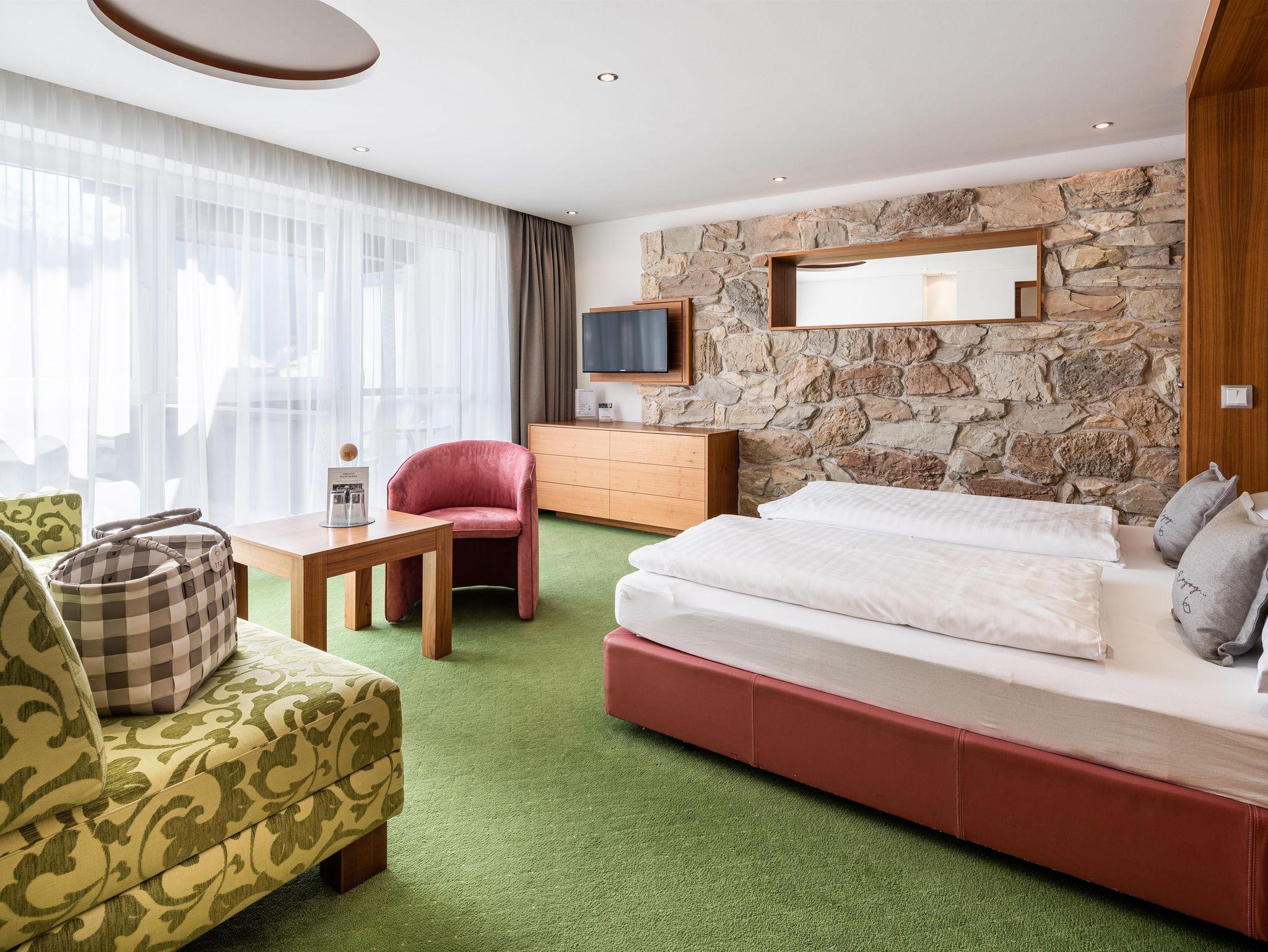 1200 m² Crystal-Spa mit Farblichthallenbad, Natur-Außenpool, 7 Saunen, Ruheraum Bergblick, Infratot-Wärmeliegen, Familien-Ruheraum mit Wasserbetten, Familien-Dress-on-Sauna, Massage,.. das Wohnzimmer im Wintergarten für gemütliche Stunden, Hotelbar mit Loungebereich, großer Speisesaal, Gaststube, Parkplätze mit Aufladestation für E-Autos (kostenpflichtig), Gemütliche Zimmer: Doppelzimmer, Wohlfühlzimmer, Studios und Suiten! Highlight: Das Baumhaus – dein Urlaubsnest im Forest 147m²