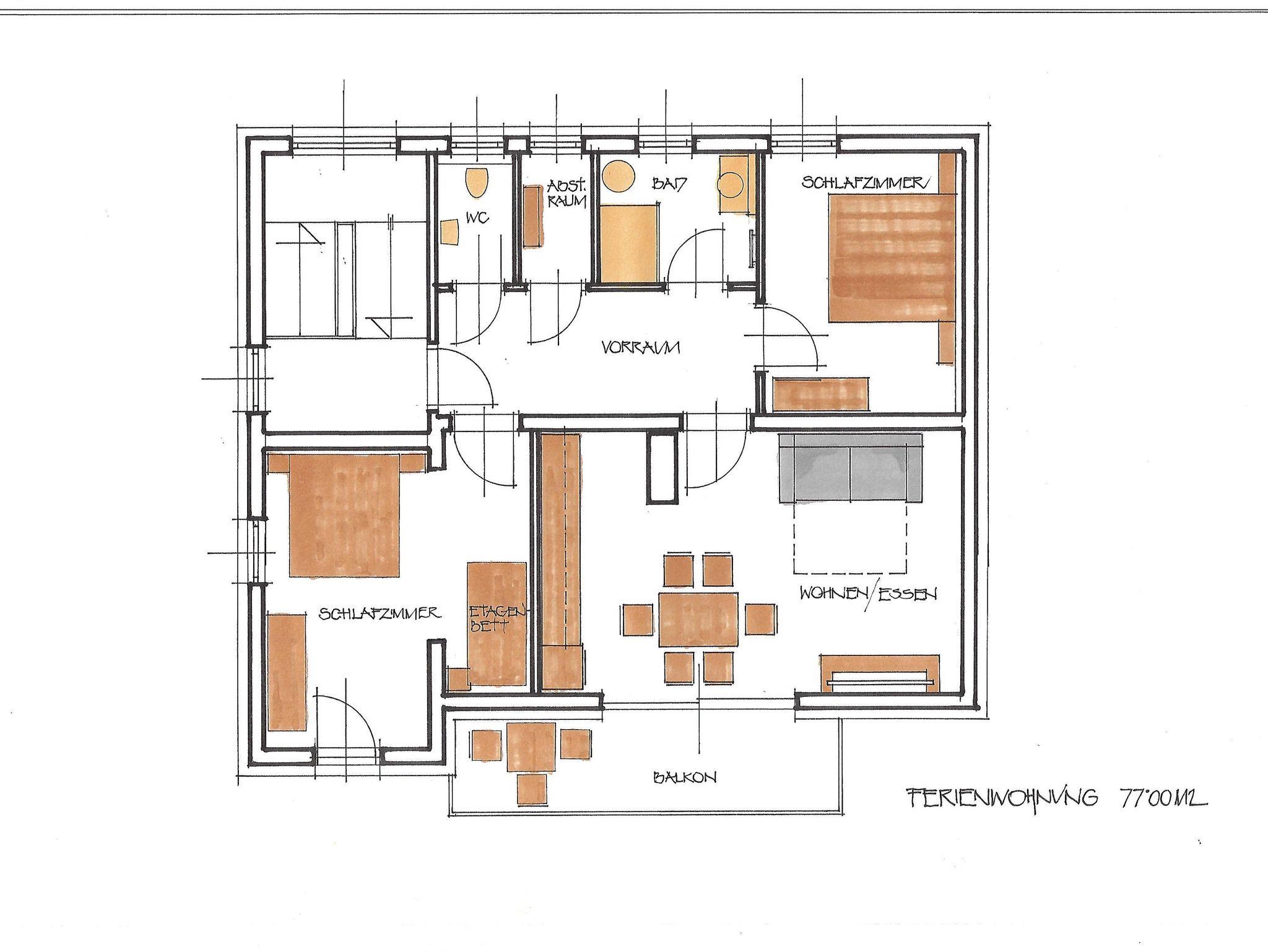 Das Haus verfügt über mehrere Ferienwohnungen. Ihre Ferienwohnung liegt im zweiten Stock und verfügt über einen sehr großen Südbalkon, der zum Entspannen in der Sonne einlädt. Bei der liebevollen Einrichtung der großzügigen Wohnung wurde Wert auf Sorgfalt und Gemütlichkeit gelegt. Sie verfügen über zwei Schlafzimmer, ein Badezimmer und ein separates WC. Das große Wohn-/Esszimmer bietet viel Platz und die offene Küche ist mit allen gängigen Haushaltsgeräten ausgestattet -> Kühlschrank, Backofen, Geschirrspülmaschine, Mikrowelle, Toaster, Mixer. Eine Cafissimo Kapselmaschine steht Ihnen zur Verfügung.