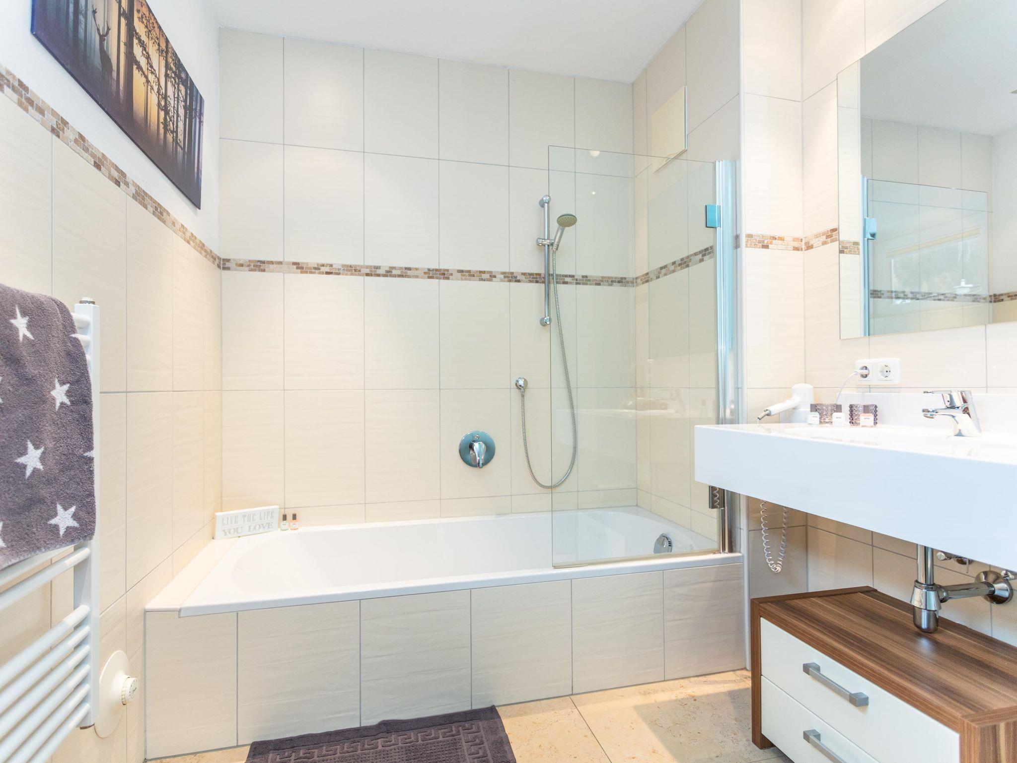Dieses gut 68 m² Appartement befindet sich im 1. Stock des Hauses und ist gemütlich vom Garageneingang mit dem Aufzug zu erreichen. Die Räumlichkeiten sind großzügig gestaltet und beinhalten 1 großen Wohn- und Aufenthaltsbereich samt Kabel-TV u. Essecke, eine Küche, eine Garderobe im Eingangsbereiche, ein getrenntes WC, 2 Schlafzimmer mit je einem Doppelbett und 2 getrennte Badezimmer (Badewanne/Dusche). Weiters laden 2 gemütliche Balkone zum Entspannen ein.