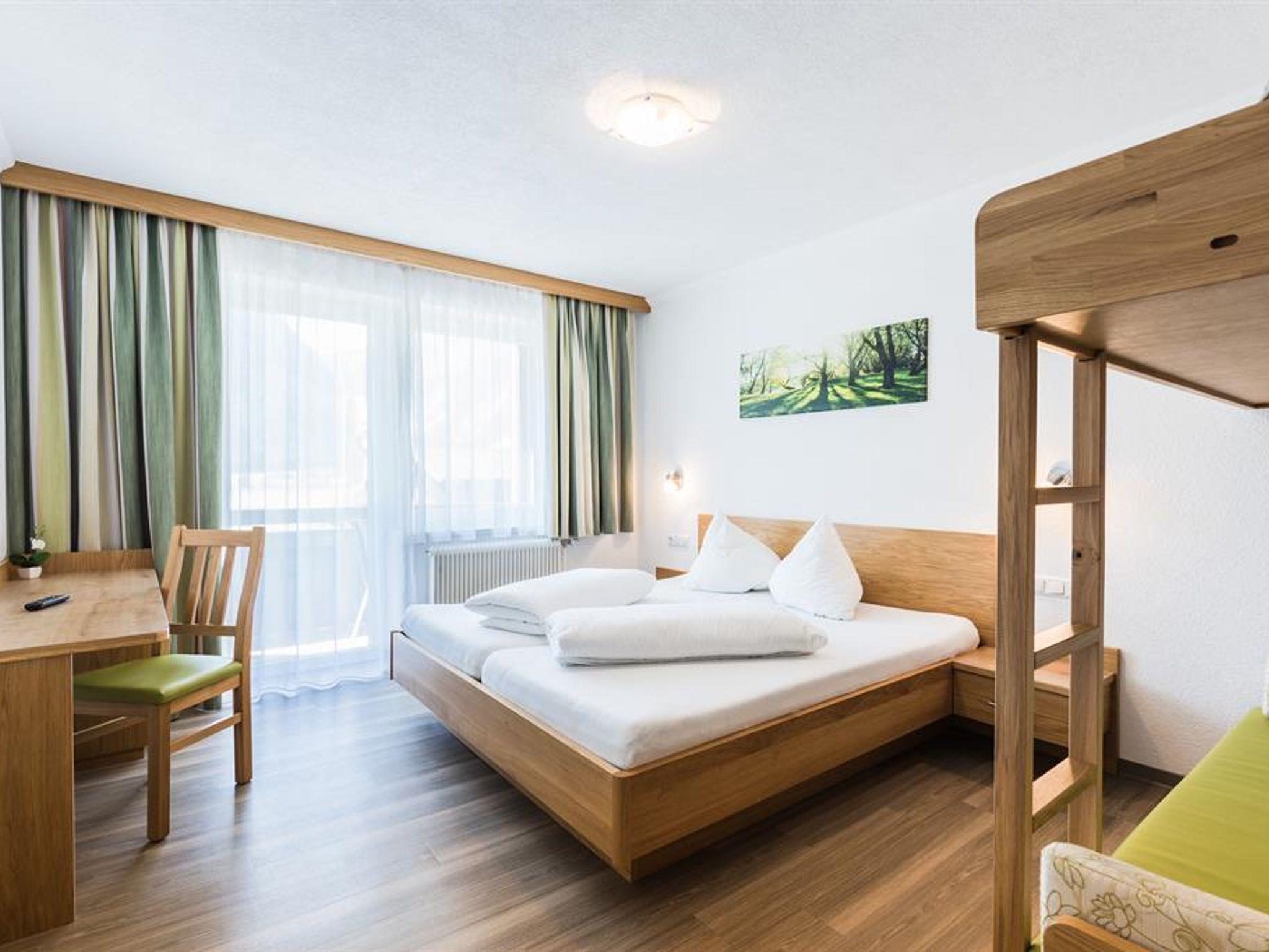Unsere Dreibettzimmer sind mit einem Doppelbett und einem hochwertigen Zusatzbett ausgestattet. Ein Flat-Screen-TV, großen Ankleidespiegel und ein Schreibtisch befindet sich auch im Zimmer. Das Badezimmer verfügt über Dusche, WC, Haarföhn und Handtuchtrockner. Freies W-lan im Zimmer. Vom Balkon aus, können Sie einen herrlichen Blick in unsere schöne Bergwelt geniessen.