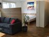 Neue, ebenerdig gelegene, geräumige, helle lichtdurchflutete Loftwohnung mit 52m². Durch einen Vorraums betreten Sie den hellen 42 m² großen Raum. Hinter dem geräumigen Schiebetürschrank befindet sich das bequeme Vollholz-Doppelbett (180/200cm). Links von Ihnen befindet sich eine wunderschöne Küchenzeile (weiß/matt). Inklusive Geschirrspüler. Zwei Kommoden sind im Raumteiler inkludiert. Dahinter befindet sich eine gemütliche, ausziehbare Couch (KabelTV, WLAN). Eine Sitzgruppe (für 4 Pers.) bildet den Abschluß des Raumes. Dusche und WC sind räumlich getrennt.