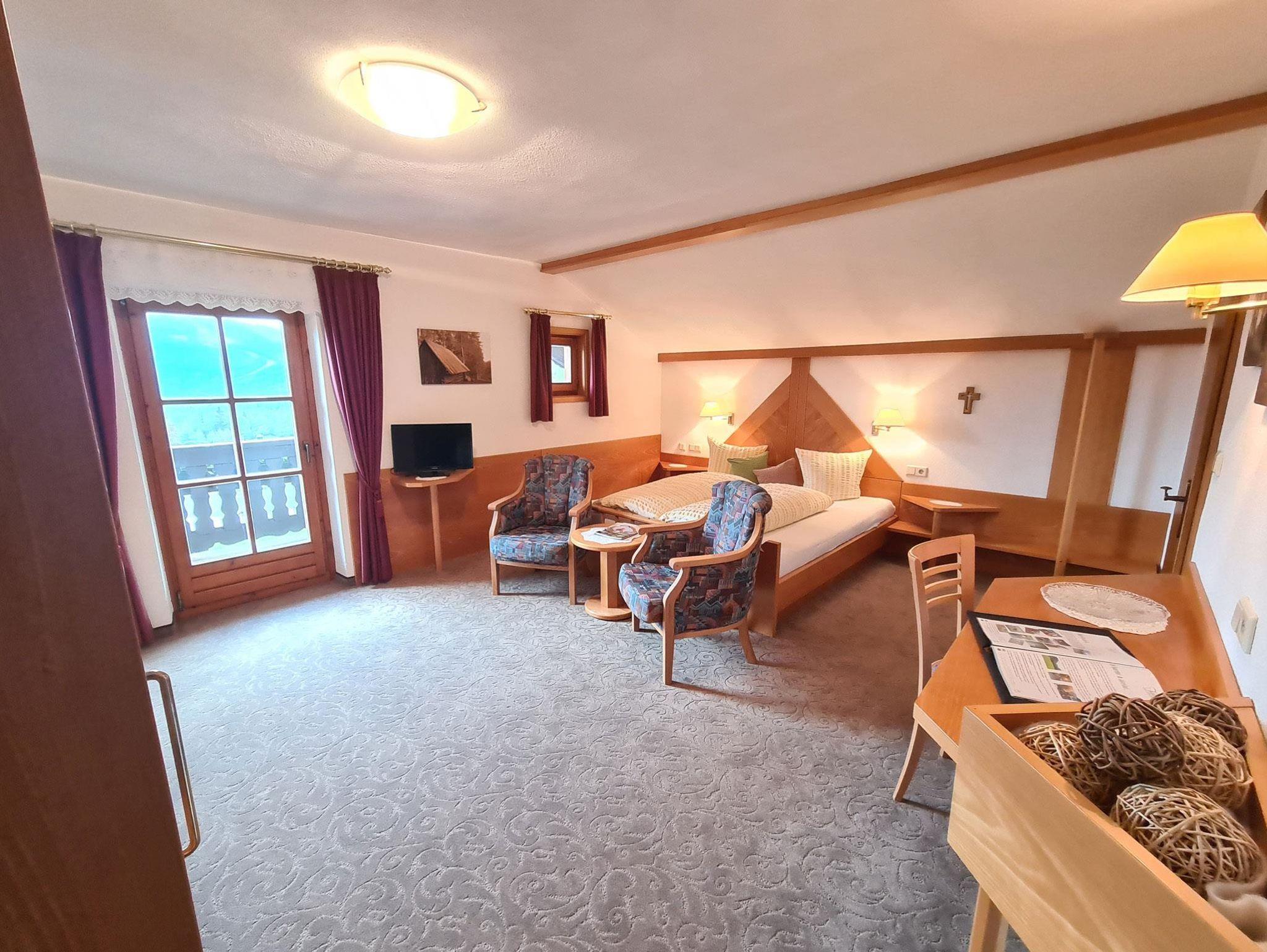 Doppelzimmer mit Südbalkon Pirchkogl geräumiges Zimmer inklusive Frühstücksbuffet, Dusche, WC, Durchwahltelefon, Sat-TV, Zimmersafe, W-LAN