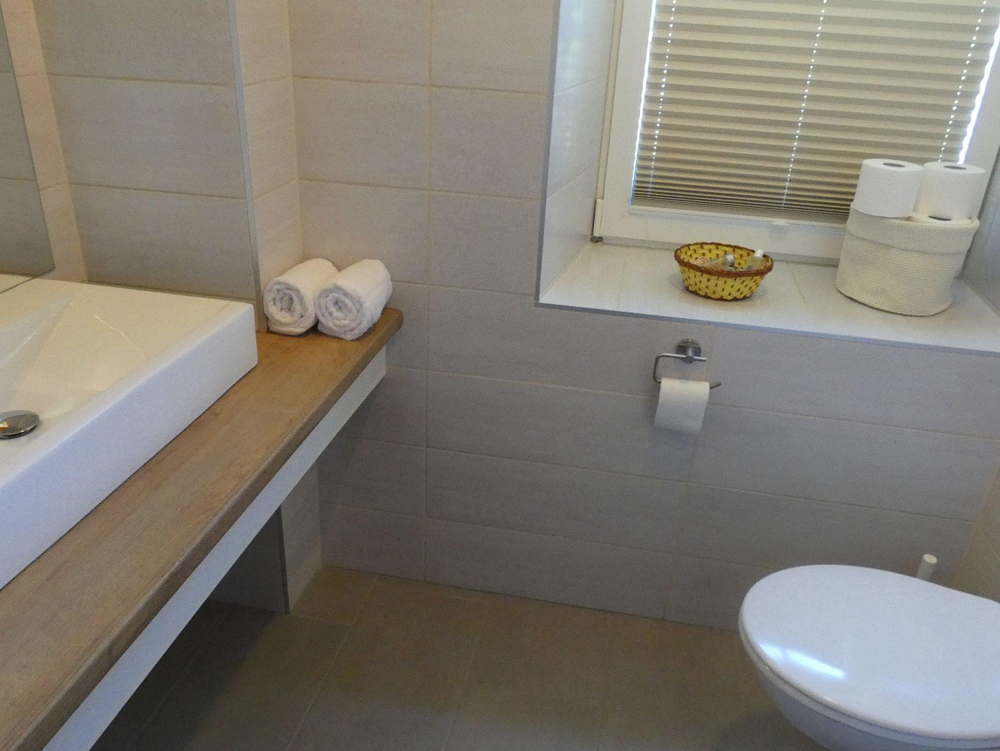 Das Appartement Nr. 2 befindet sich im Erdgeschoß des Hauses. Es verfügt auf einer Größe von etwa 50 qm über 2 gemütliche Schlafzimmer. Eines der beiden Schlafzimmer ist mit einem Doppelbett ausgestattet, das zweite Schlafzimmer mit getrennt stehenden Betten. Die Schlafzimmer sind nacheinander angeordnet, das heißt Durchgang in das erste Schlafzimmer zur Wohnküche. Die großzügige Wohnküche verfügt über Kühlschrank, Backofen, Kochfeld, Kaffeemaschine sowie einen Geschirrspüler. In der komfortablen Sitzecke können Sie entspannt zu Abend essen und den Tag bei einem Glas Wein ausklingen lassen. Im modernen Badezimmer mit Tageslicht befinden sich Dusche und WC getrennt.