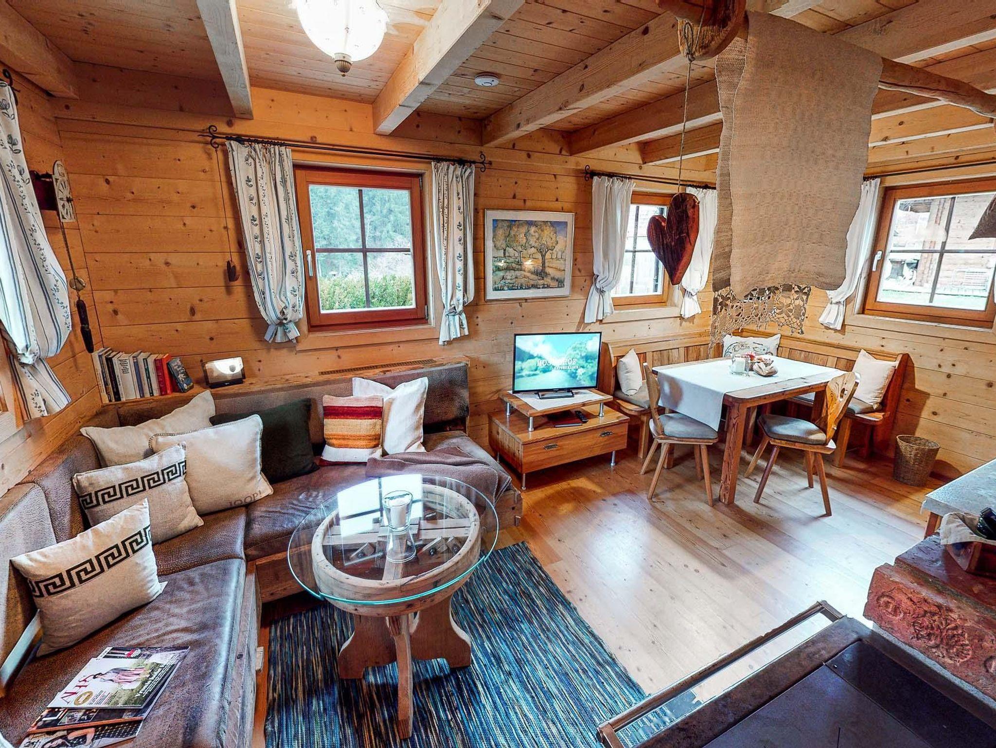 Großzügige Biovollholz-Chalet mit Terrasse und Garten. 120 m², komfortabel & liebevoll eingerichtet. Bieten Platz für bis zu 8 Personen. Im Erdgeschoss befinden sich eine große gemütliche Wohnküche, ein uriges Doppelbettzimmer mit Zirbenbett, Bad mit Wanne und Dusche sowie ein separates WC. Im Dachgeschoss gibt es 2 Doppelbettzimmer mit Balkon, ein Bad mit Dusche. Zustellung von zwei Kinderbetten möglich.
