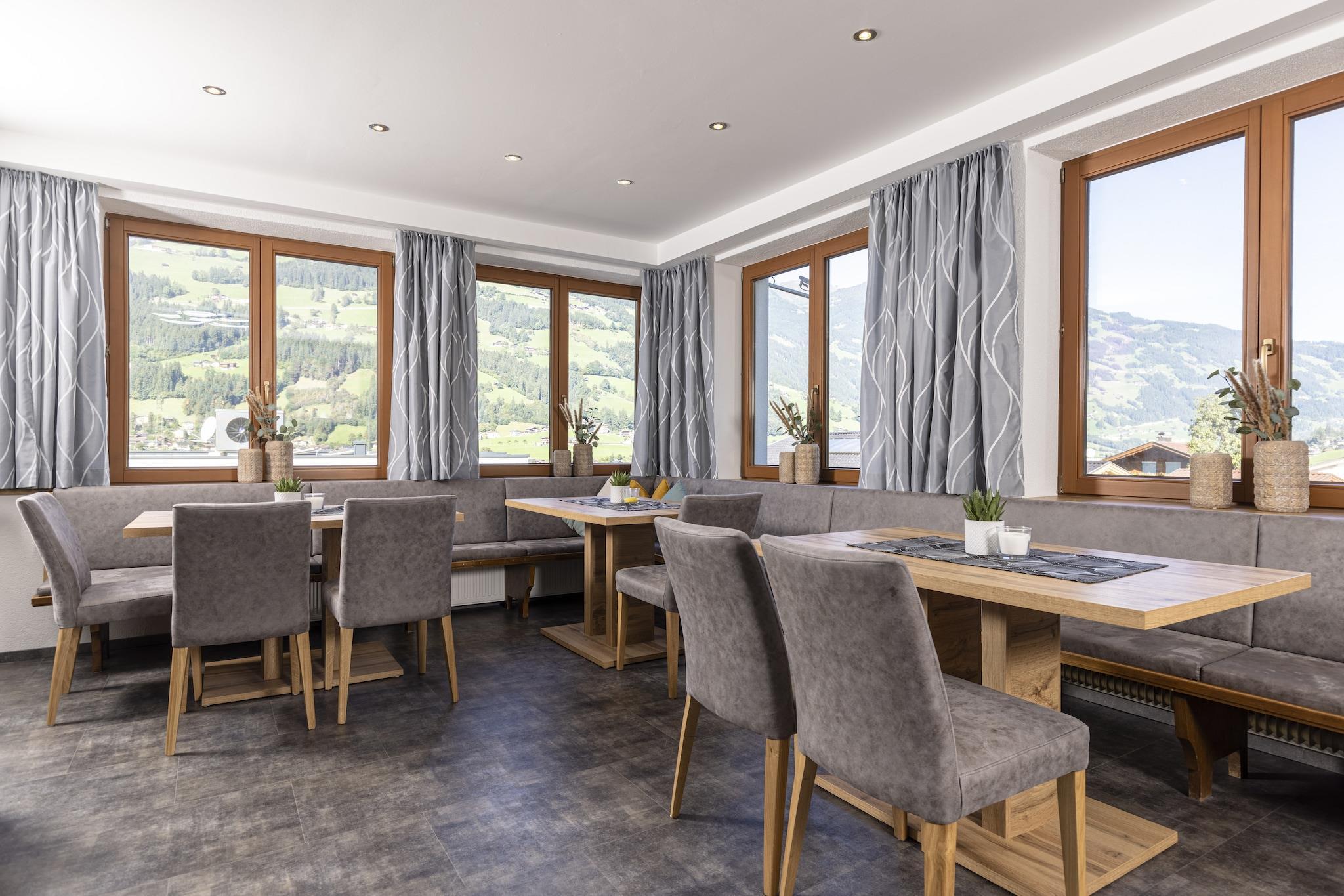 Ferienhaus für 18 Personen in Ramsau im Zillertal Winter: Bushaltestelle ist 150m entfernt und fährt in Zillertalarena! Das Ferienhaus MOIKLERHOF liegt in sonniger Aussichtslage in Ramsau i. Z.im Ortsteil Bichl, 3,5 km von der Ortsmitte Mayrhofen und 1,5km von der Ortsmitte Ramsau entfernt. Restaurants und Einkaufsmöglichkeit gibt es im Ortskern von Ramsau. Die Entfernungen zu sämtlichen öffentlichen Einrichtungen betragen zur Bergbahn Penken 4,5km, Bergbahn Horberg 1,5km, Supermarkt 1km. Restaurants ca. 200 m. Im Sommer ist der Eintritt in das Frei-Schwimmbad in Hippach und Mayrhofen inklusive. 5000 m² Grundstück mit Gartenmöbeln und Kinderspielgeräten stehen ihnen zur Verfügung. Ein großer Aufenthaltsraum mit einer neuen modernen Küche sowie eine Spielecke und Spielesammlungen sind ebenfalls vorhanden. Das Haus besitzt 2 Balkone. Der Parkplatz auf dem Grundstück ist kostenlos. Der Bauernhof wird landwirtschaftlich geführt (Milchwirtschaft/Federvieh) und ist ca. 50 m. vom Ferienhaus entfernt. Erzeugnisse können ab Hof gekauft werden. Das Haus wurde im Frühjahr 2021 komplett renoviert. Es stehen Ihnen in der ersten Etage fünf Zimmer sowie in der zweiten Etage drei Zimmer, jedes davon mit Dusche und WC, SAT TV, gratis WLAN und Balkon zur Verfügung. Ebenfalls steht für Sie im neuen Wellnesszimmer eine Infrarotkabine für 2 Personen bereit. Im Haus wohnen der Besitzer mit seiner Familie im 1. OG (selbiges Stiegenhaus) und die Eltern des Besitzers im Erdgeschoss. Innenbereich 9-Zimmer-Hausteil aufgeteilt auf 3 Etagen mit ca. 350 m². Erdgeschoss: Separater Eingang in Flur. Großer Aufenthaltsraum (ca. 90 m²) mit Essplätzen (Eckbänke, Stühle), gemütlicher Couch, SAT TV und Kinderspielecke, durch Kochinsel abgeteilte Küche (4 Ceranfelder, 2 Backöfen, Mikrowelle, Geschirrspüler, 2 Kühl-/Gefrierkombinationen, große Filter Kaffeemaschine, Wasserkocher, Toaster, Aufschnittmaschine, von hier Zugang zu Vorratsraum. 2x WC/Waschbecken. 1. Etage: 2 Doppelzimmer, jeweils mit Dusche/WC. 2 Schlafzimmer, jeweils mit Doppelbett, Einzelbett und Dusche/WC. Einzelzimmer mit Dusche/WC. 2. Etage (teilweise leichte Dachschräge): 2 Doppelzimmer, jeweils mit Dusche/WC. Schlafzimmer mit Doppelbett, Einzelbett und Dusche/WC. Alle Zimmer sind mit SAT TV, gratis WLAN und Föhns ausgestattet. Balkonzugang von allen Schlafzimmern aus.