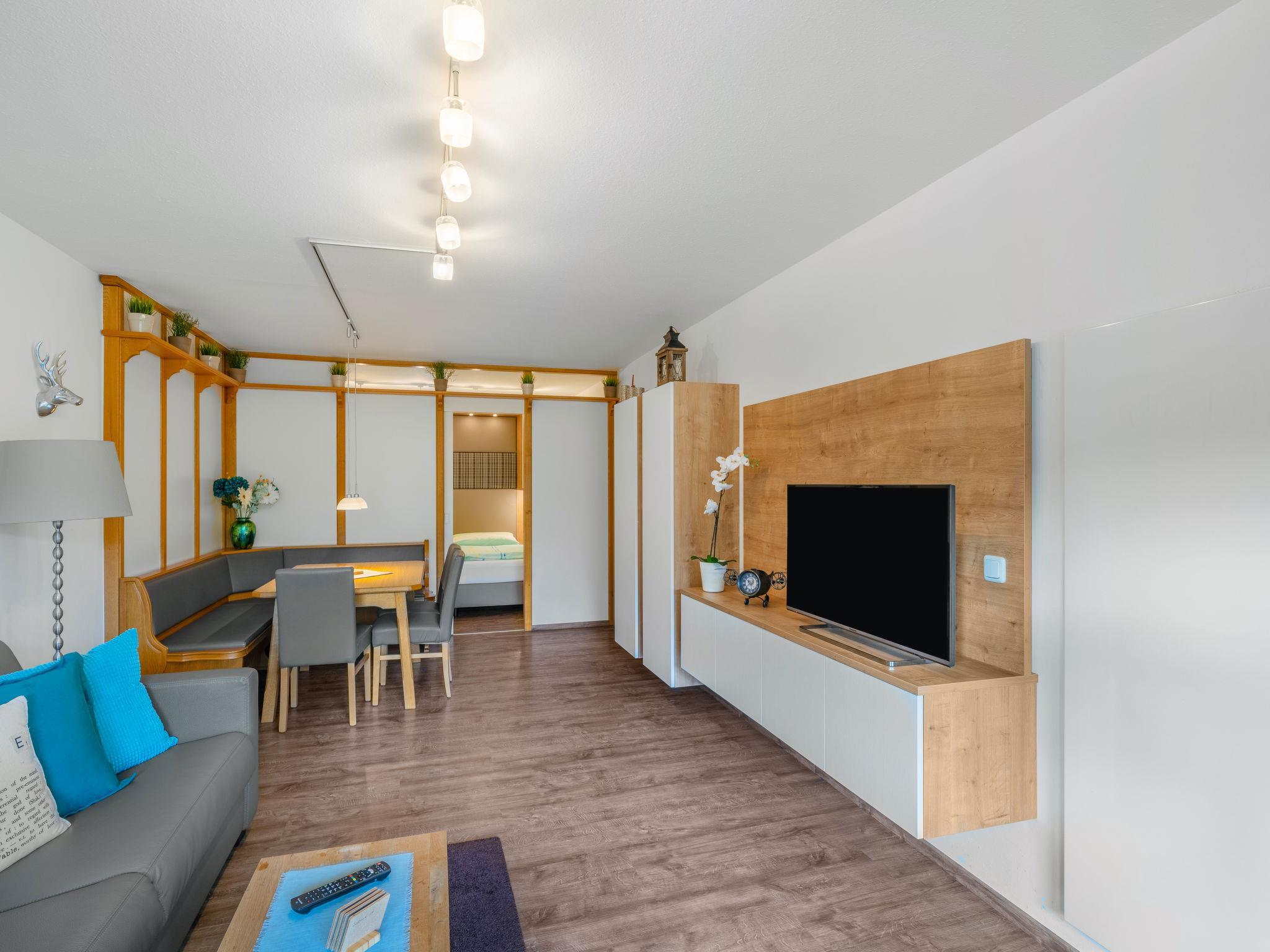 " Top 18", 2-Zimmer-Wohnung 55 m2 im 2. Stock. Teilweise renoviert im Jahre 2017, komfortabel und modern eingerichtet: Eingang. Wohn-/Schlafzimmer mit 1 Doppeldiwanbett (160 cm), Essecke und Kabel-TV (Flachbildschirm). Ausgang zum Balkon. 1 Doppelzimmer. Offene Küche im Eingang (4 Glaskeramikplatten, Mikrowelle, Tiefkühler, elektrische Kaffeemaschine). Bad/WC. Balkon 6 m2. Balkonmöbel. Schöne Sicht auf die Landschaft. Zur Verfügung: Internet (Wireless LAN, gratis). Bitte beachten: Nichtraucher-Unterkunft. Entgegen der Angaben von Interhome muß die Wohnung am Abreisetag bis spätestens 09:00 a.m. verlassen sein. 50619-006036-2021