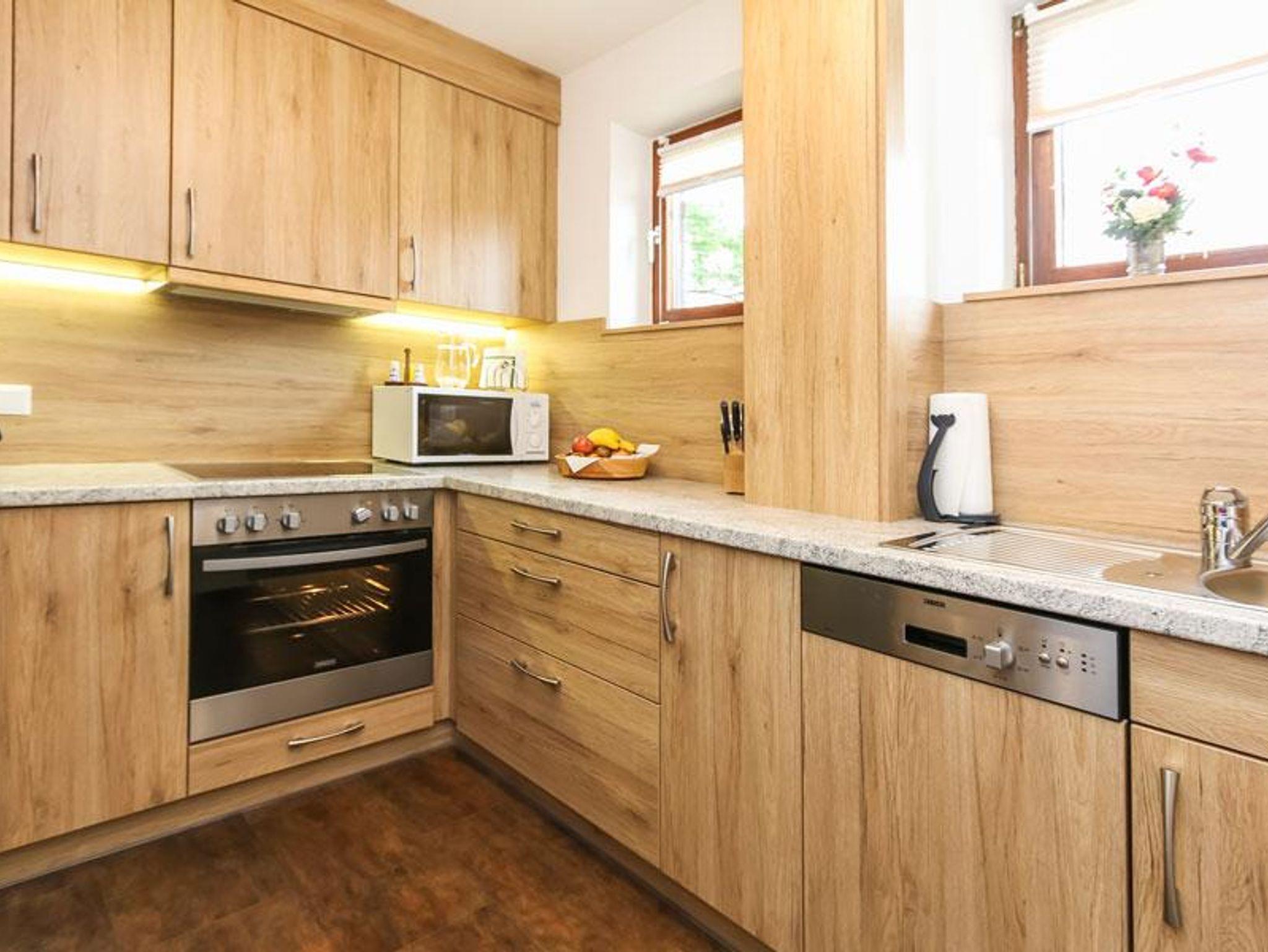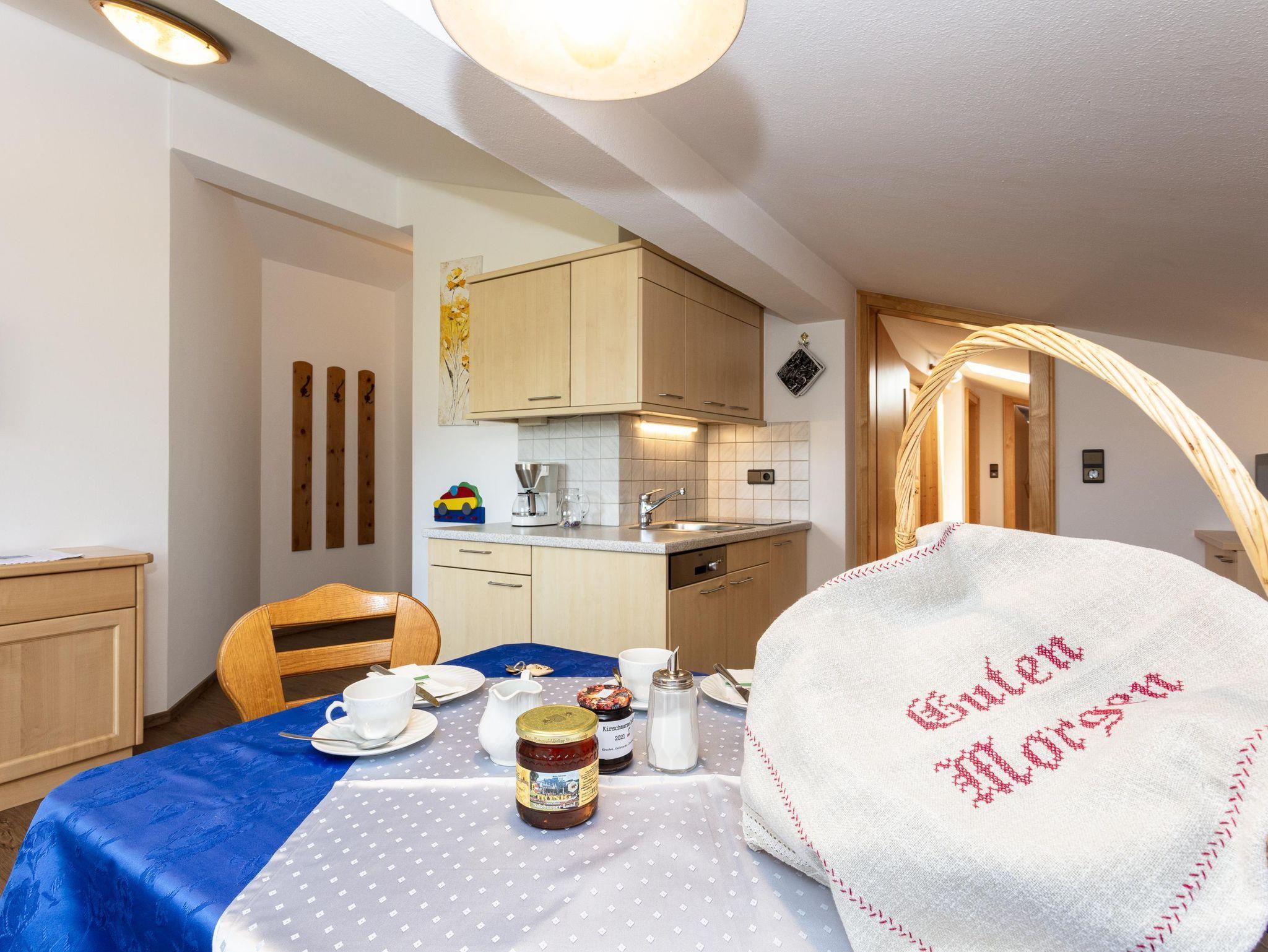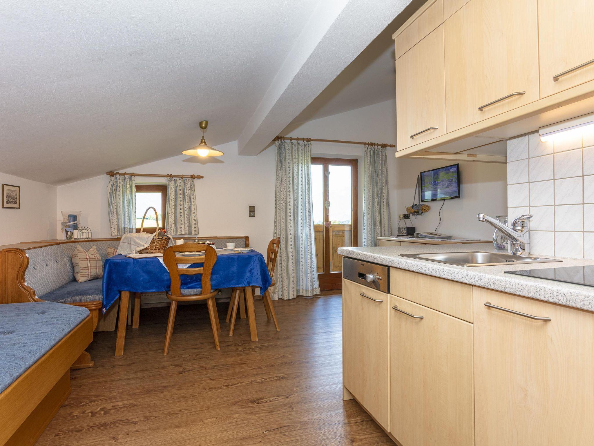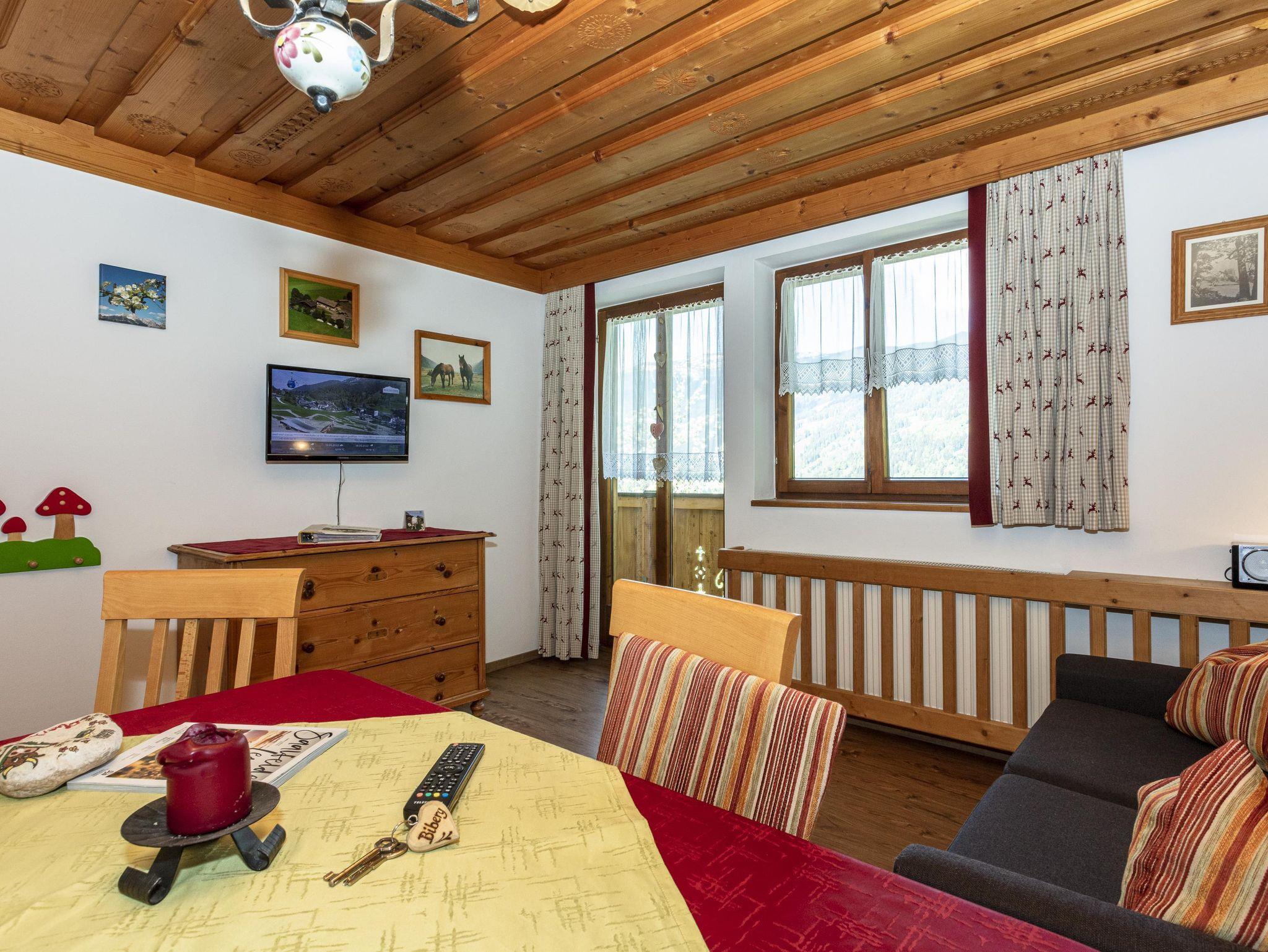 4 - 5 Personen (50 m2): Elternschlafzimmer mit Doppelbett (Zirbenholzzimmer), Kinderzimmer mit 2 Einzelbetten ( Fußende bei allen Betten offen ), Dusche/WC, grosse Wohnküche mit Schlafcouch (5. Person), Eckbank mit grossem Tisch, Küchenblock mit 2 Kochplatten, Mikrowelle mit Backrohrfunktion, Kaffeemaschine, Kühlschrank, Wasserkocher, Geschirrspülmaschine in der Küche, Kabel-TV, Radio, abgeschlossenen Balkon im Dachgeschoß.