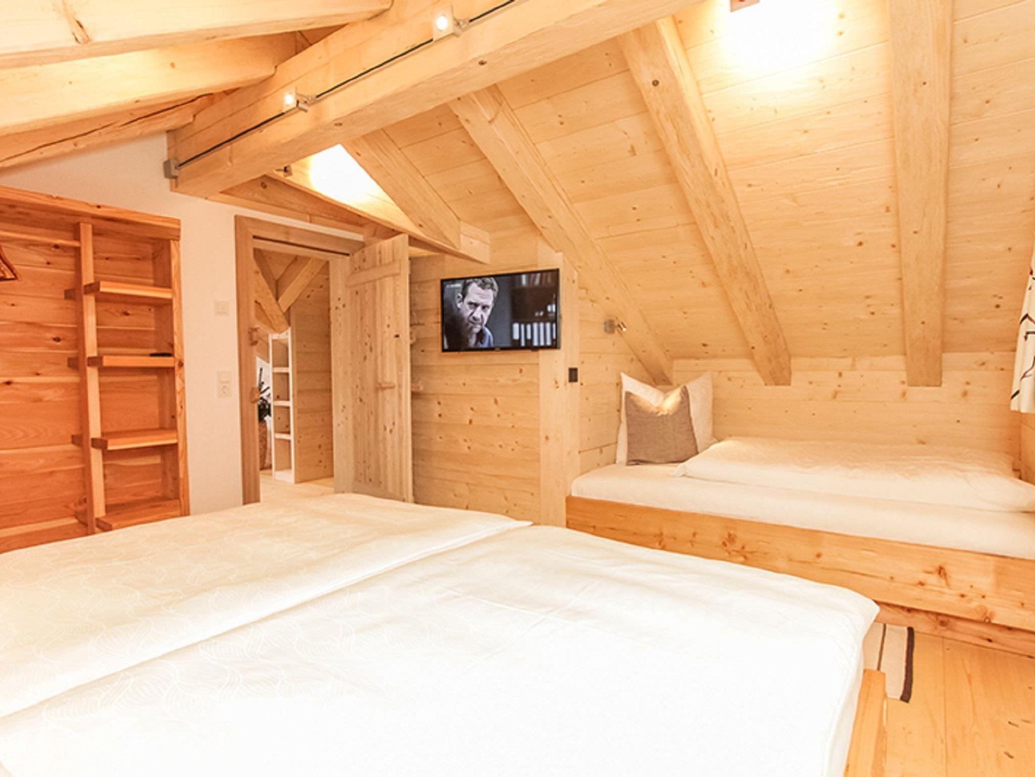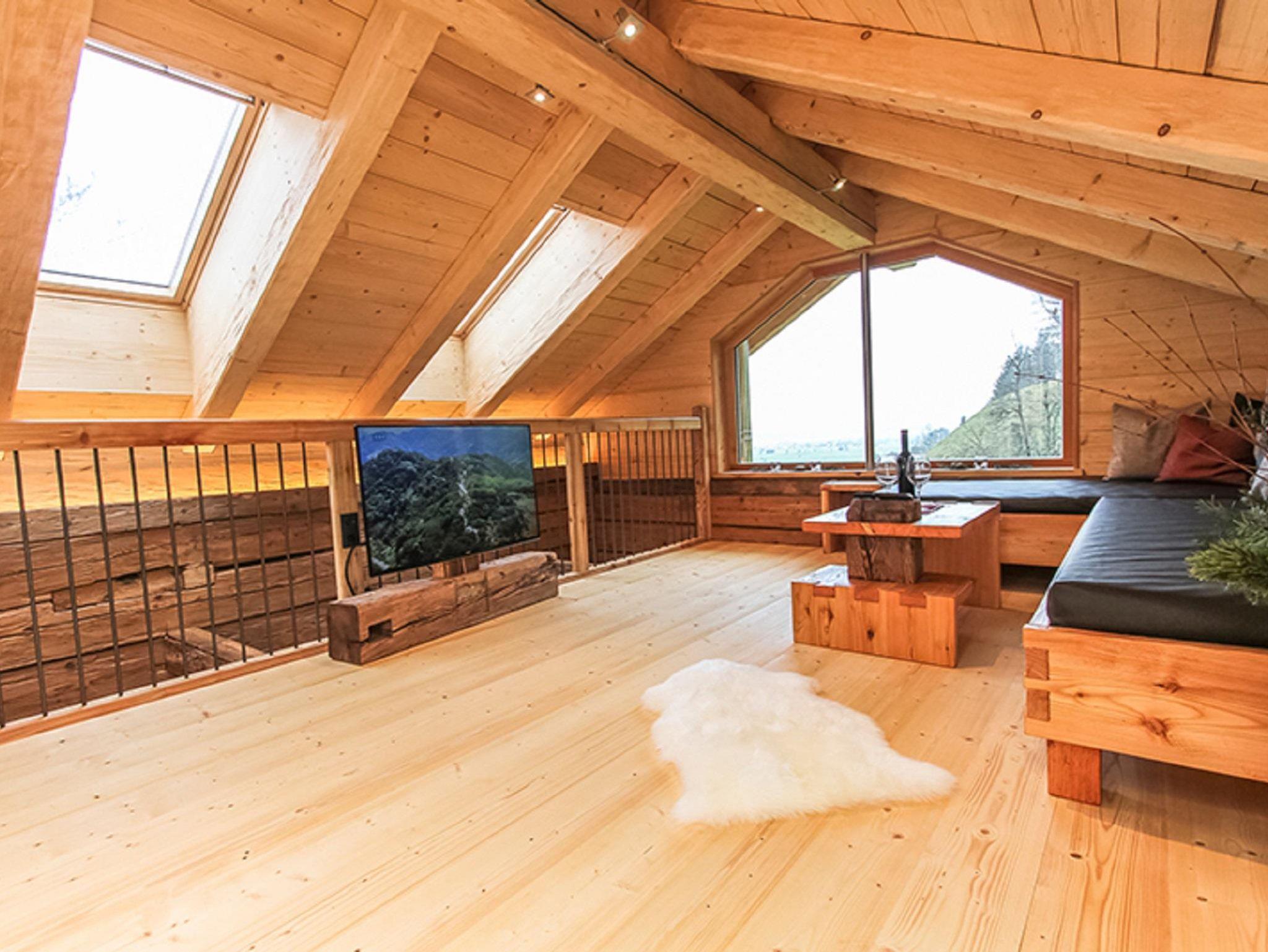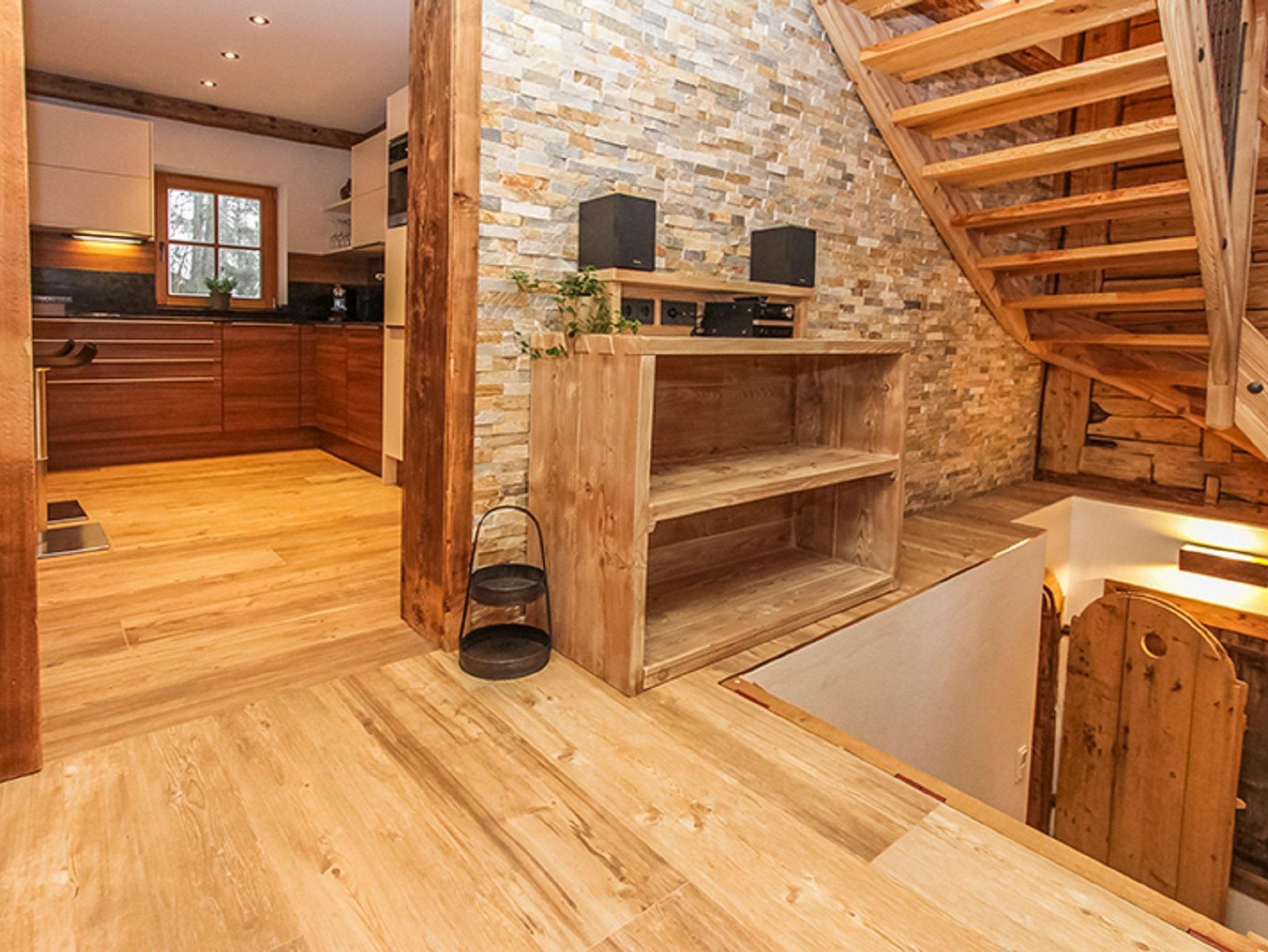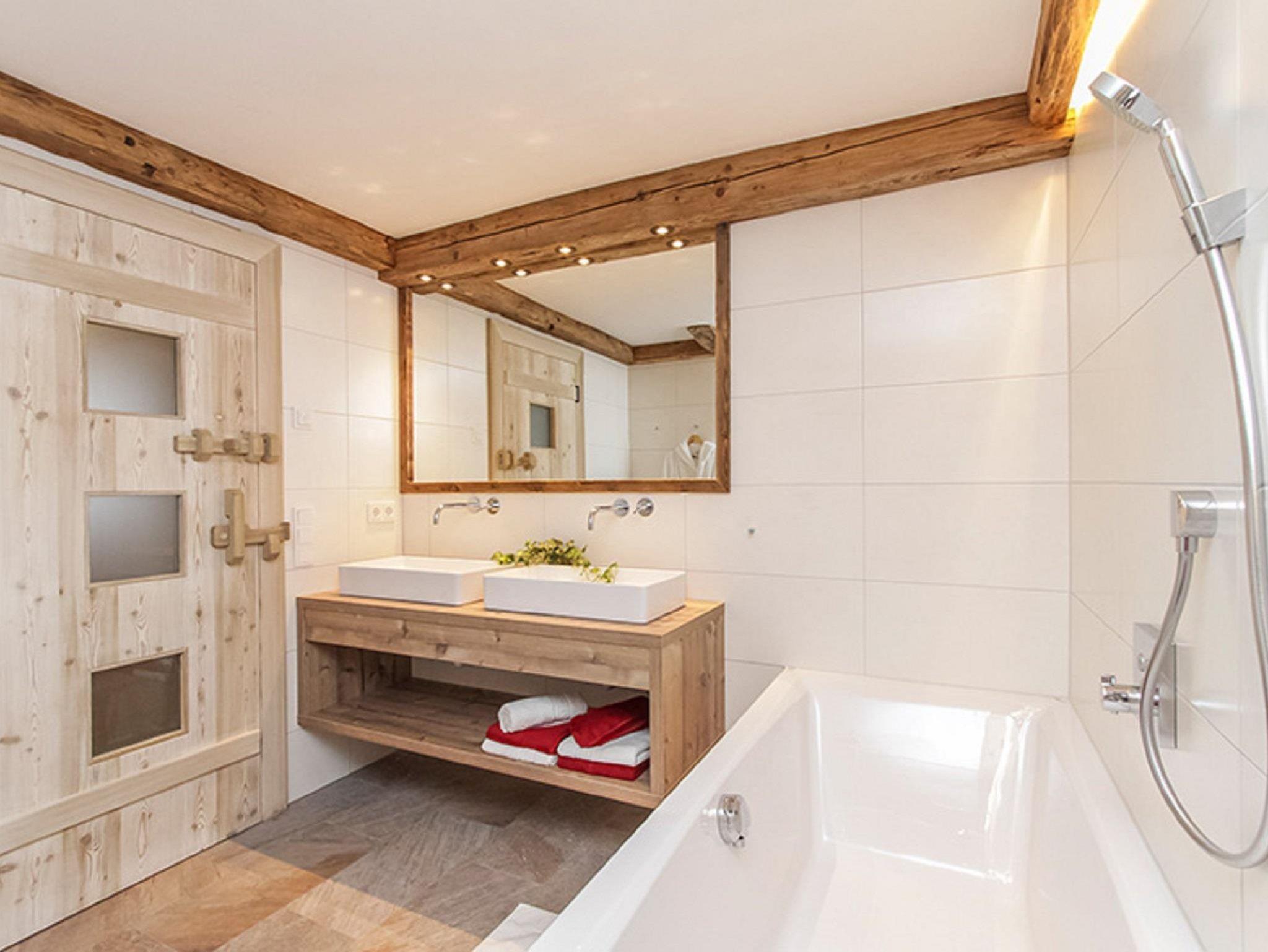 Das Chalet liegt sehr ruhig in leichter Hanglage. Es ist 110 m² groß , mit viel Altholz ausgestattet und edel eingerichtet. Im UG befindet sich ein großes, modernes Bad, mit Badewanne, Regendusche, doppeltem Waschtisch und separatem WC. Die Altholzsauna finden Sie ebenfalls im UG.