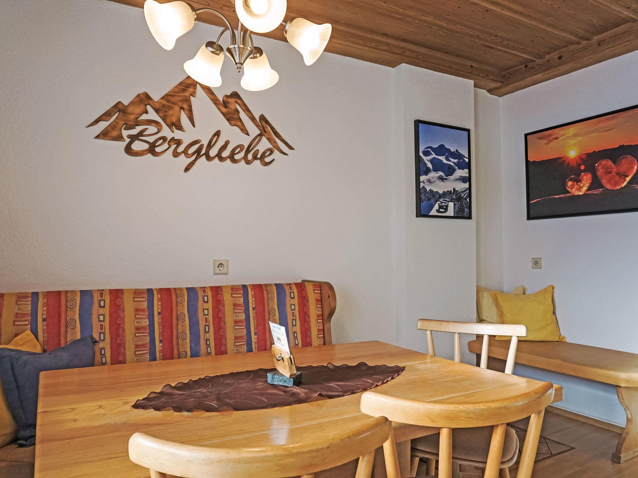 "Daheim – Bergliebe", 4-Zimmer-Wohnung 110 m2 im 1. Stock. Rustikal und gemütlich eingerichtet: 2 Doppelzimmer. Ausgang zum Balkon. 1 Doppelzimmer. Wohnküche (Backofen, Geschirrspüler, 4 Glaskeramikplatten, Toaster, Wasserkocher, Mikrowelle, elektrische Kaffeemaschine) mit Essecke und Sat-TV (Flachbildschirm), Radio. Ausgang zum Balkon. Bad/Dusche, sep. WC. Balkon. Zur Verfügung: Kinderhochstuhl, Babybett. Internet (WLAN, gratis). Bitte beachten: Nichtraucher-Unterkunft. Maximal 1 Haustier/Hund erlaubt.
