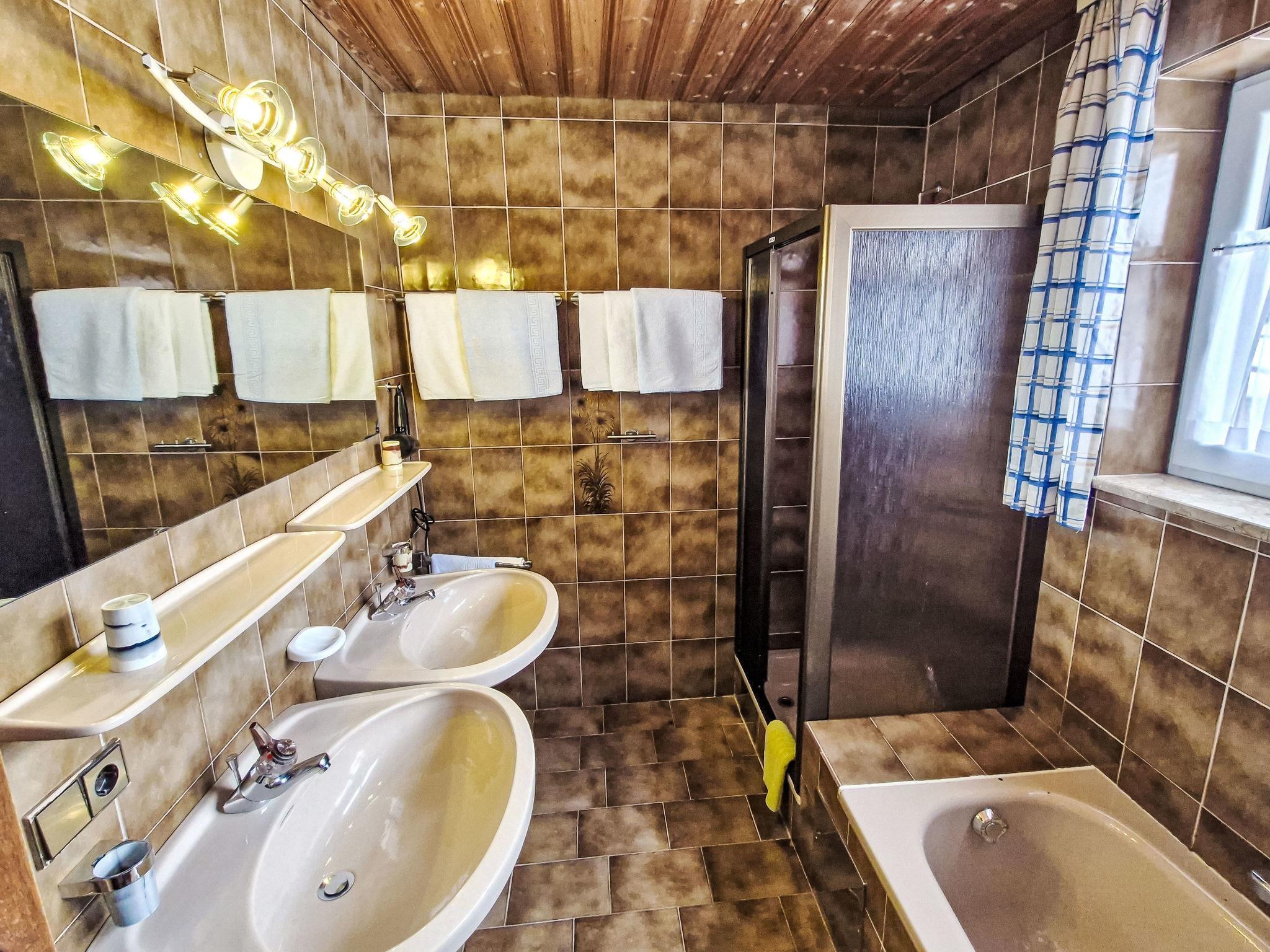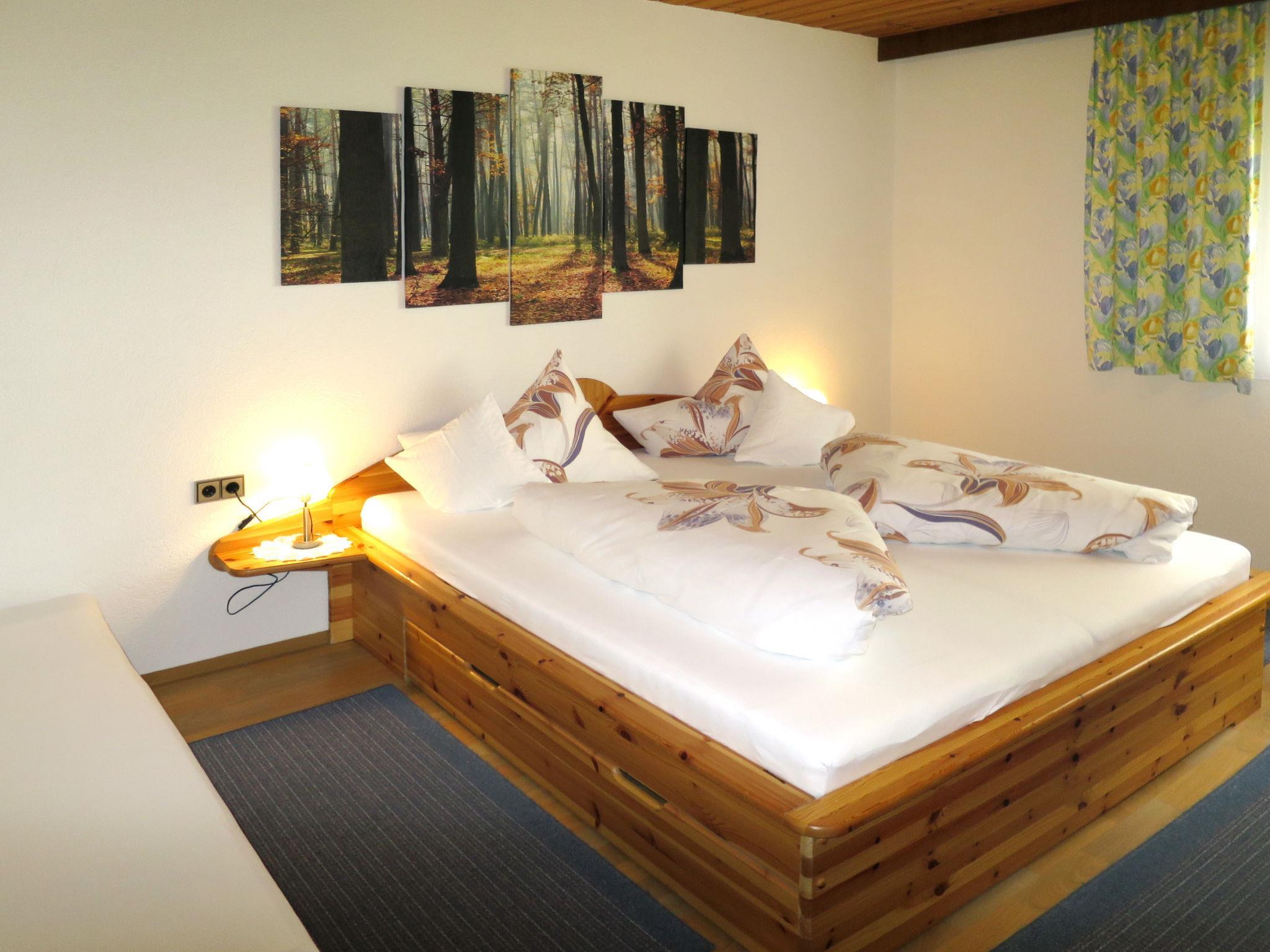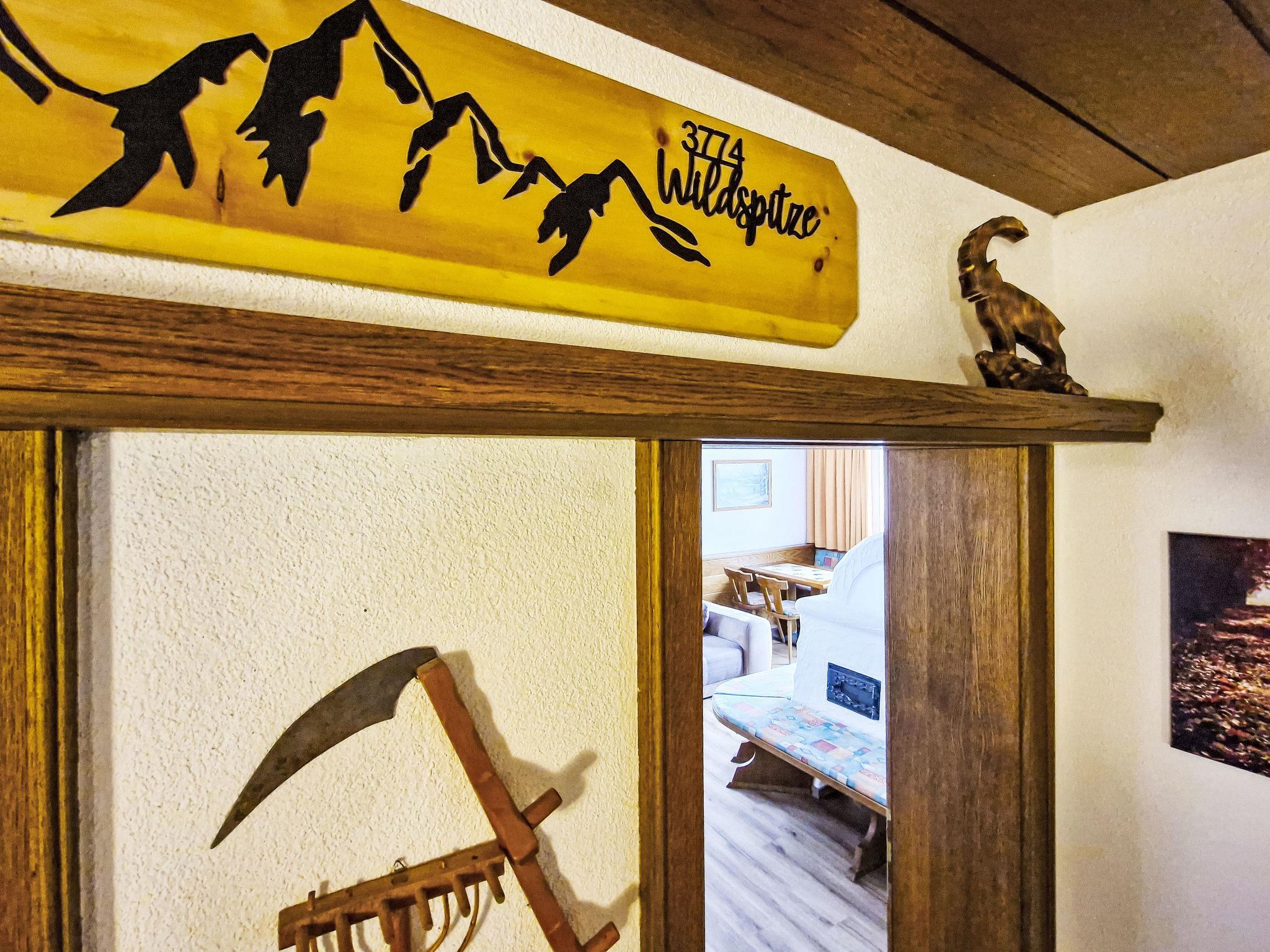 "Daheim – Wildspitz", 5-Zimmer-Wohnung 130 m2, im erhöhten Erdgeschoss. Rustikal und gemütlich eingerichtet: Wohn-/Esszimmer mit Sat-TV (Flachbildschirm), Radio. Ausgang zur Terrasse. 1 Doppelzimmer. 2 Zimmer, jedes Zimmer mit 1 Bett und 1 Doppelbett. Küche (Backofen, Geschirrspüler, 4 Glaskeramikplatten, Toaster, Wasserkocher, Mikrowelle, elektrische Kaffeemaschine) mit Essecke. Bad/Dusche, sep. WC. Terrasse. Terrassenmöbel. Zur Verfügung: Kinderhochstuhl, Babybett. Internet (WLAN, gratis). Bitte beachten: Nichtraucher-Unterkunft. Maximal 1 Haustier/Hund erlaubt.