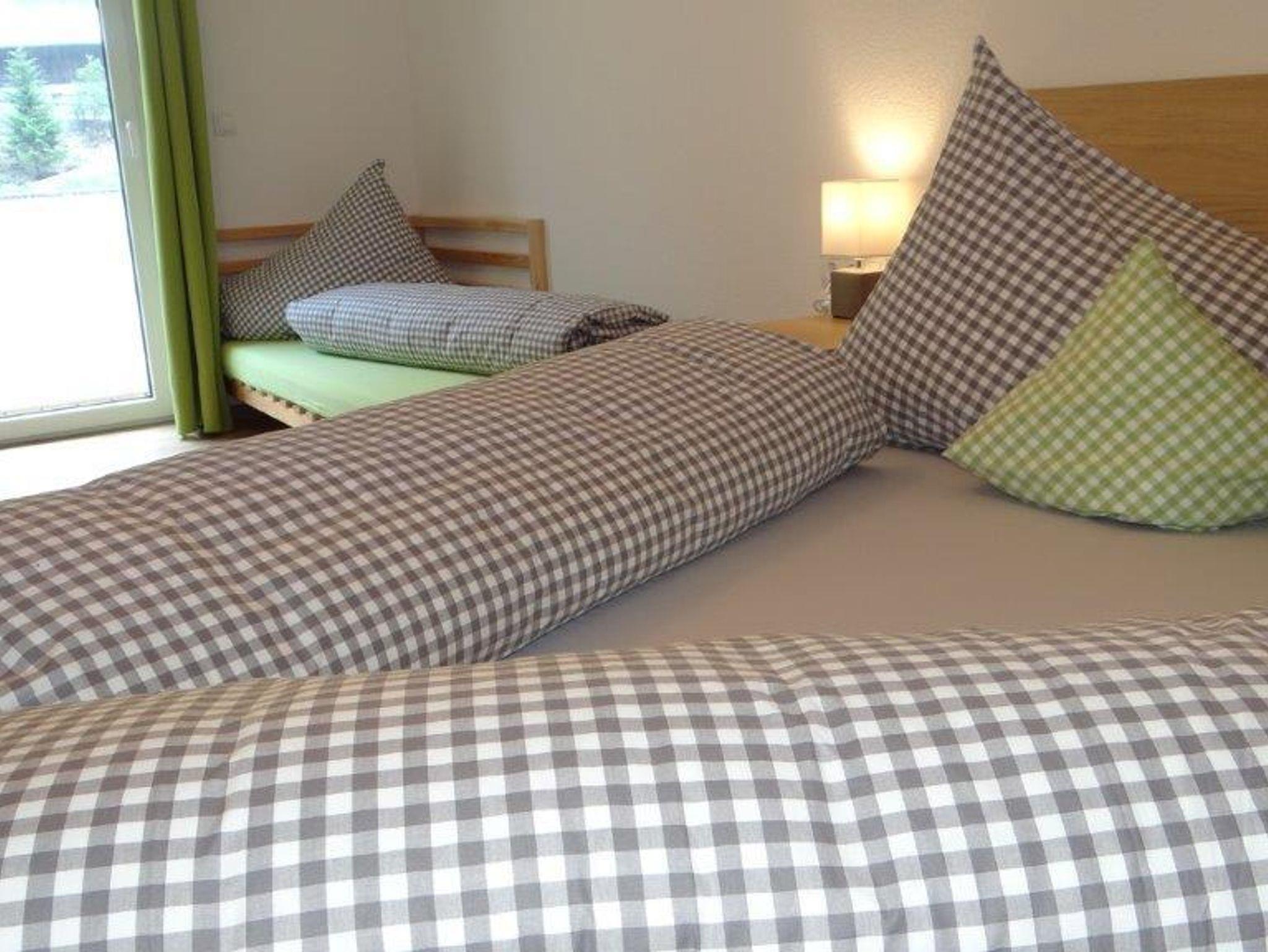 Küchenausstattung: Cerankochfeld mit Dunstabzug, Backofen, Kühlschrank, Spülmaschine, Wasserkocher, Filterkaffeemaschine, die wichtigsten Utensilien in einer Küche. Sitzecke mit großem Tisch, im Essbereich TV Ecke mit separater Couch, 2 Schlafzimmer mit jeweils 3 Betten (1 Doppelbett, 1 Einzelbett) inkl. großzügigen Stauraum, Bad mit Dusche und WC - flauschige Handtücher sowie WC Papier (2 Rollen), Sonnenterrasse mit Sitzmöglichkeiten im EG sowie ein großer Balkon im OG, 2 Parkplätze, WLAN, täglicher Brötchenservice, Skier: Abstellmöglichkeit im Keller - separater Eingang hinter dem Haus, Skiausrüstung: Aufbewahrung und Unterbringung im Skiraum