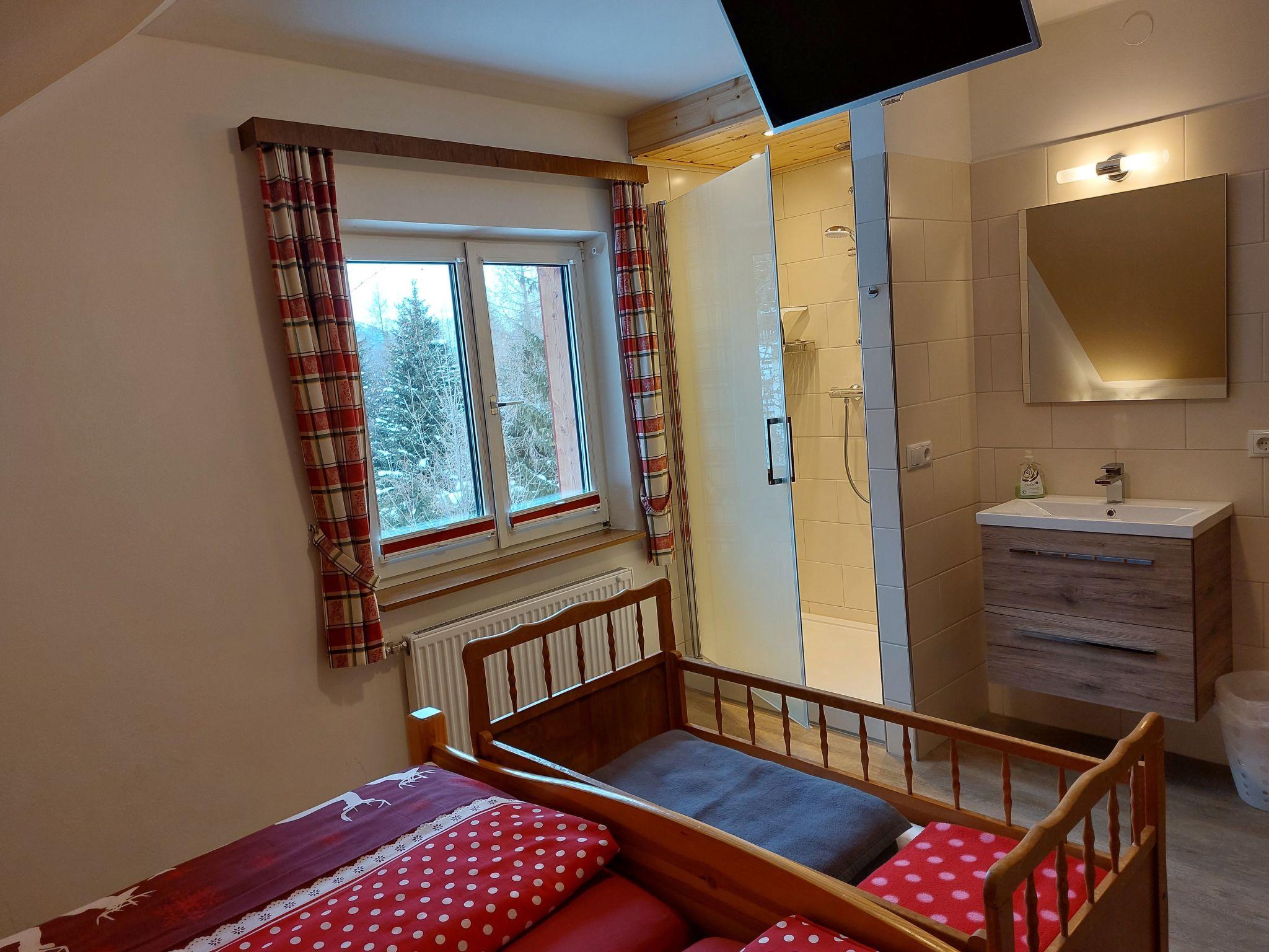 Die Ferienwohnung im Dachgeschoss ist mit allem ausgestattet, was Sie für einen erholsamen Aufenthalt benötigen: ein Wohnzimmer mit SAT-TV und Balkon, eine voll ausgestattete Küche mit Mikrowelle, Geschirrspüler, Wasserkocher und einer Senseo Kaffeemaschine. Zudem stehen Ihnen ein Doppelzimmer mit Etagenbett, zwei weitere Doppelzimmer mit SAT-TV, zwei Badezimmer (DU/WC) sowie ein Vorraum zur Verfügung. Bodenheizung sowie eine Schi- und Schischuhtrockenmöglichkeit im Haus sorgen für zusätzlichen Komfort.