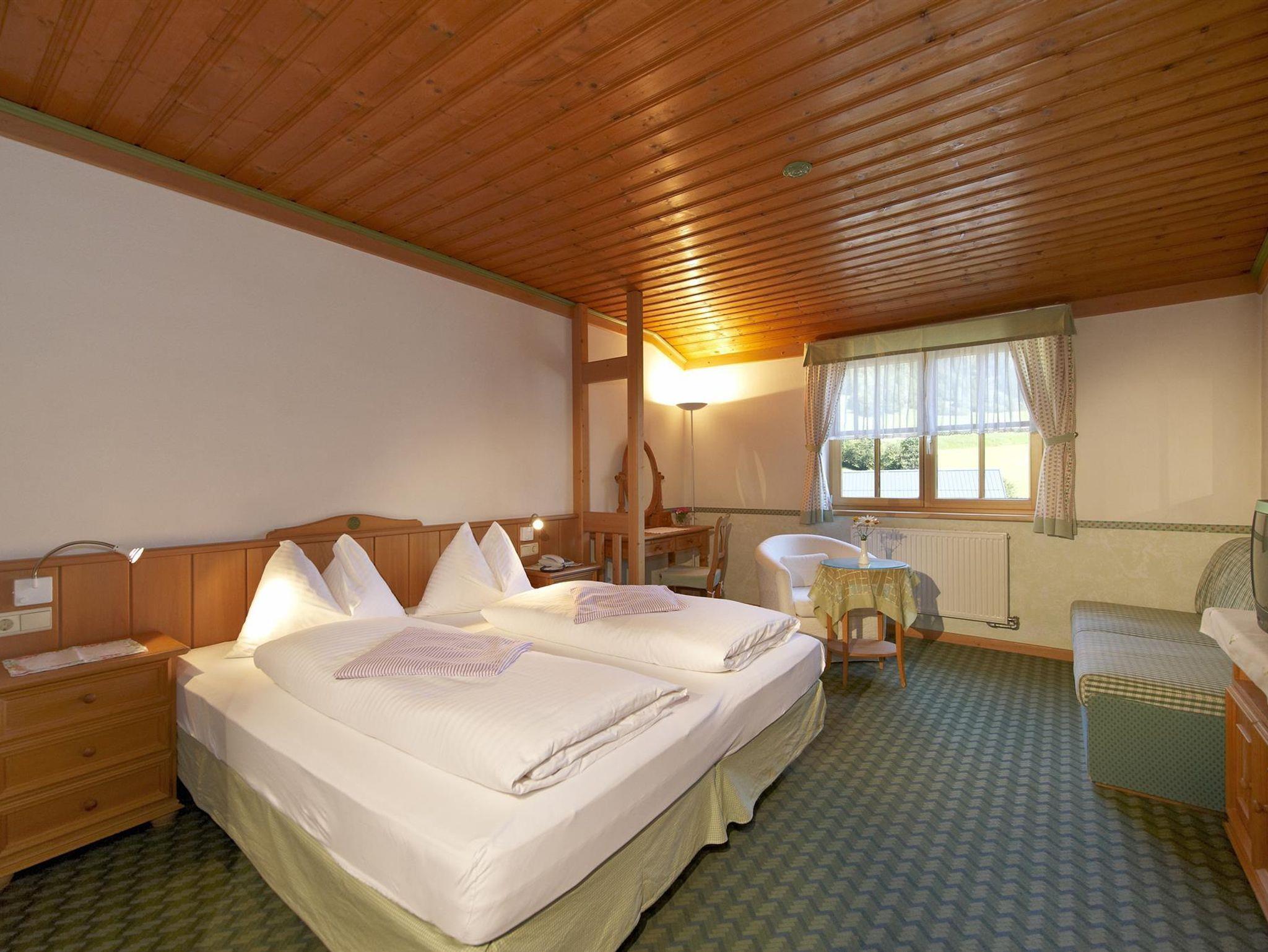 Kinder und Elternschlafzimmer getrennt, verbunden durch einen Vorraum, Kinderzimmer mit Etagenbett, Elternschlafzimmer ist ein standart Doppelzimmer mit Du oder Bad und WC, Sat-TV, Radio, Schließfach, Telefon und Balkon. Komplette Babyausstattung.