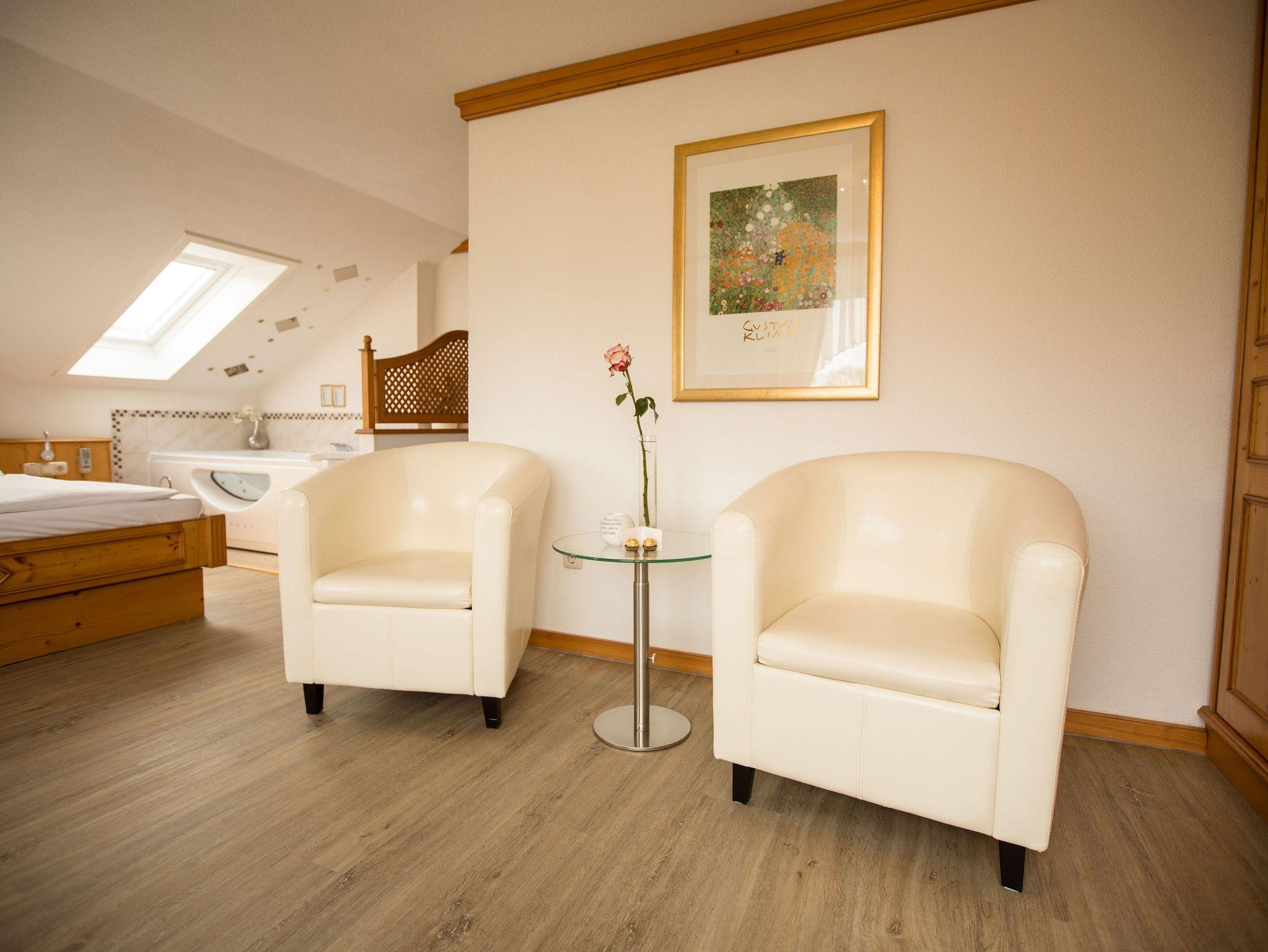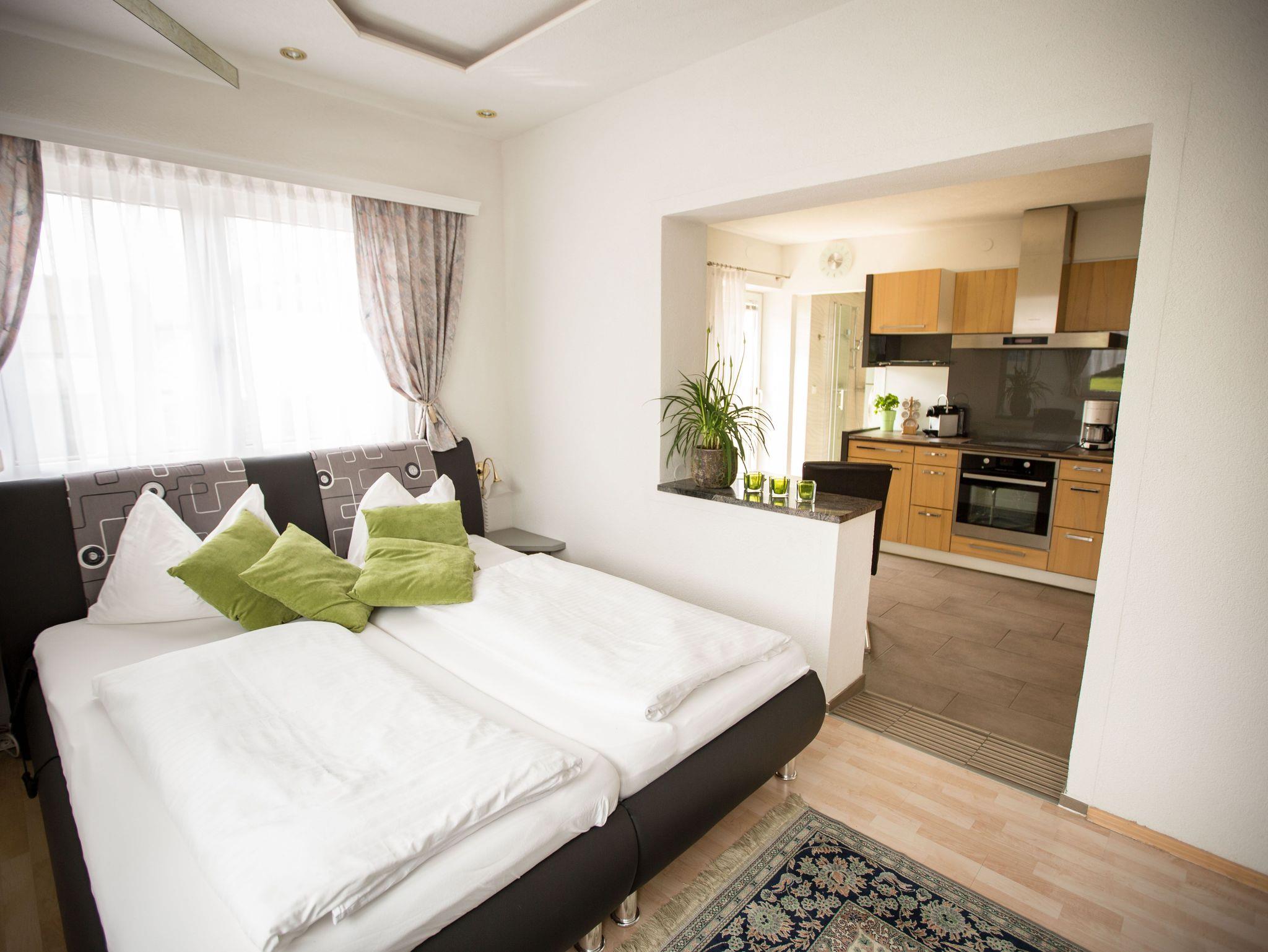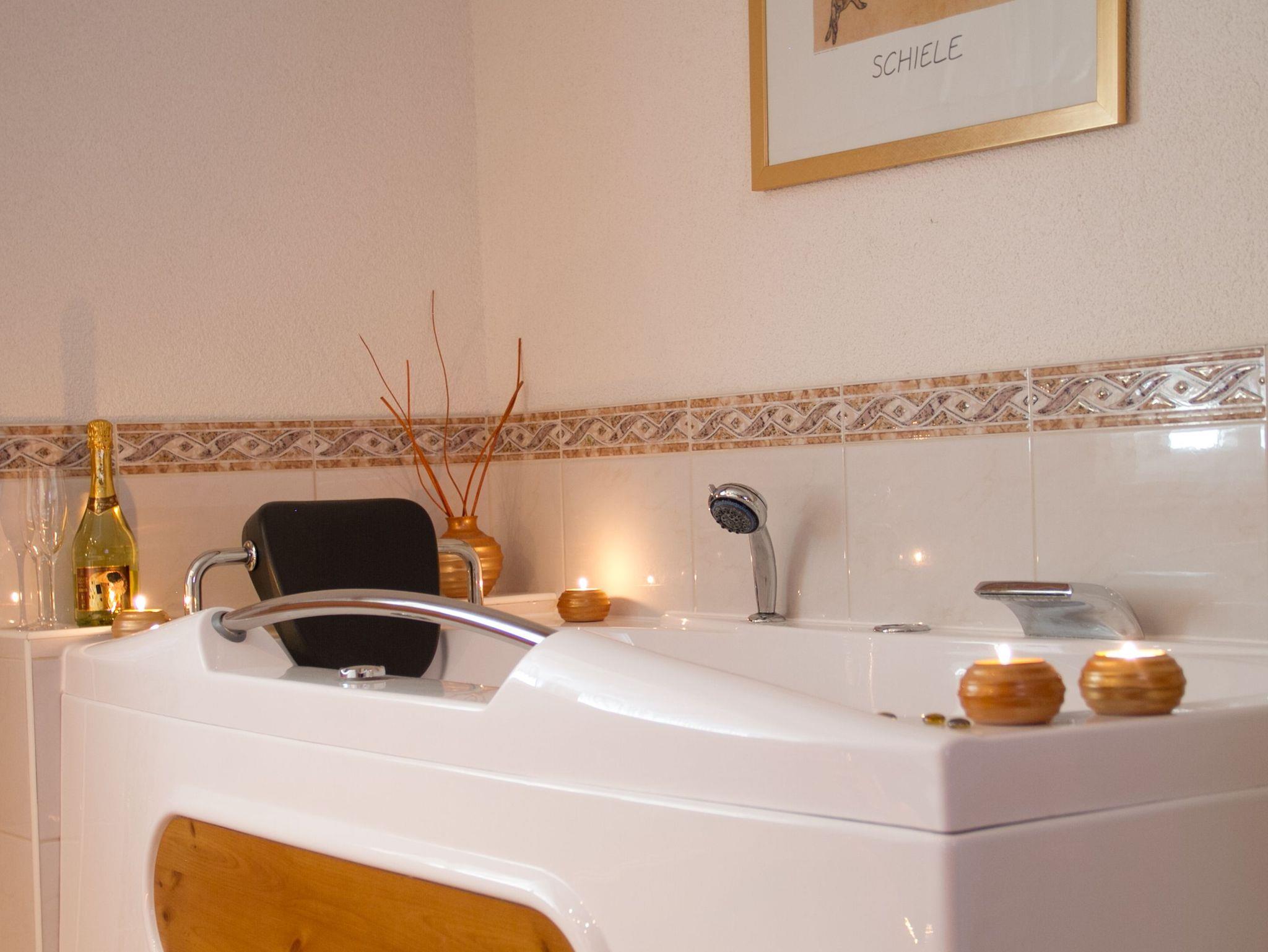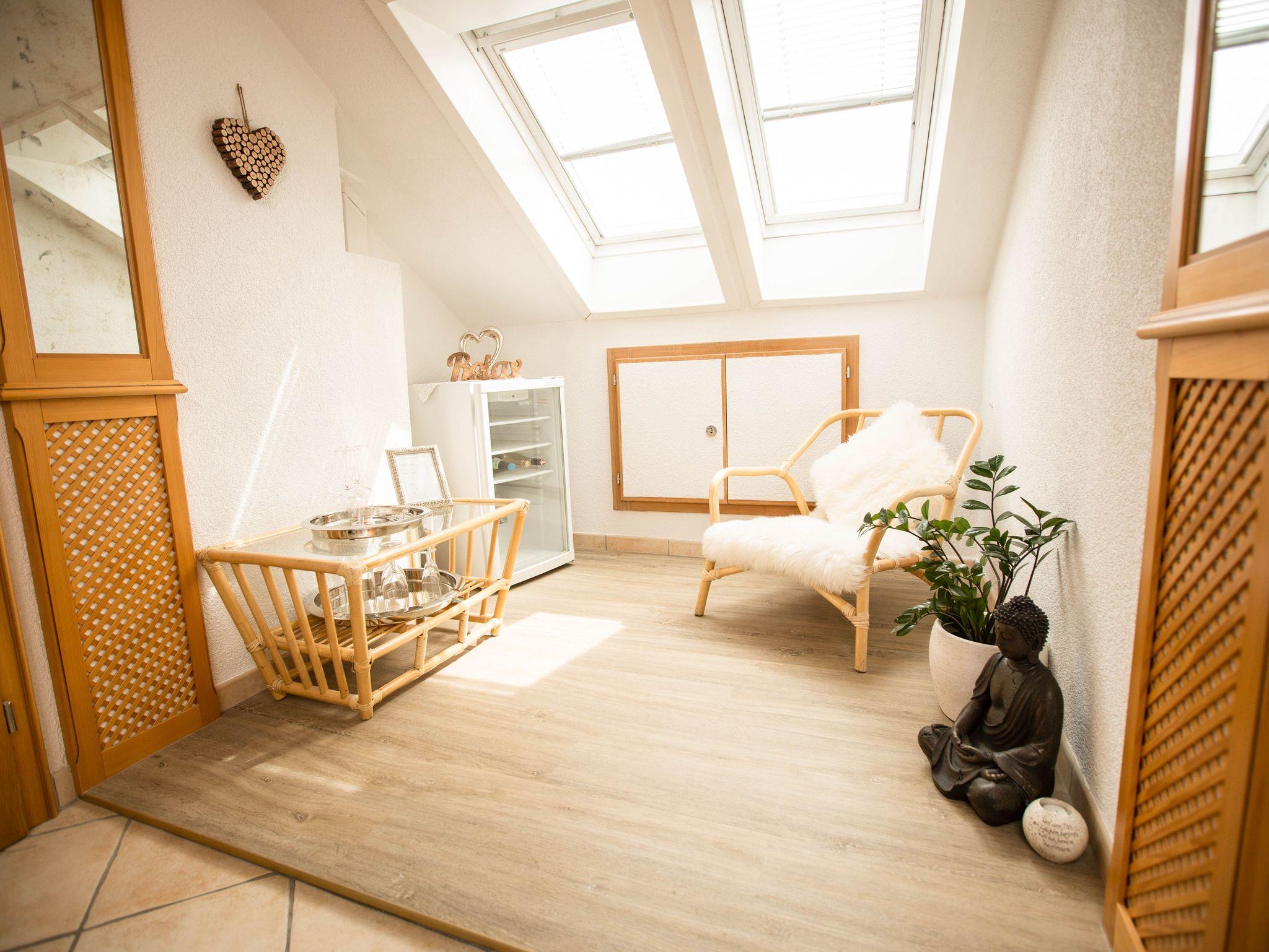 Eine romantische Atmosphäre erwartet Sie in dieser Ferienwohnung auf 22 m² mit einem Doppelbett, das mit Spiegel- und Lichtdecke ausgestattet ist. Die gemütliche Sitzecke sowie der nett gestaltete Küchenbereich versprüht einen heimeligen Charakter. Weiters W-Lan Anschluss, Flat-Screen-TV, Klimaanlage, Safe und Stereoanlage. Der Küchenbereich ist mit Kühlschrank und Gefrierfach, Backofen, Ceranfeld, Kaffeemaschine, Wasserkocher und Toaster ausgestattet. Badezimmer mit Du, Waschbecken, WC und Fön. Ein Blick aus dem Fenster zeigt die Natur - den Garten in Richtung Osten. Buchbar auch mit Frühstücksbuffet.