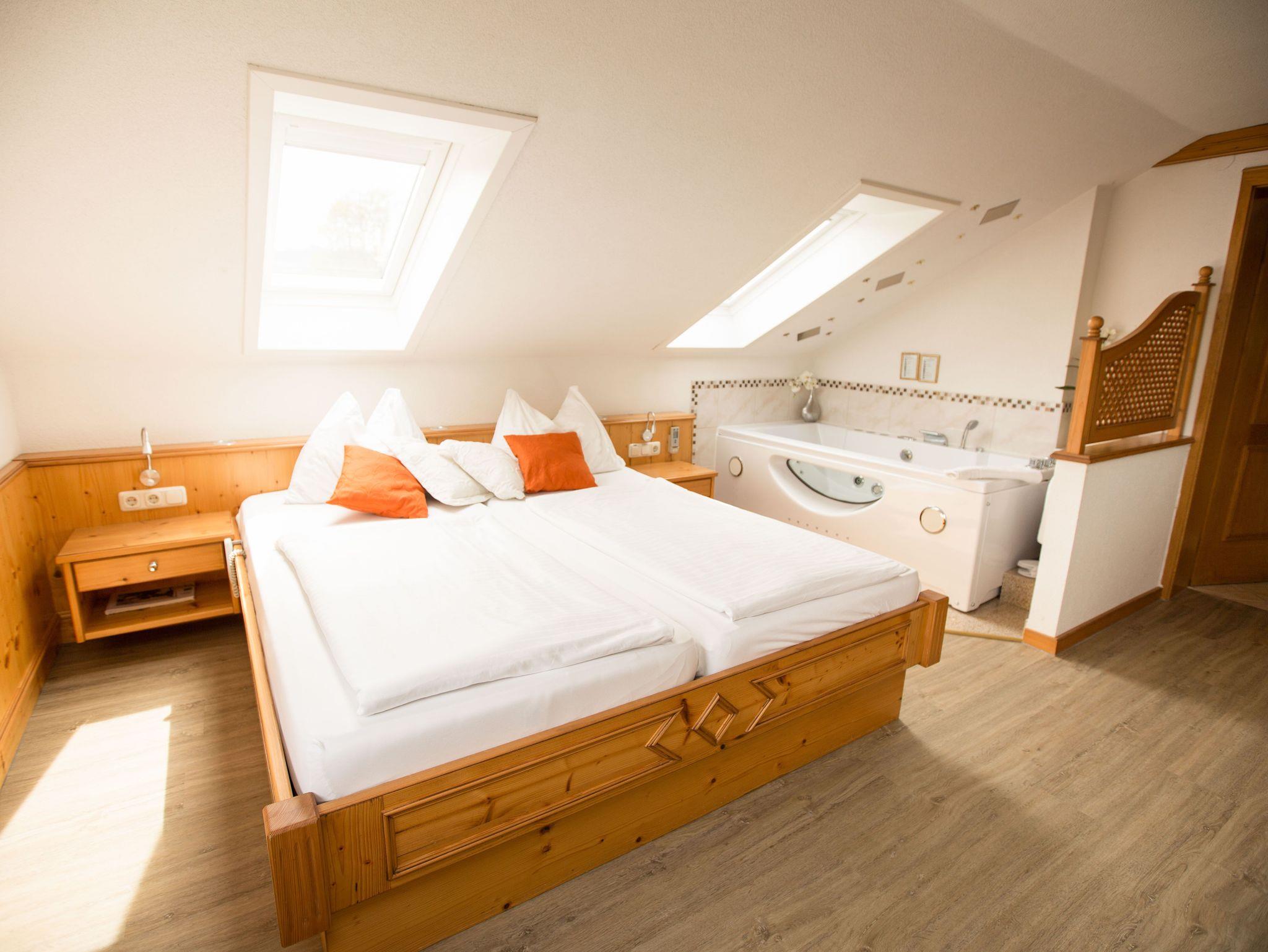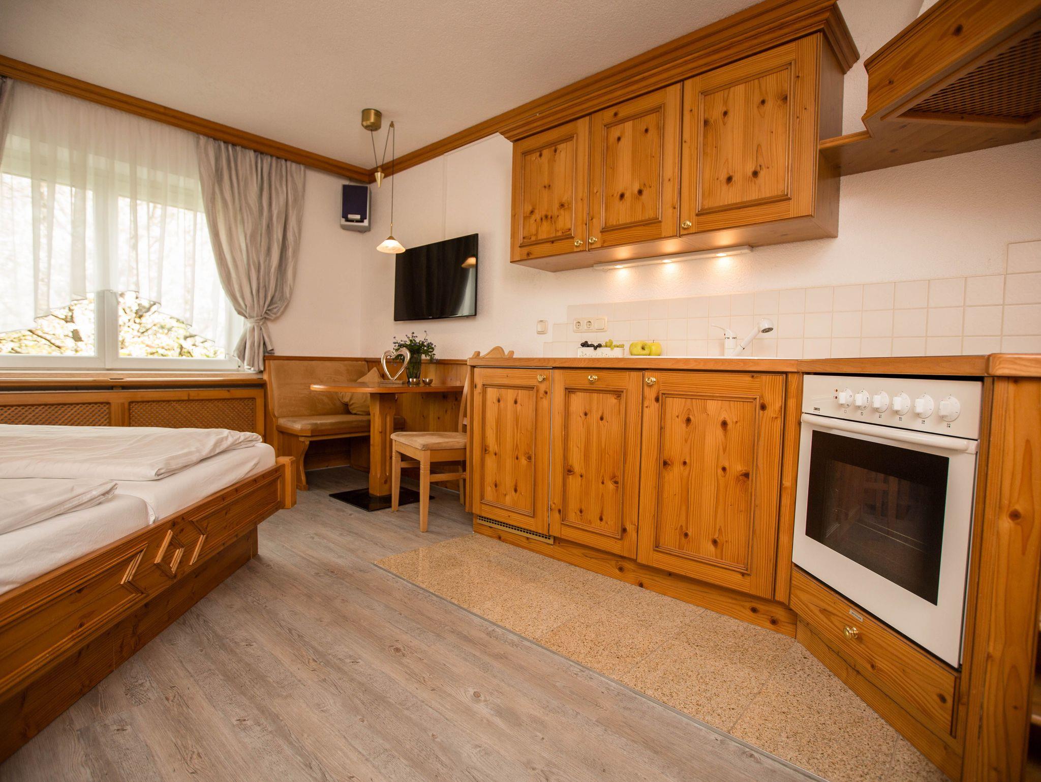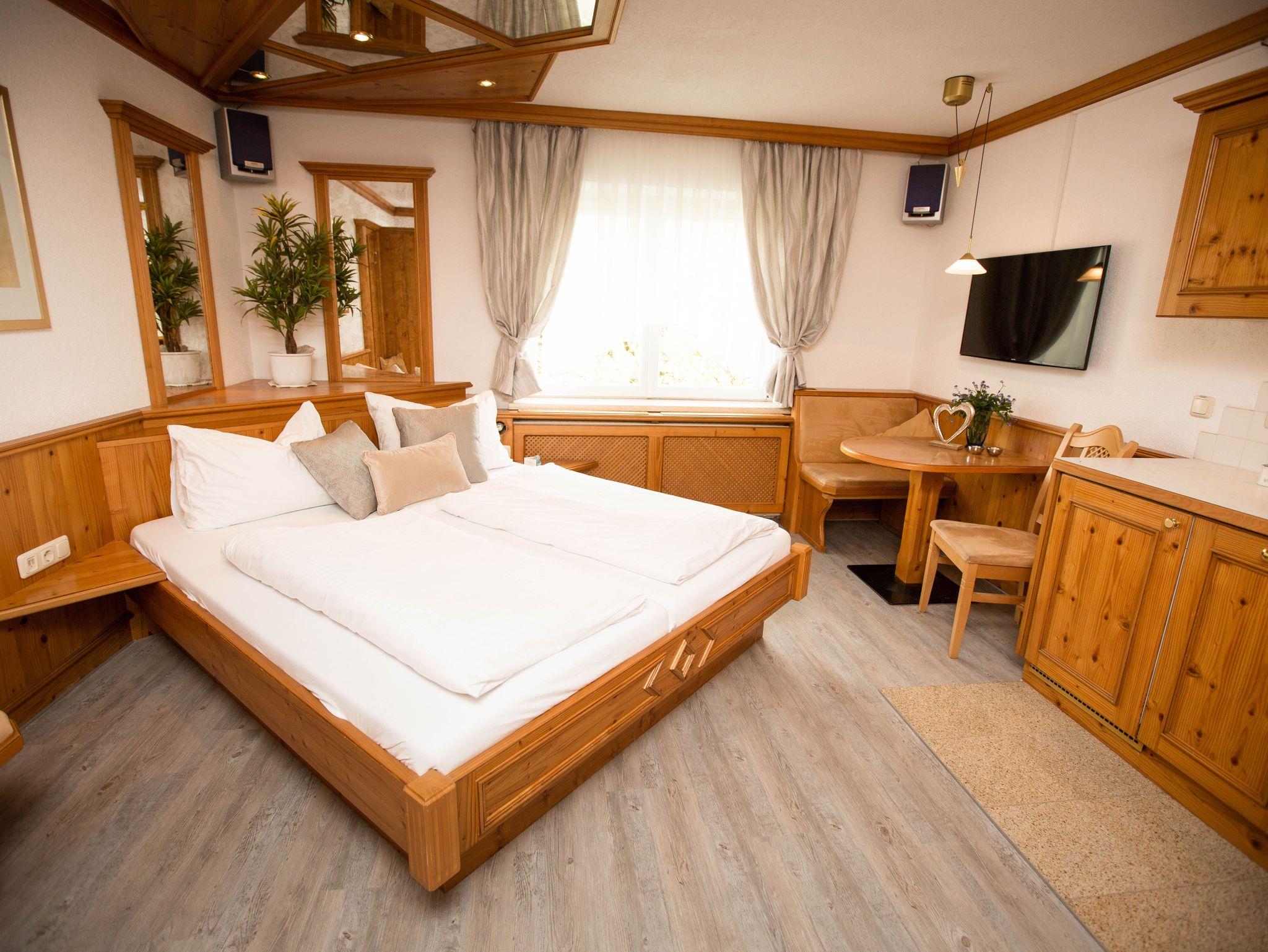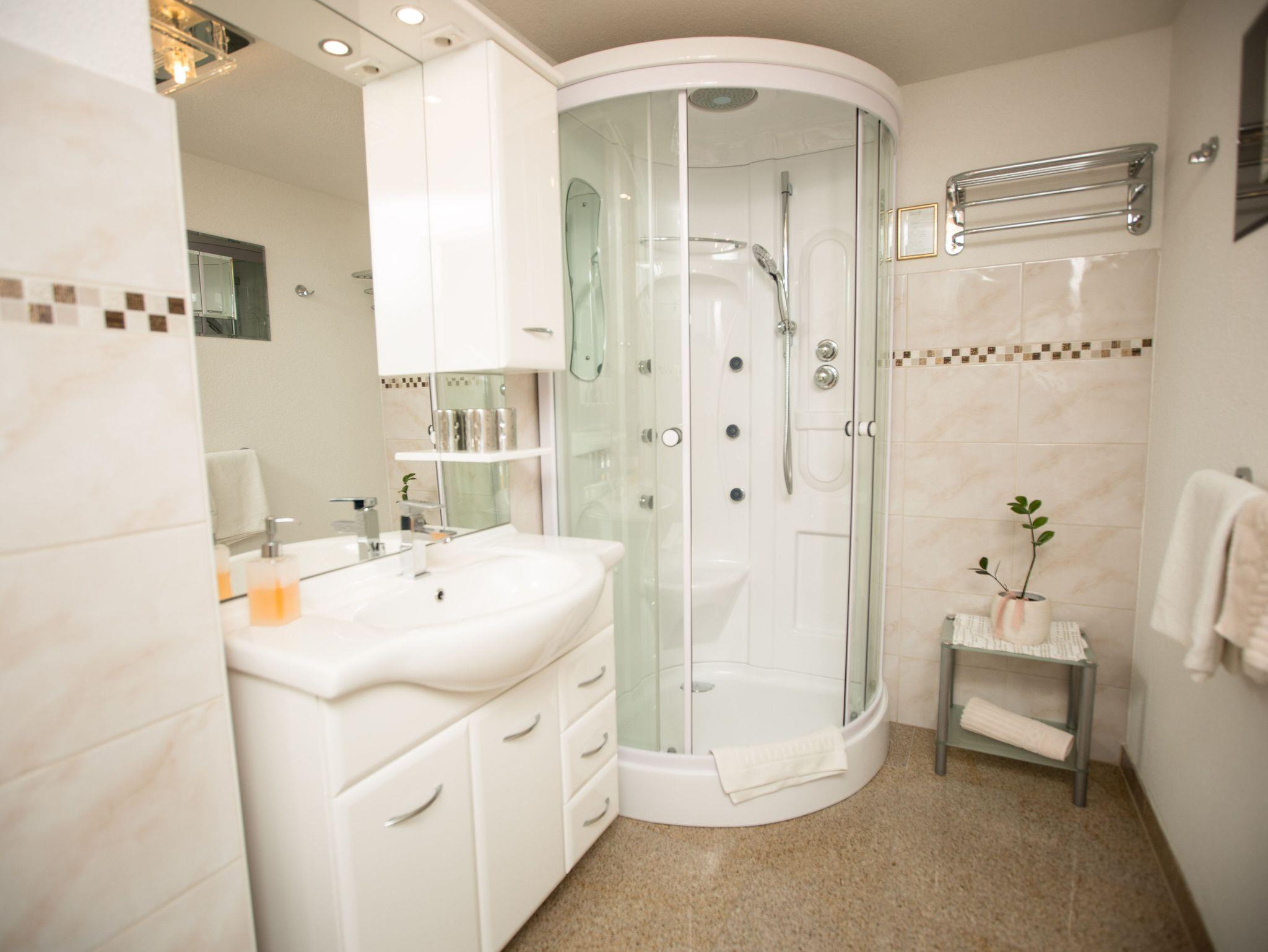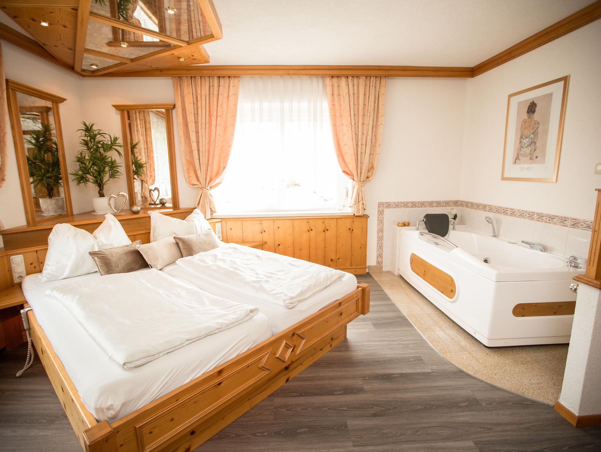 Eine romantische Atmosphäre erwartet Sie in dieser Ferienwohnung auf 22 m² mit einem Doppelbett, das mit Spiegel- und Lichtdecke ausgestattet ist. Die gemütliche Sitzecke sowie der nett gestaltete Küchenbereich versprüht einen heimeligen Charakter. Weiters W-Lan Anschluss, Flat-Screen-TV, Klimaanlage, Safe und Stereoanlage. Der Küchenbereich ist mit Kühlschrank und Gefrierfach, Backofen, Ceranfeld, Kaffeemaschine, Wasserkocher und Toaster ausgestattet. Badezimmer mit Du, Waschbecken, WC und Fön. Ein Blick aus dem Fenster zeigt die Natur - den Garten in Richtung Osten. Buchbar auch mit Frühstücksbuffet.