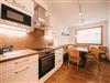 Appartement im Appartementhaus mit einem Doppelzimmer und einem Schlafsofa für zwei Personen in der Wohnküche. Der Balkon zeigt Richtung Dachsteinmassiv.